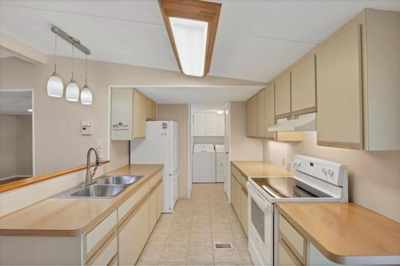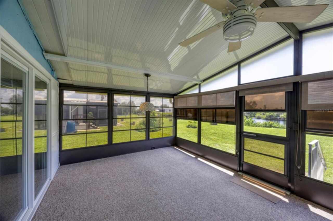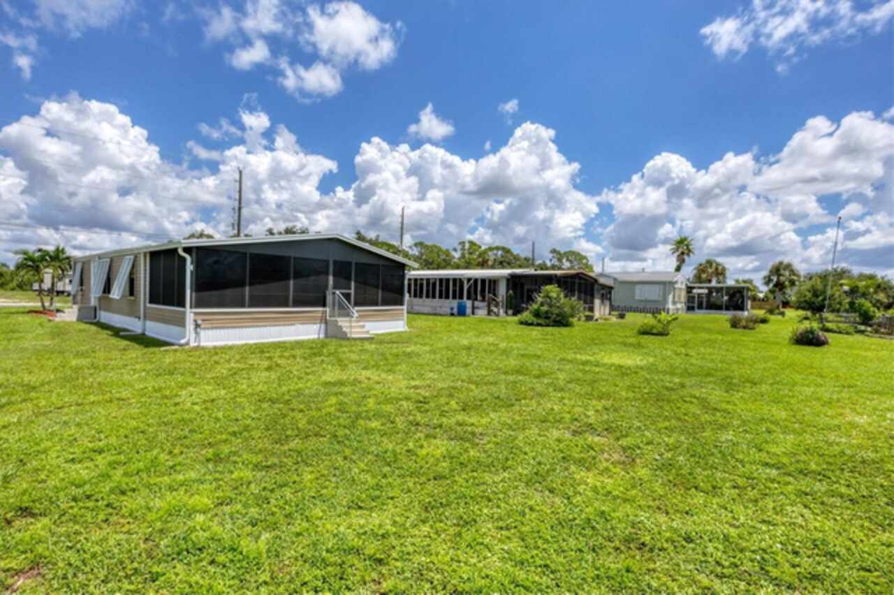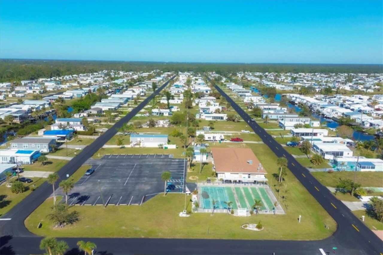 Boating before dawn. Sunsets before sleeping. Jump right into your boat and head out to open water right from your own backyard. Live your story or write your book in the comfort of this 3- bedroom, 2 bath, double wide mobile home on this stunning saltwater canal leading to the Gulf. The 16x28-6, 000 lb. boat lift is just the perfect size and features a remote control for the lift, 2 water stations, a fish cleaning station and electricity. You will have great Peace of Mind having a NEW roof, NEW carport, NEW vapor barrier and NEW insultation. The home has many improvements such as freshly painted interiors, the 24x12 Florida room has a new COASTAL look with freshly painted beadboard walls, vinyl sliding windows, screens and Sunblock roll down shades as well as soothing indoor-outdoor carpet. Additional notable improvements are the BEAUTIFUL Pergo Outlast wood flooring in the living and bedroom areas. Easy to care for tile in the kitchen, indoor laundry room and bathrooms. New remote controlled ceiling fans in the Living and Primary rooms. The 10x12 outdoor shed has lighting and electricity and gives you plenty of room to store extra items. Just about every inch of this fabulous home has been touched up. Built in 1985, this 1040 SQ.FT., double wide home also comes with assumable flood insurance. Holiday Mobile Estates is now Manatee Cove, a friendly, active 55 plus community in the heart of Englewood surrounded by shopping centers, local restaurants, unique boutiques and only 5 minutes to Englewood Beach.