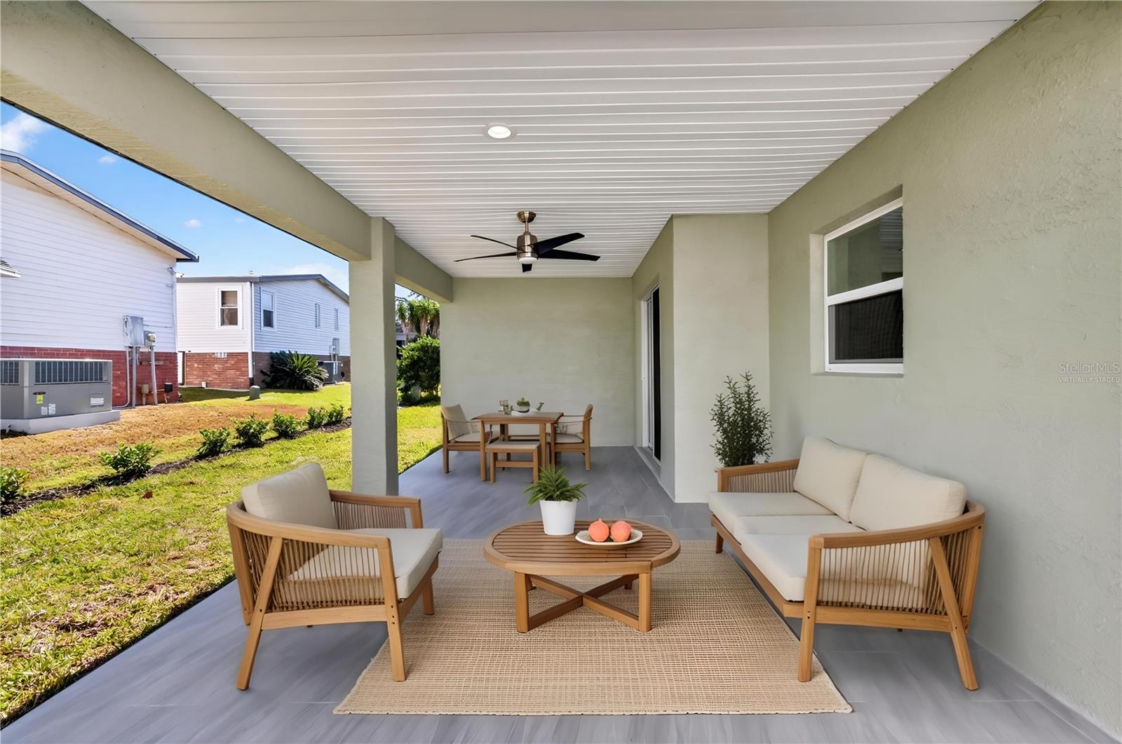 FRESH, MODERN, and MOVE-IN READY - THIS STUNNING, NEW CONSTRUCTION HOME (2025) IS WAITING FOR IT’S FIRST OWNER! Thoughtfully designed with CONTEMPORARY finishes, EXCEPTIONAL craftsmanship, and TIMELESS details this GORGEOUS 3/2 Monarch II, located in the highly desirable Village of Silver Lake, offers comfort, style, and functionality throughout! JUST MINUTES from Spanish Springs Town Square with shopping, dining, and live nightly entertainment! The IMPRESSIVE exterior showcases STRIKING STONE ACCENTS and a QUAINT FRONT PORCH - the perfect spot to RELAX and ENJOY the BEAUTIFUL Florida weather! A side-lit entry door welcomes you into the foyer featuring a convenient ENTRY CLOSET. The SPECTACULAR OPEN CONCEPT LAYOUT of the living, dining, and kitchen areas is highlighted by a unified HIGH TRAY ceiling, creating an ELEVATED and SPACIOUS feel. MODERN, GREIGE, PLANK-STYLE flooring and CONTEMPORARY lighting fixtures and ceiling fans flow seamlessly from room to room. The gourmet kitchen offers a perfect blend of beauty and efficiency boasting ELEGANT, XTERRA BLUE, SHAKER cabinetry; SLEEK, GRANITE countertops; STAINLESS appliances; PANTRY closet; and an EXPANSIVE, COUNTER-HEIGHT, CENTER ISLAND with additional cabinetry, prep space, and EAT-IN seating area. The adjacent dining room offers EASY ACCESS to the rear lanai through sliding glass doors. This FANTASTIC extended living space offers the Ideal area for RELAXING with your morning coffee or ENJOYING fun-filled OUTDOOR ENTERTAINING with friends and family! Back inside, the LUXURIOUS primary bedroom features a TRAY ceiling, two windows for NATURAL LIGHT, and a WALK-IN closet. It’s en-suite bathroom showcases XTERRA BLUE, SHAKER cabinetry, GRANITE countertops, DOUBLE sinks, a TILED WALK-IN shower, and an ADDITIONAL hallway STORAGE closet just outside the suite. Bedrooms two and three are located in a PRIVATE separate corridor, each offering built-in closets and convenient access to the home’s second full bathroom. This bathroom is finished with an XTERRA BLUE, SHAKER vanity with GRANITE top, a TILED tub/shower combination, and a hallway LINEN closet. The INTERIOR LAUNDRY room provides both functionality and convenience with a UTILITY SINK and SHELVING, and offers direct access to the two-car garage boasting PLENTY of room for parking and storage! DON’T MISS YOUR OPPORTUNITY - BE THE FIRST TO CALL THIS INCREDIBLE NEW CONSTRUCTION HOME YOUR OWN! The Village of Silver Lake is IDEALLY LOCATED JUST MINUTES from Spanish Springs Town Square with shopping, dining, and live nightly entertainment! Close to Orange Blossom Country Club; Hilltop and Silver Lake Executive Golf Courses; Paradise Regional Recreation Center; and Silver Lake Village Recreation Center; ONLY MINUTES from Hwy 441/27 boasting an abundance of stores, restaurants, banks, medical, and more! PLEASE WATCH OUR WALKTHROUGH VIDEO of this FABULOUS NEW CONSTRUCTION HOME in a FANTASTIC LOCATION and call today to schedule your Private Showing or Virtual Tour!