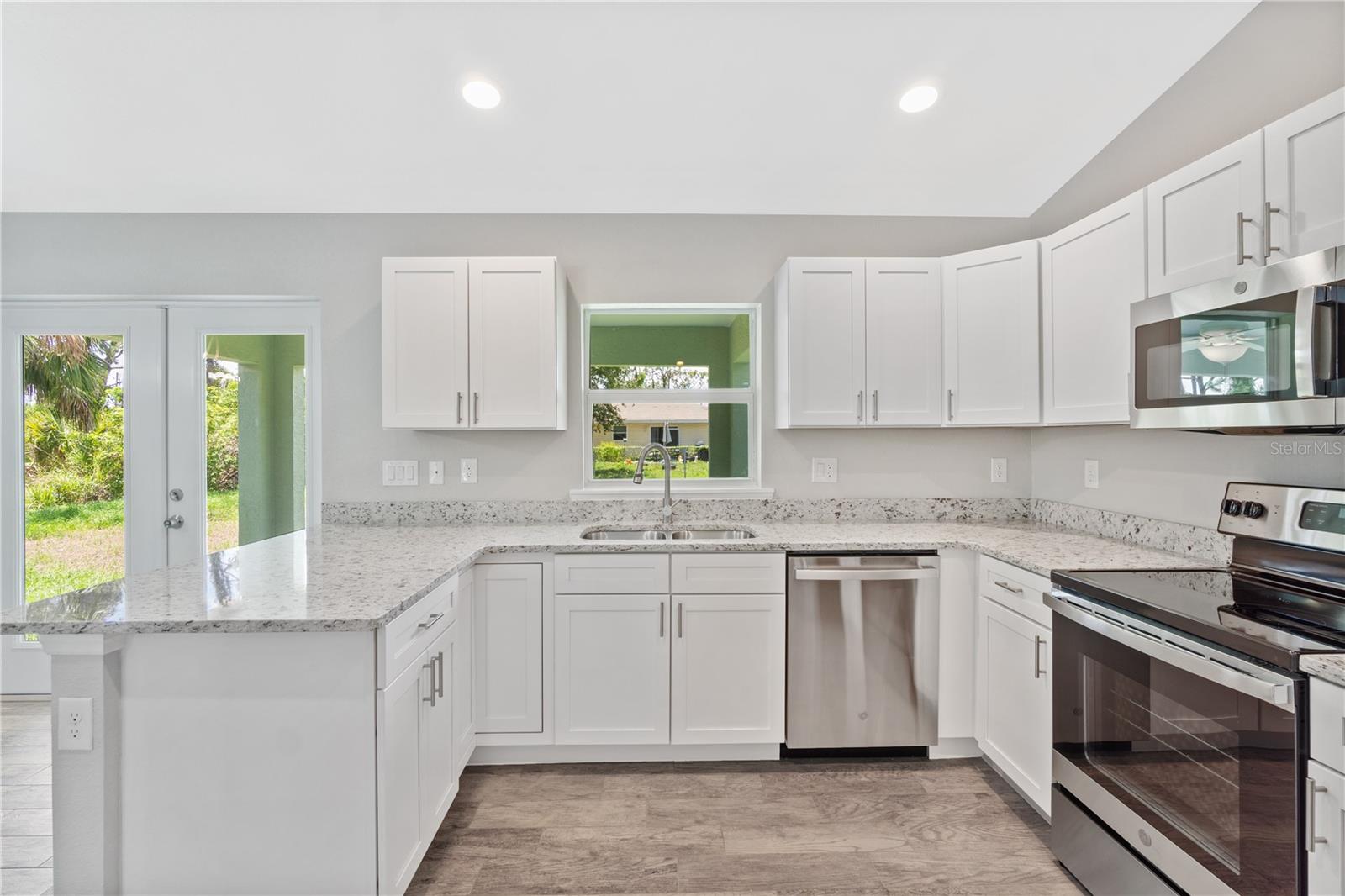 This home is COMPLETE and ready to be sold! Located less than 8 miles from Manasota beach, this 3 Bedroom 2 Bath home features over 1600 square feet of livable space, stainless steel appliances included, vaulted ceilings, recessed lighting, plank-looking porcelain tile throughout & matching granite counter-tops in the kitchen and bathrooms. It's basically move-in-ready besides a washer and dryer! Plus, the included Hurricane shutters and up-to-date building specs will help to ensure your home insurance & utility bills are kept as low as possible. Other features include a 2 car garage with ceiling-mounted central air, which helps maximize garage storage, fans in every room and an open lanai at the rear of the home. Enjoy living just minutes away from the Gulf of Mexico and surrounding amenities, while still residing outside of a flood zone. No home-owners association, and no deed restrictions. Perfect for first time home buyers, families or those seeking to transition into something efficient and affordable. Don't miss out on this opportunity to own a brand new home in our beautiful area!