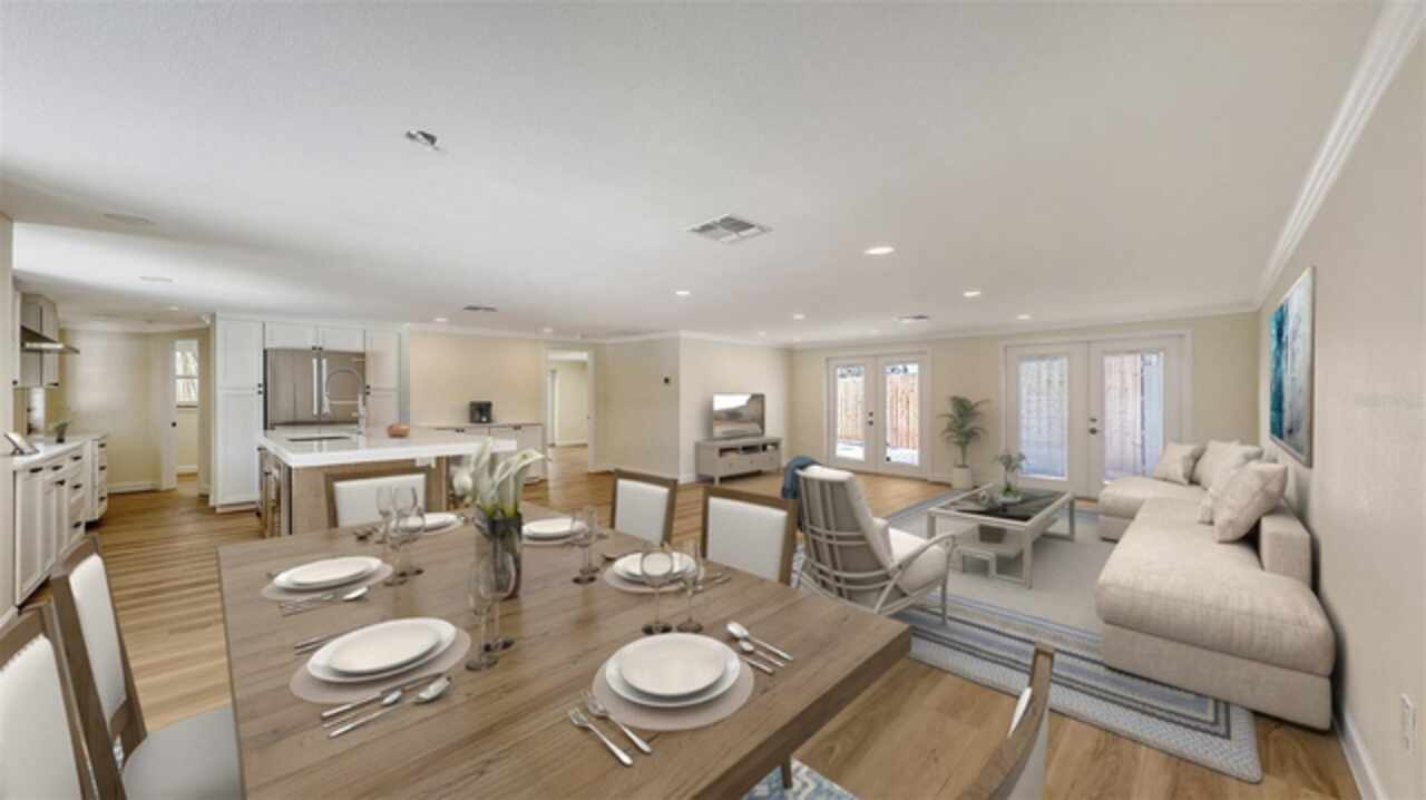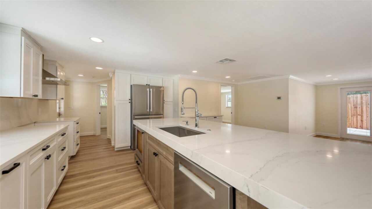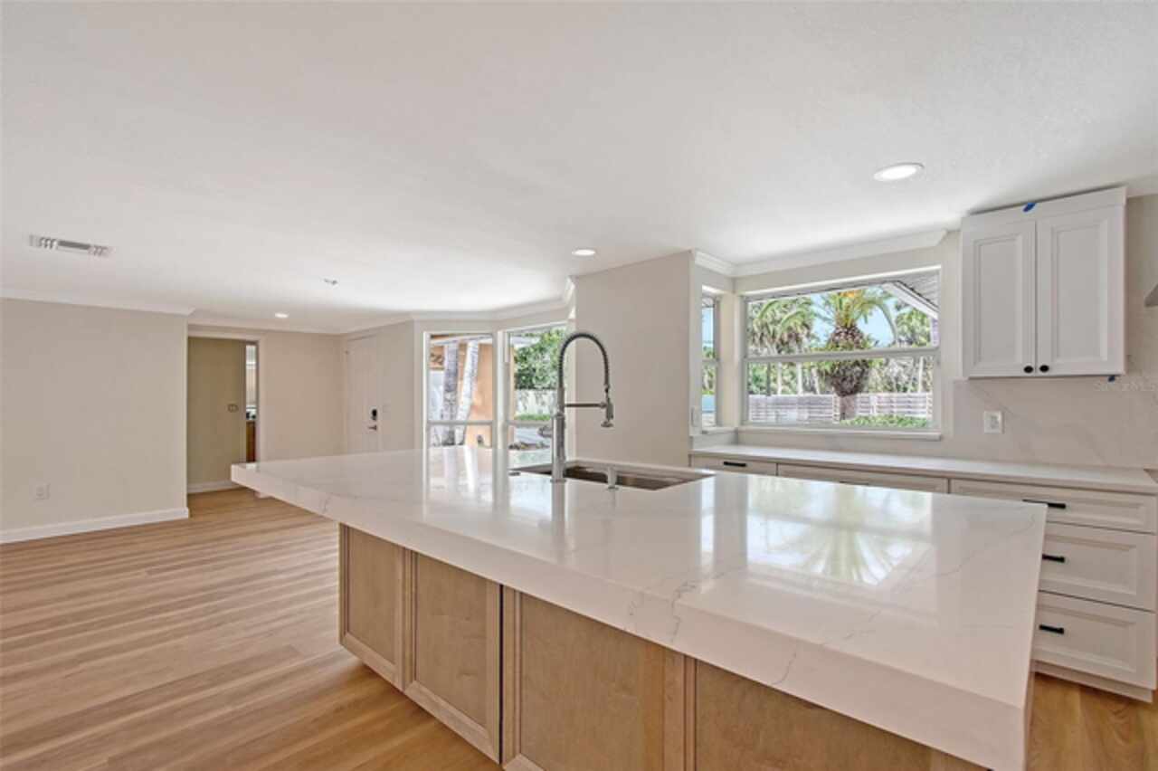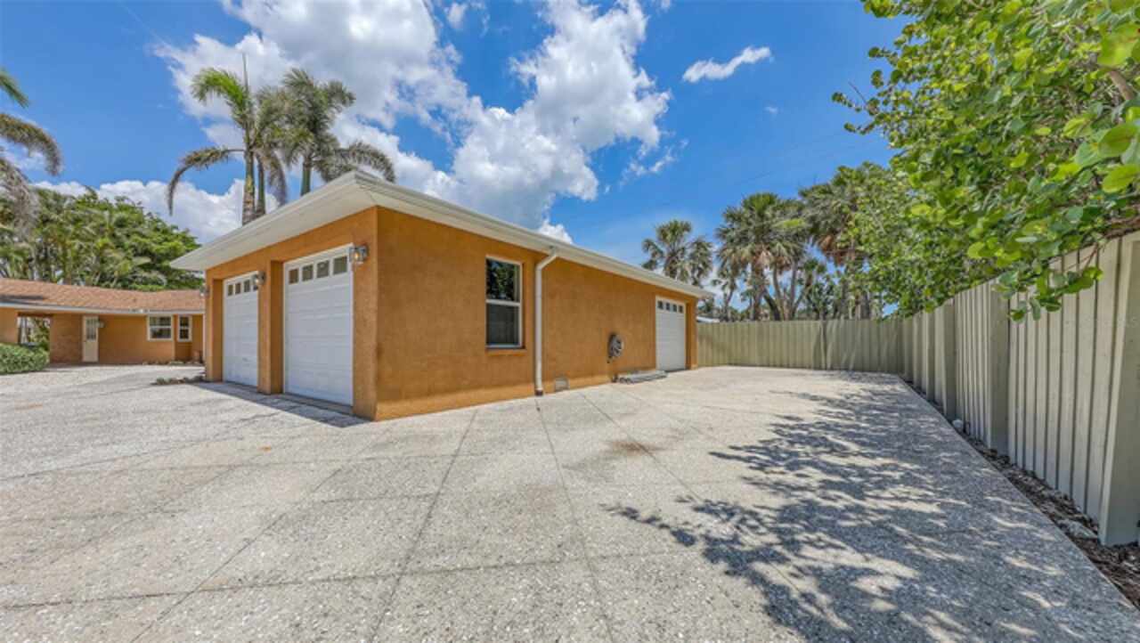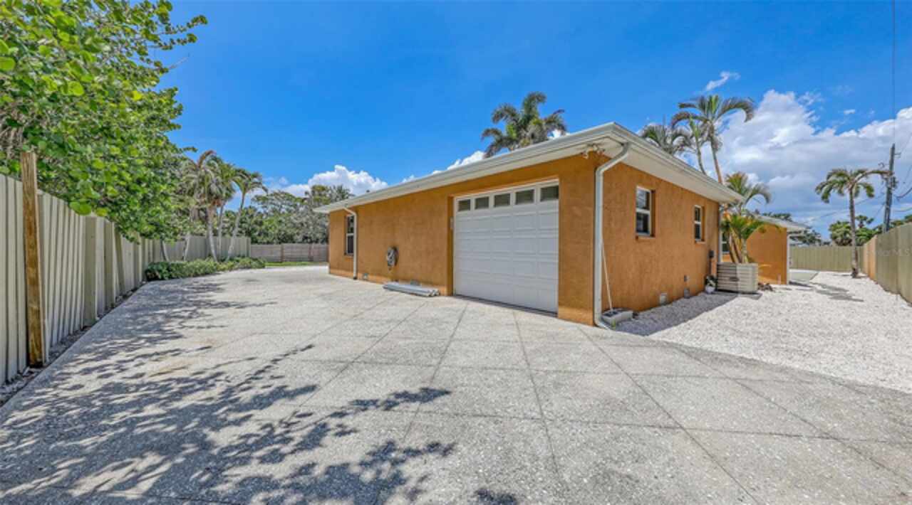 One or more photo(s) has been virtually staged. Gorgeous updated single-story home just a short walk or bike ride away from Crescent Beach / Siesta Key Beach. This stunning move-in-ready home is situated on an expansive 17, 000+ sq ft lot with NO HOA. A detached 4 car garage offers plenty of space to bring your RV, boat, and car collection. Interior upgrades include a brand-new kitchen with oversized center island and stainless steel appliances, new 9' luxury vinyl plank flooring, recessed lighting, new interior and fresh interior paint throughout. Bathrooms have been updated with new cabinetry, lighting, and backlit mirrors. Additional features include impact windows and a roof replaced in 2018. The detached garage is nearly 1, 000 sq ft with three roll-up doors, elevated ceilings, a bathroom, EV charger, 50-amp RV service, RV cleanout connection, and dedicated parking pad for RV or boat. Connected to county water with a private well for irrigation. Plenty of space for a pool, ADU, or future home expansion. Located on a quiet street live your dream of morning beach walks and be minutes to Sarasota’s shopping, dining, and cultural amenities. See Matterport Virtual Tour in 1st link. SELLER FINANCING AVAILABLE with 30% down.