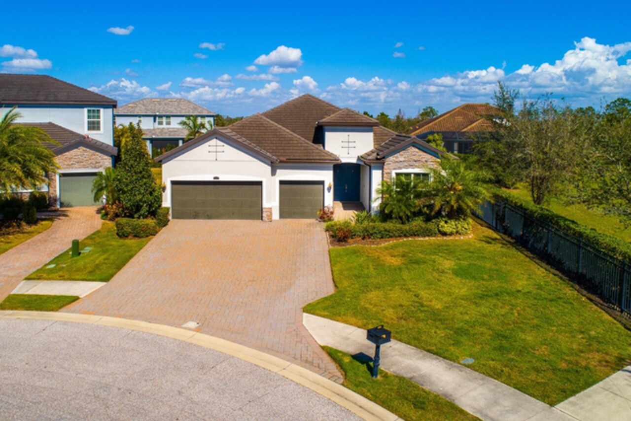 Under contract-accepting backup offers. WELCOME TO THIS SOUGHT-AFTER SUMMERVILLE MODEL! This 3-bedroom, 3-bathroom home with a den and a 3-car garage is nestled on a peaceful cul-de-sac, directly adjacent to a park! Freshly painted inside with brand new laminate wood flooring throughout, this home offers both style and functionality. As you step through the elegant double front doors, you’re greeted by a spacious foyer leading into a bright office with French doors, ensuring privacy. The expansive open-concept layout is perfect for modern living, featuring a seamless flow between the kitchen, dining, and family room. Soaring 10-foot ceilings and 8-foot doors give the home a contemporary, airy feel, while the generous living area opens directly to the fully fenced backyard through triple sliding doors. The kitchen, complete with a large granite island and crisp white cabinetry, flows effortlessly into the sun-filled dining room. The kitchen is a chef’s dream with stainless steel appliances, including a NATURAL GAS cooktop, wall oven, and microwave, along with 42-inch solid wood cabinets, neutral granite countertops, and a walk-in pantry. The three-way split bedrooms provide maximum privacy, each with its own ensuite bathroom. The luxurious primary suite boasts double walk-in closets and an en-suite bathroom featuring a soaking tub and large shower. This home also offers stunning structural features such as crown molding, 5-inch baseboards, and trayed ceilings in both the primary bedroom and living room. Located next to Bob Gardner Park, residents enjoy private access through a secure gate, offering a soccer field, disc golf course, two playgrounds, and both wet and dry dog parks. The Arbor Grande community also offers top-tier amenities, including a clubhouse, state-of-the-art fitness center, heated zero-entry pool, bocce ball court, and sand volleyball court. With an on-site community manager and plenty of social and recreational activities, there’s never a dull moment. Located in Lakewood Ranch, the country’s #1 fastest-selling multi-generational community, this neighborhood boasts excellent schools, shopping, dining, and sports facilities. Whether you enjoy golf, tennis, or pickleball, there’s something for everyone. This boutique community consists of just 183 single-family homes and 122 villas, offering a unique, charming atmosphere. With easy access to world-class beaches, attractions, and breathtaking sunsets, this home is the perfect place to enjoy the Florida lifestyle. Pack your bags and get ready to call this gem home!