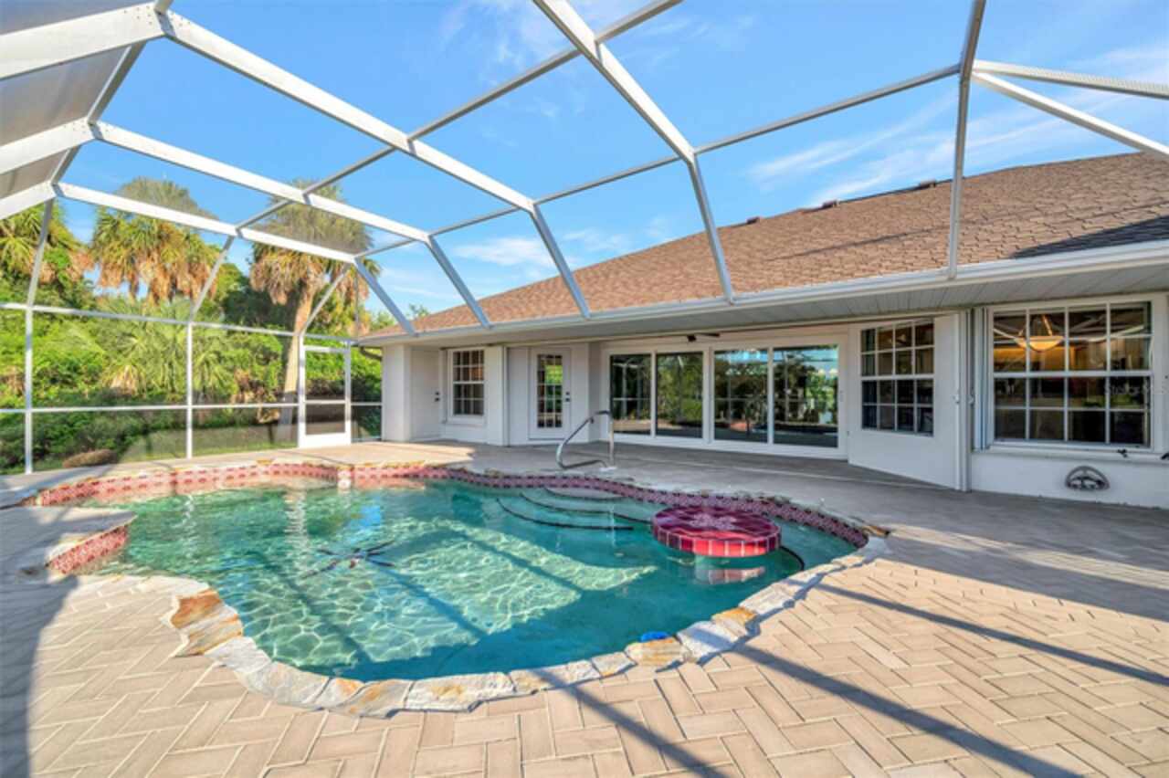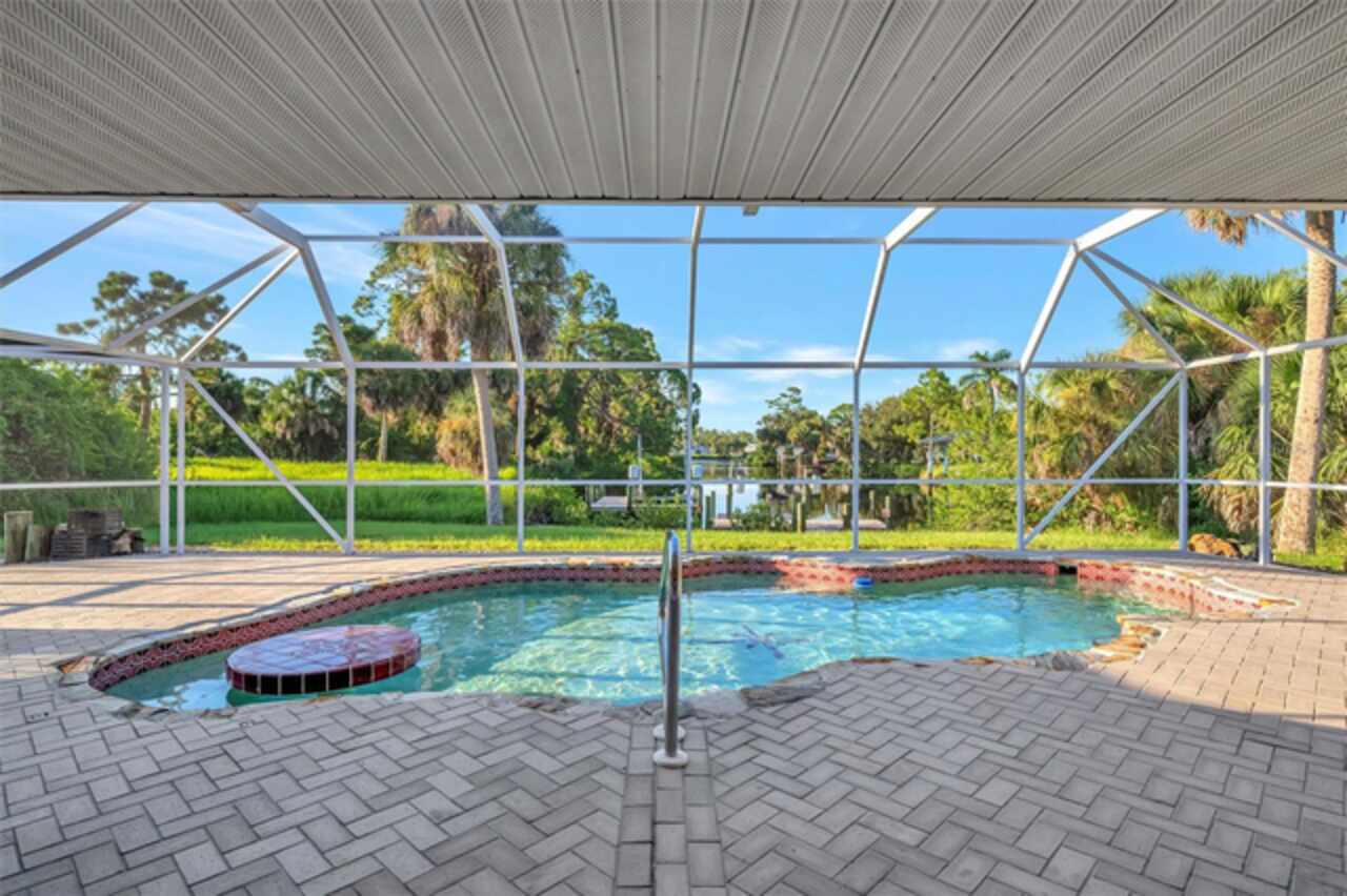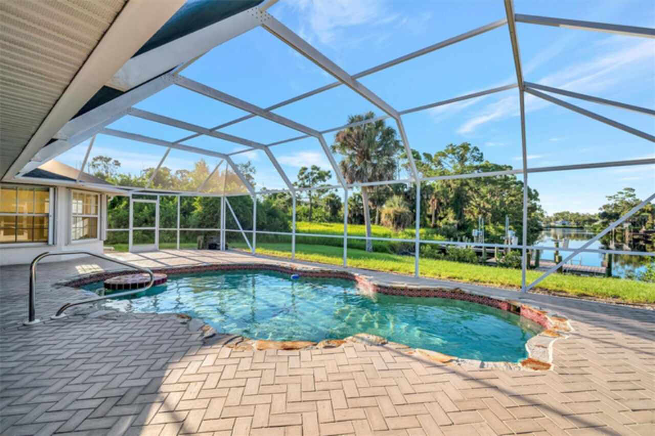 Experience waterfront living at its finest. This beautifully maintained, one-owner pool home offers breathtaking long water-views from your backyard oasis. Nestled on an oversized, nature-surrounded lot with no rear or side neighbors, you’ll enjoy peace, privacy, and serenity every day. The roof was replaced in 2023 and AC replaced in 2018 plus new carpeting in 2025! Inside, an open and airy floorplan greets you with an abundance of natural light, thanks to expansive windows and sliding walls of glass that bring the outdoors in. The spacious layout includes three bedrooms, two bathrooms, a large kitchen with café dining area, and a split bedroom design for added privacy. The oversized garage complete with workbench is sure to please the handiman in the home. Relax on the screened lanai, take a dip in the pool, and enjoy tranquil wooded views that make this home feel like a true getaway. And with no HOA, you’ll have the freedom to make it your own — whether you're ready to move right in or customize to your heart's content. A rebuilt dock (2016) with a 4, 500 lb boat lift is ready for your next adventure — Boating enthusiasts and fisherman alike will enjoy cruising the Cheshire Waterway with direct access to Charlotte Harbor, the Myakka River, and the Gulf of Mexico. Spend your days exploring Pine Island, Sanibel, Captiva, Boca Grande, and beyond. Sports fans will also appreciate being just a short drive from spring training games with the Tampa Bay Rays and Atlanta Braves nearby. This is Florida waterfront living at its best — come see it for yourself!