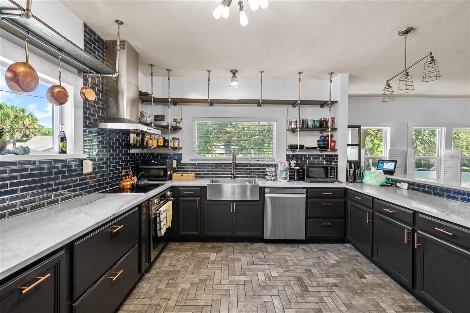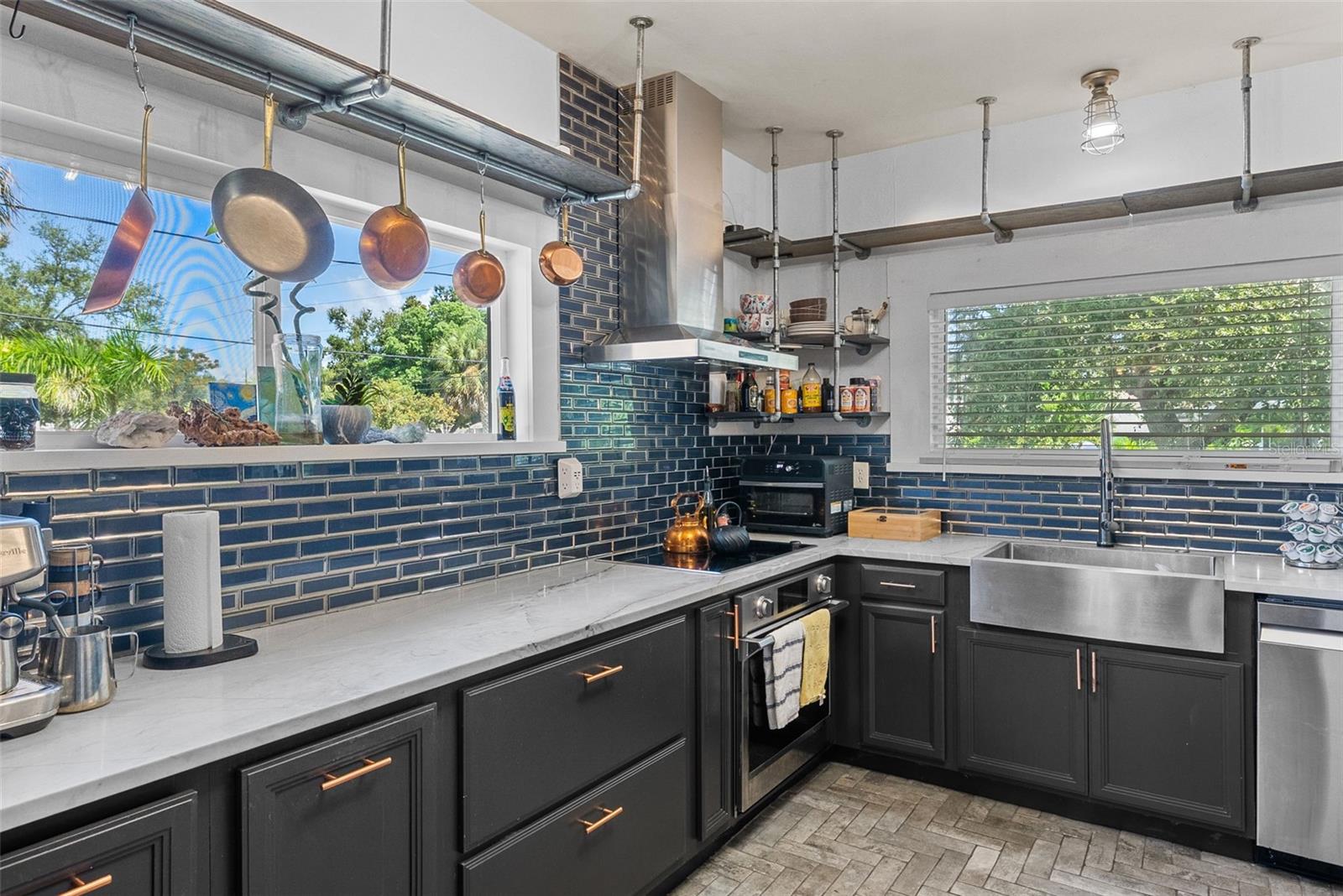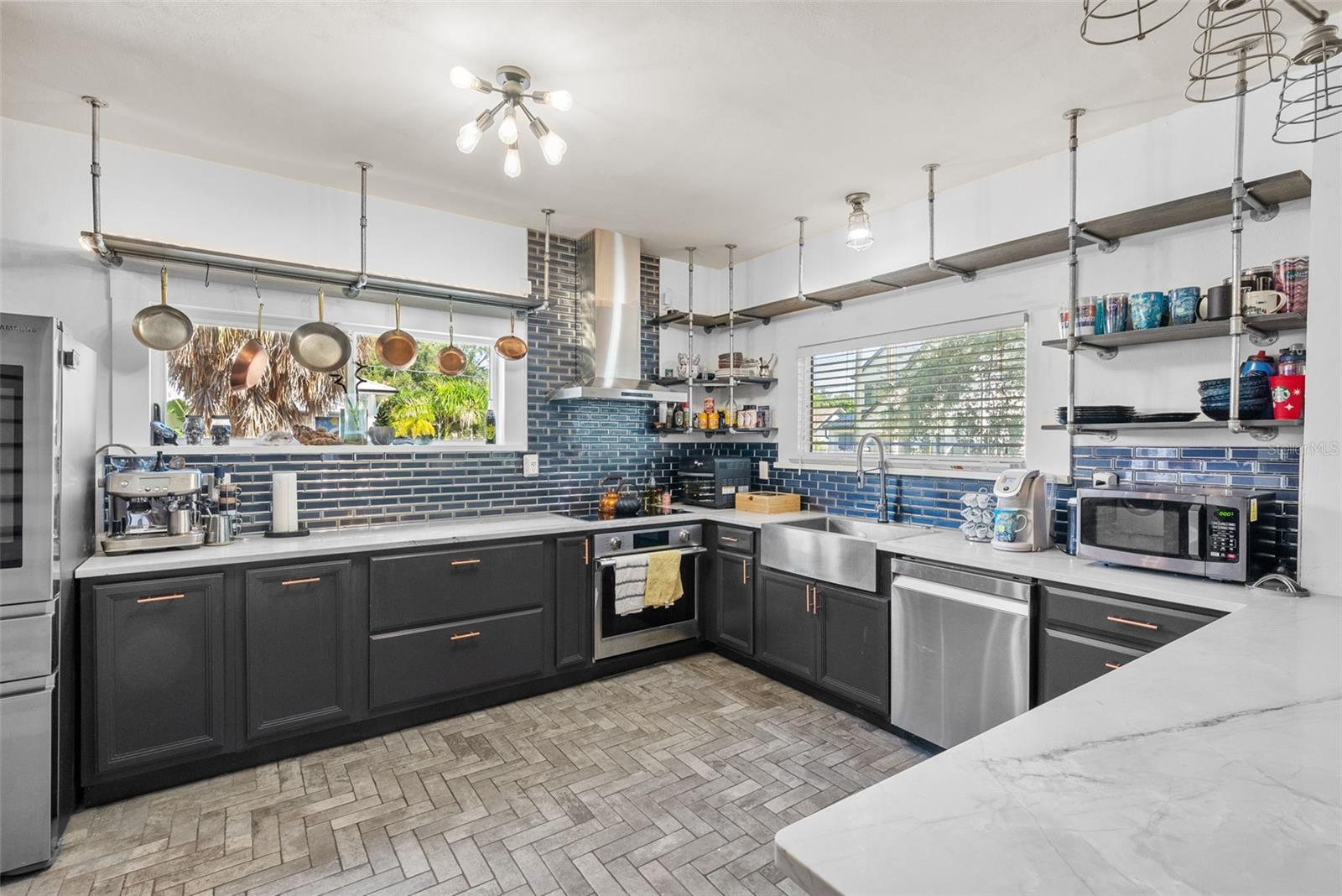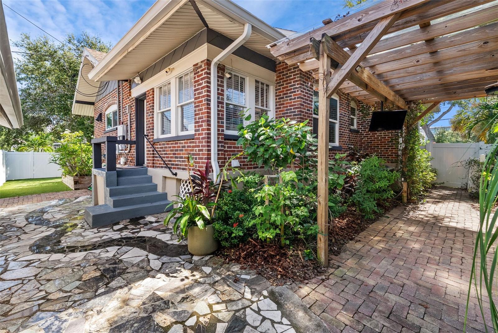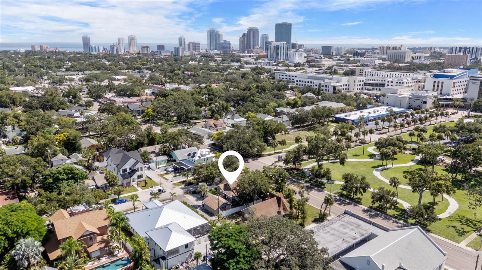 Antique Class Meets Modern Charm in This Beautifully Upgraded, Move-In Ready Home! Over 50k Kitchen Renovation Designed for the Chef at Heart, with Bianco Superiore Quartzite Slab Countertops, Voice Activated Farmhouse Faucet, Top-Of-The-Line Samsung Wi-Fi and Bluetooth Appliances, Custom Range Hood, Open Shelving, and A Handcrafted Backsplash. Bask in the Luxurious Master Suite, Complete with Top of The line Tech Upgrades and Ensuite Bath Presenting Hotel-Style Finishes, Creating A Spa-Like Personal Retreat. The First Floor Showcases Solid Oak Floors, Three Bedrooms, A Spacious Family Room with A Wood-Burning Fireplace. A Sunroom/Office with Gallery Lighting to Spotlight Personal Treasures, and a Utility/Mudroom with High-End Front Load Washer and Dryer. Notice the Steam Punk Themed Additions Throughout the Home, Expanding the Storage Options, Adding a Combination of Historical Elegance and Industrial Functionality to This One-Of-A-Kind 1936 Restored Masterpiece. The Striking Wood Staircase Leads to the Master Addition, Featuring Strand Woven Bamboo Floors. Enjoy Smart Home Technology, Money-Saving 4.2 Kw Solar Panels, And Countless Updates: Hurricane-Rated Windows, 2015 Roof, 2016 AC, Vinyl Fencing, French Doors, Upgraded Plumbing, Wiring, Water Heater, and More. Detached Two-Car Garage with a Grandfathered In 1/2 Bath, Adds the Potential of An Additional Primary Living Space or Future ADU. Plus Off Street Three-Car Brick Paver Parking. Built ON a Corner Lot with Solid Brick Construction and Raised Concrete Foundation, and in a NO FLOOD, Non-Evacuation Zone, for Even More Security. Located In The Coveted EUCLID/ST PAUL Neighborhood, Just A Short Walk To Downtown St. Petersburg, USF Campus, Shopping, Parks, The Waterfront, with A Vibrant Scene of Music, Art, and Dining. Entertain Under The Massive Pergola While Taking In The Natural Beauty Of Your New St Pete Home! Note: Noise is Never an issue, Ambulances Enter From 5th Avenue, Not 9th.