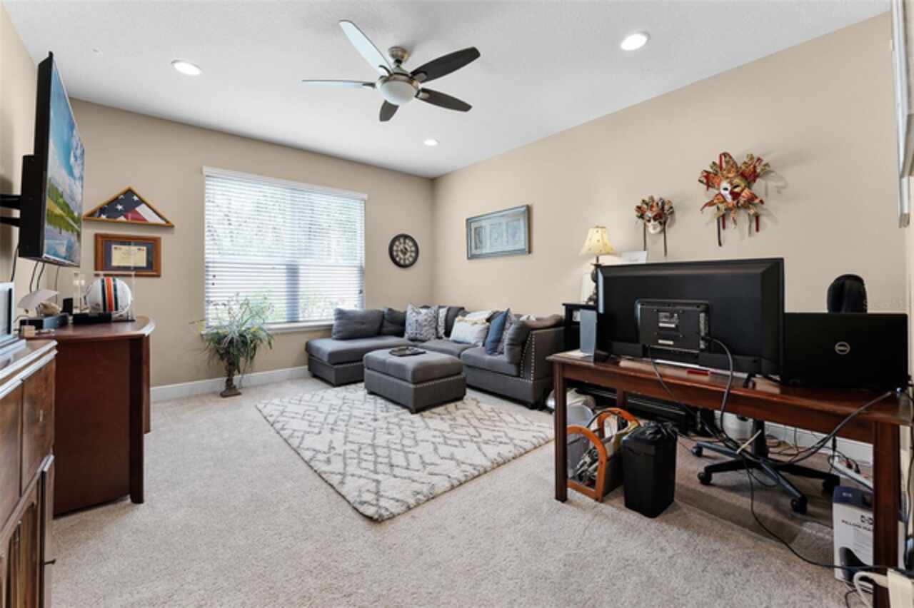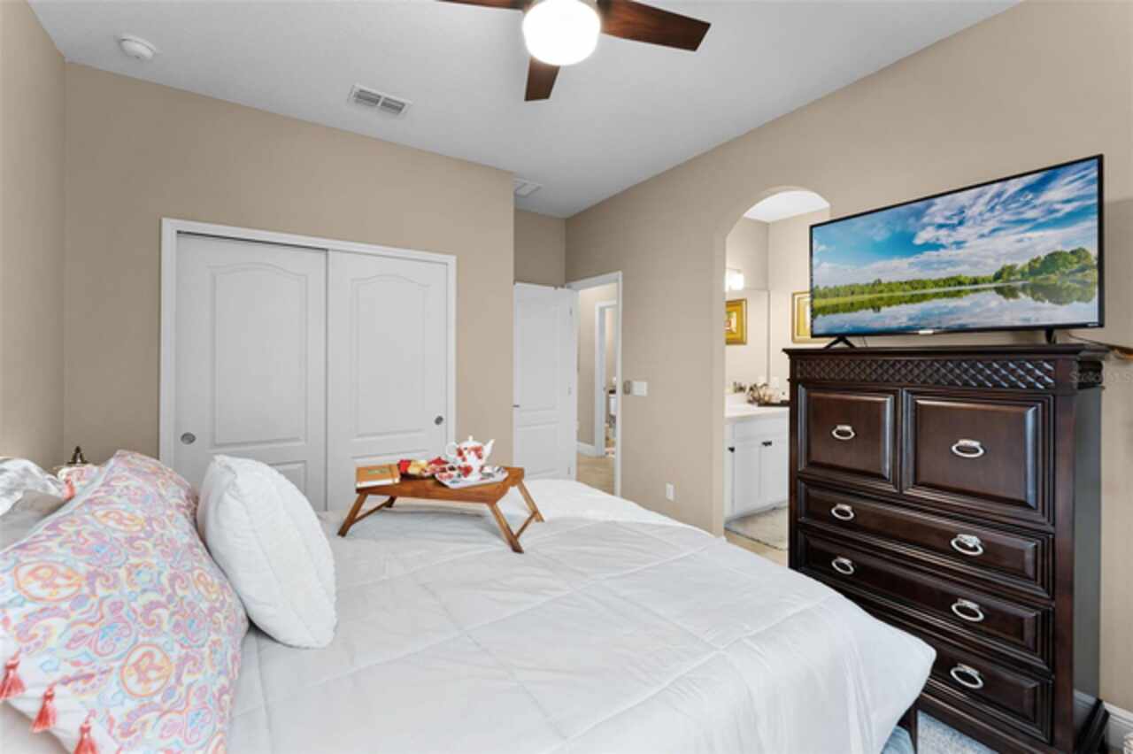 Discover a haven of tranquility and elegance in this breathtaking craftsman-style, Taylor Morrison BUILT retreat nestled in the heart of Oviedo. Conveniently located just off 434, easy access to 417, zoned for top rated schools with short commutes to UCF, Oviedo at The Park' shopping & dining, & Twin Rivers Golf Club. Spanning OVER 3, 200 square feet, this home artfully merges privacy with openness, enveloped in lush, tropical landscaping. Situated in The Retreat at Lake Charm, a charming enclave of just 46 GATED homes positioned north of the Lake Charm Historic District, this residence offers a serene backdrop for that coveted peaceful lifestyle. As you step inside, the generous open floor plan immediately captivates, accentuated by trayed ceilings in the foyer and rotunda, and graceful 8-foot archways throughout. The extended primary suite is a sanctuary in its own right, boasting a luxurious en-suite bath complete with a spacious separate shower, a soaking tub, and a bespoke walk-in closet designed for effortless organization. The heart of the home is the gourmet kitchen, featuring a majestic 10-foot granite island, a stylish tile backsplash, and state-of-the-art stainless steel appliances, including a top-of-the-line GE Café refrigerator with an in-door Keurig. Custom cabinetry and a uniquely designed pantry offer ample storage solutions. Whether you’re seeking a quiet workspace or an open area for entertaining, the dedicated office space provides versatility with its substantial cabinetry, wine fridge, and wet bar. For movie buffs or gaming enthusiasts, the media room offers the perfect escape, easily adaptable into a game room or man cave. Embrace outdoor living by opening the 12-foot telescopic sliding doors, seamlessly extending your living space to the spacious covered lanai. It’s the ideal setting for tranquil mornings, lively weekend barbecues, or enchanting evening gatherings under the stars. Intricate details and high-quality finishes abound throughout this home, offering a move-in-ready opportunity for its next fortunate owner. Don’t miss the chance to reside in one of Oviedo’s most sought-after communities!