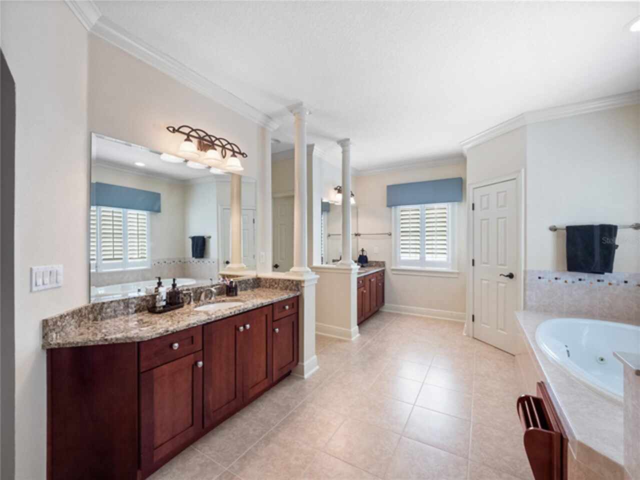 This stunning 5-bedroom, 4-bathroom home is located in the prestigious Reunion Resort and offers nearly 5, 000 sq. ft. of living space. A transferable Reunion Resort membership is included. Lovingly maintained as a second home (never used as a rental), the property is in excellent condition and filled with elegant touches throughout. As you enter, you’re greeted by a spacious open floor plan featuring beautiful wood floors, stately columns, and custom drapes. The formal dining room and informal living area create a welcoming flow, while the main living room offers a gas fireplace and sliding doors that open to a serene courtyard with built-in spa. The kitchen is generously sized with ample cabinet space, a closet pantry, granite countertops, matching backsplash, and a cozy breakfast nook. A large primary suite is located downstairs, overlooking the courtyard. This suite includes upgraded patio doors, a walk-in closet, and a spa-like bathroom with a soaking tub, glass-enclosed shower, and dual vanities. The rear of the home features a private pool with a pavered deck for outdoor enjoyment. Upstairs, wood floors lead you to a loft area and three spacious ensuite bedrooms. The front bedroom includes balcony access and a full bath with tub/shower combination. Another suite also offers balcony access, a walk-in shower, and a bathroom that can serve both the bedroom and loft. The upstairs primary suite is exceptionally large with its own balcony overlooking the courtyard, two walk-in closets, dual vanities, a soaking tub, and a walk-in shower. This suite also includes a kitchenette with fridge, cabinets, and dishwasher, plus a separate built-in bedroom—an ideal setup for a private family suite or flexible rental option. Additional features include crown molding, plantation shutters throughout, and elegant custom finishes. But what truly sets this property apart is its location within Reunion Resort. Ownership here means more than just a home—it’s a lifestyle. With the transferable membership, you’ll have access to three championship golf courses designed by legends Jack Nicklaus, Arnold Palmer, and Tom Watson. The resort also features a five-acre water park with lazy river and slides, multiple community pools, world-class tennis and pickleball courts and a variety of dining options ranging from casual cafes to upscale restaurants. Whether you’re looking to unwind, stay active, or entertain guests, Reunion offers something for everyone. Don’t miss the opportunity to own this spacious and sophisticated residence in Reunion Resort. Contact us today to schedule your private showing.