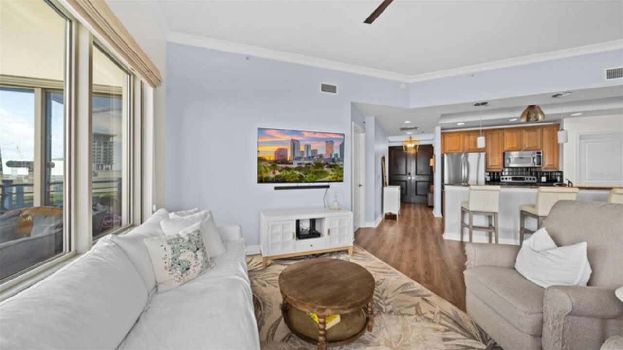 Let's make a deal! This condo offers the convivence and feeling as if you have your own back yard! You can exit the condo from the huge wrap around balcony and easily walk to the pool, your car or take your pets right outside without the use of an elevator. This is a RARE find in the Towers! This unit added a full second bathroom, unlike any other condo in the Towers. This beautifully renovated 1-bedroom condo (with an optional den as a second bedroom) in Downtown Tampa combines modern elegance and a prime location. Situated in the Towers, this rare floor plan offers a spacious layout with high ceilings, stylish new wood-look tile floors, and a kitchen with granite countertops, new stainless-steel appliances, and a breakfast bar. The condo also includes 2 full bathrooms. The furnishings are high-end and available for sale … offering a luxurious touch throughout. The primary bedroom has a walk-in closet, and the private balcony provides easy access to amenities like the resort-style pool, concierge, and dog park. Additional perks include 2 secured parking spots, a climate-controlled storage unit, and access to top-tier amenities such as a spa, grilling area, recreation room, bike storage, guest parking, and two dog parks. The condo’s central location puts you steps away from dining, shopping, entertainment, and key attractions like Sparkman’s Wharf, Bayshore Boulevard, Amalie Arena, and Tampa International Airport.
