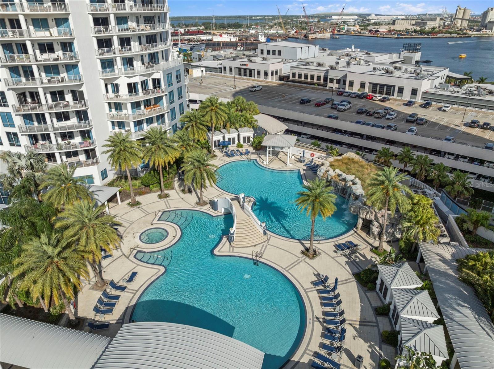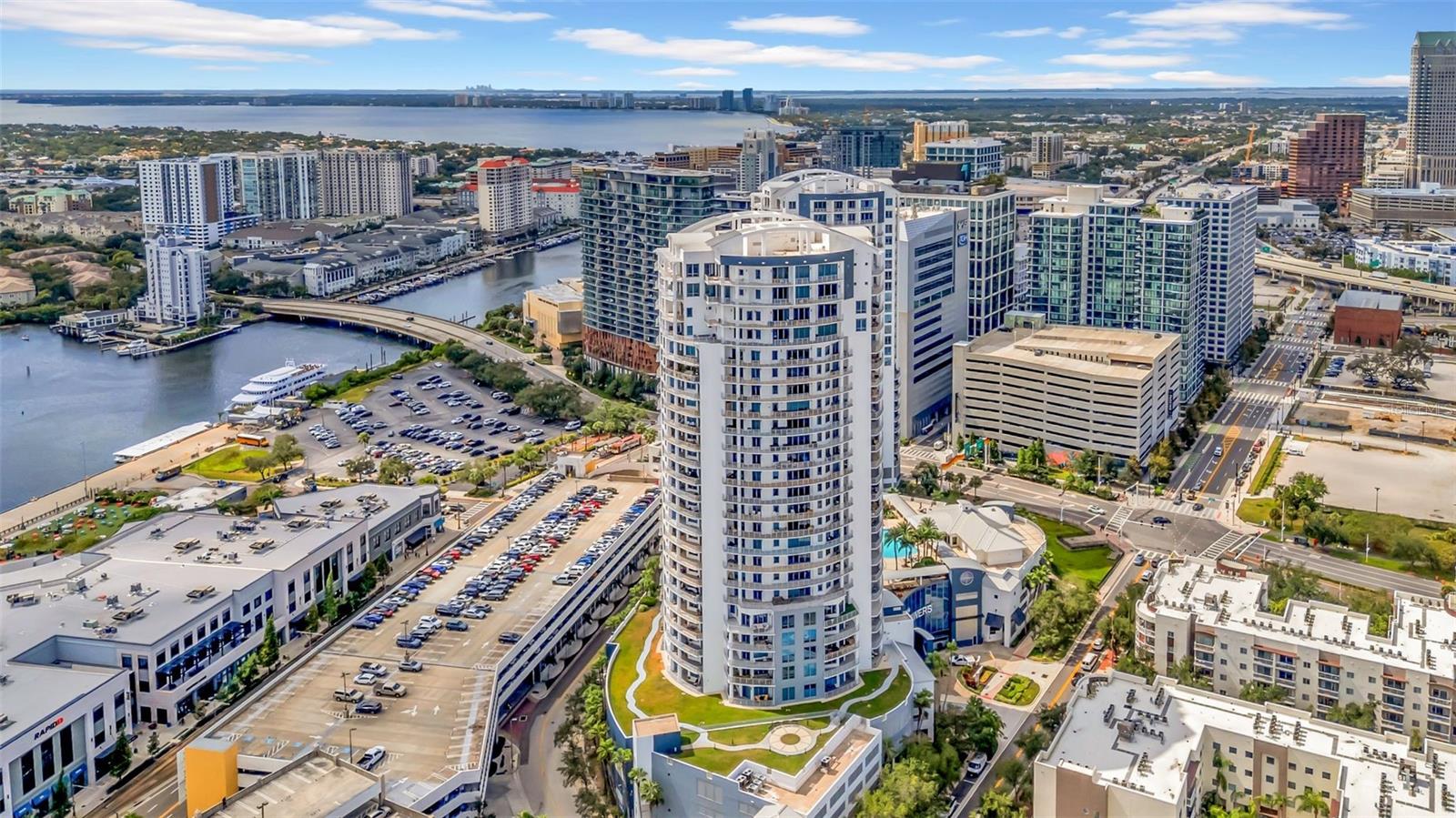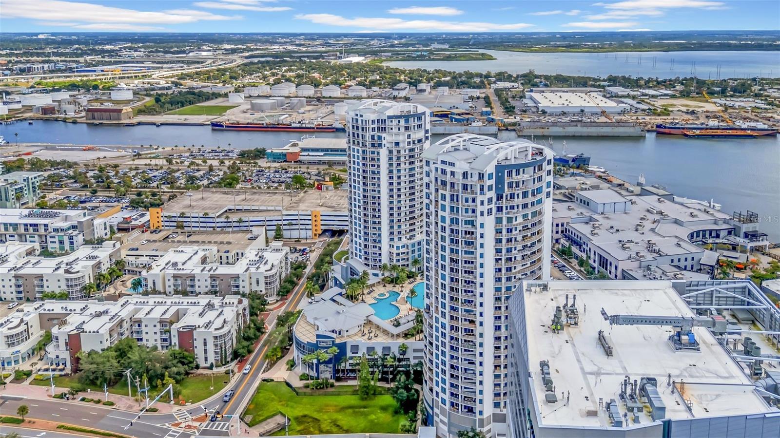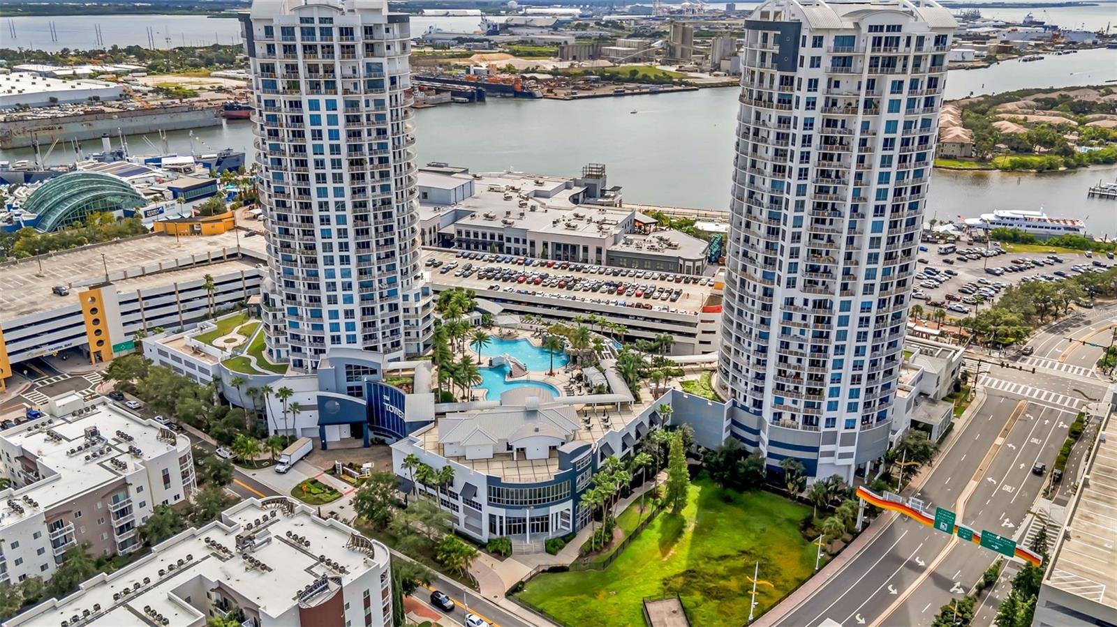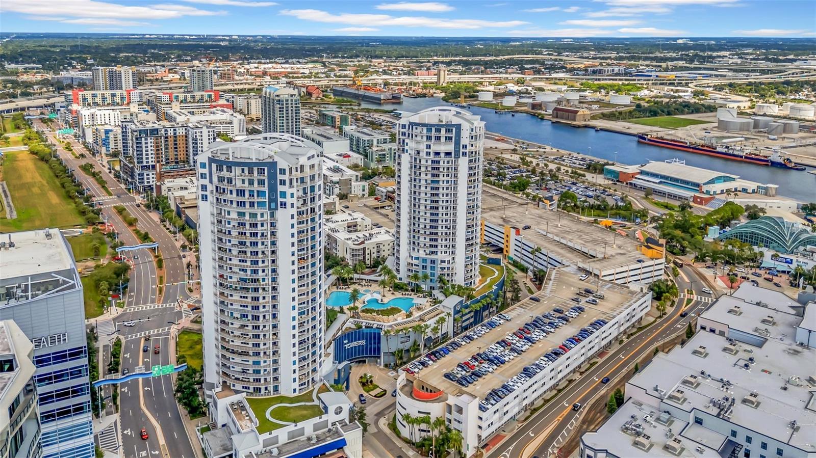 Under contract-accepting backup offers. One or more photo(s) has been virtually staged. This stunning 2-bedroom, 2.5-bath condo on the 6th floor of The Towers of Channelside offers the perfect mix of space, style, and downtown convenience at an unbeatable value. Floor-to-ceiling windows fill the open living area with natural light and open onto a massive wrap-around balcony—nearly 250 sq ft of outdoor living space—with sweeping views of downtown Tampa and the cruise ships arriving and departing from the port. Inside, you’ll love the smart split-bedroom layout. The primary suite features dual vanities, a soaking tub, a walk-in shower, a large walk-in closet plus a second closet for extra storage. The guest suite includes its own full bath and walk-in closet and can easily double as a home office or flexible guest space, offering privacy and versatility. A convenient half bath off the foyer and a full laundry room with pantry add thoughtful function to the layout. This unit comes with two assigned garage parking spaces and a climate-controlled storage unit located safely on the 4th floor—a rare and highly sought-after perk in downtown living. At The Towers, every day feels like a getaway. Enjoy resort-style amenities including a rooftop pool and spa surrounded by tropical landscaping, two 5th-floor dog parks with wash stations, a resident clubhouse with lounge and bar, outdoor cabanas with grills, and 24/7 concierge and gated entry for peace of mind. Located just steps from Tampa’s best attractions—you’re a 2-minute walk to Sparkman Wharf, 3 minutes to the Riverwalk, 5 minutes to the Florida Aquarium, 7 minutes to Benchmark (Amalie) Arena, and less than a five minute walk to Water Street. This condo delivers unbeatable walkability and lifestyle access, all at a price well below nearby developments. Don’t miss your chance to own one of the best values in Channelside high-rise living—with front-row balcony views of Tampa’s skyline and cruise ships sailing by.