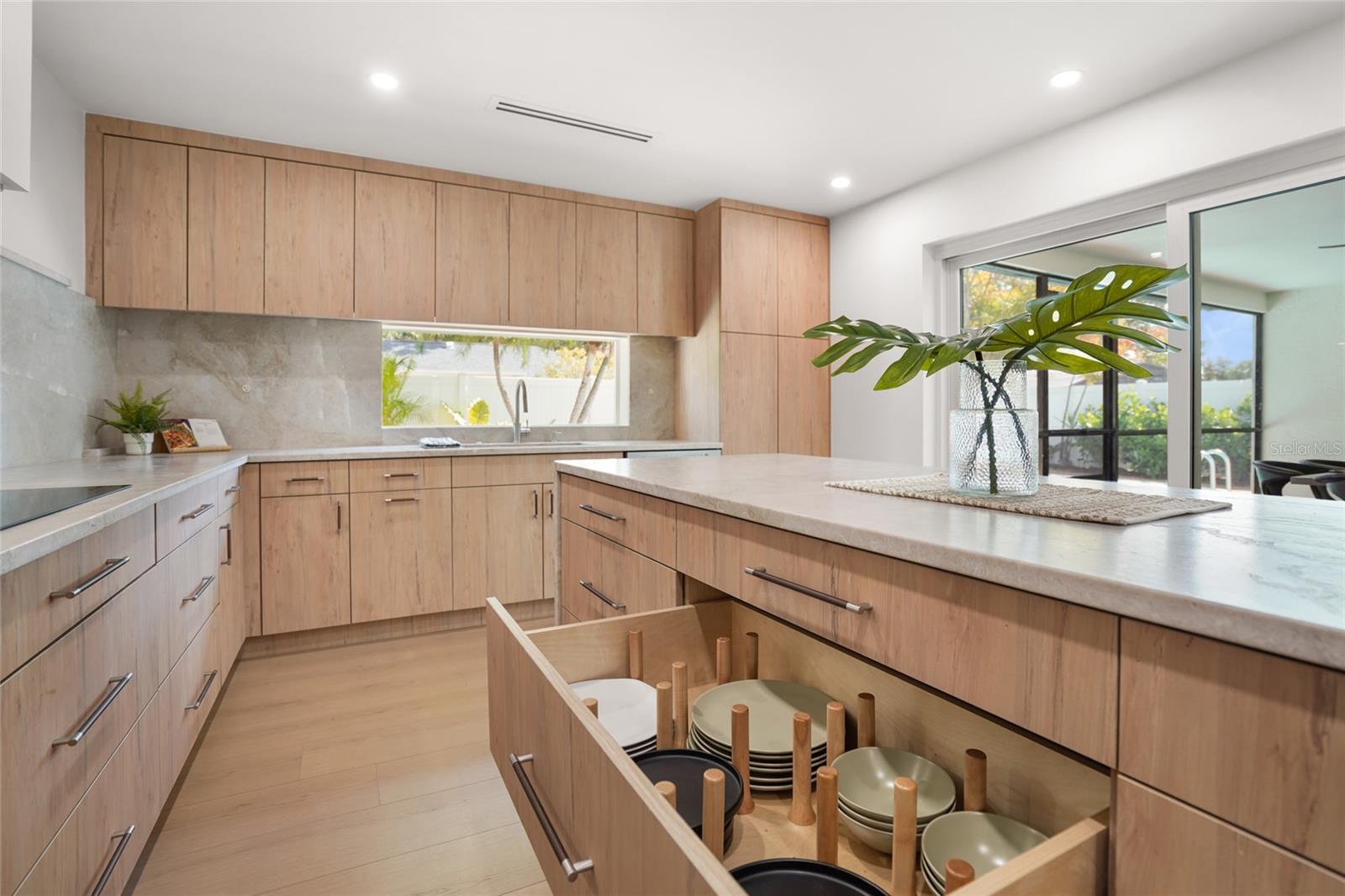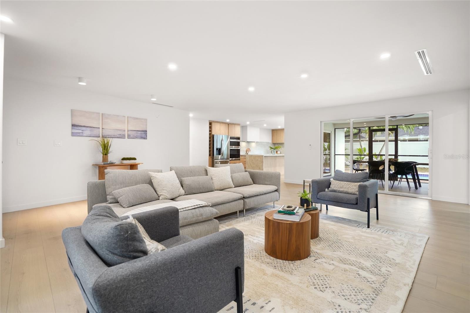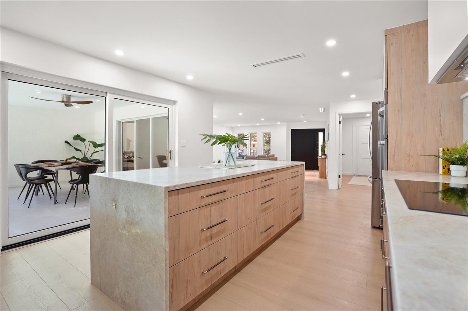 Under contract-accepting backup offers. Modern Coastal Luxury in the Heart of Dunedin Step into this fully reimagined luxury retreat, a stunning 3-bedroom, 2-bath, 1, 737 sq. ft. pool home that feels brand new from top to bottom. Every detail of this remodel was crafted for those who appreciate refined design, effortless function, and high-end finishes throughout. NEW EVERYTHING. Inside, wide-format luxury vinyl plank flooring flows seamlessly through the open-concept layout, accented by all-new doors, sleek designer hardware, and recessed lighting. The custom kitchen is the heart of the home, featuring an expansive island with Taj Mahal quartz countertops and a double waterfall island. Prepare gourmet meals on the Miele induction cooktop, LG stainless appliances, wall oven & microwave. The custom organic maple cabinetry offers thoughtful built-ins- spice rack, wine rack, enclosed coffee bar/pantry, and an integrated utensil system. Every drawer is soft-close, with modern push-latch cabinets adding to the custom elegance. The owner’s suite is a private sanctuary with a fully glass-enclosed porcelain-tiled walk-in shower and floating quartz vanity, along with a walk-in closet with custom built-ins. The other bedrooms also have custom closets, while the second bath boasts a floating vanity, luxury tile, and modern fixtures. From your living room, step through the new triple full-glass slider to an expansive screened-in lanai with large-scale porcelain tile and a ceiling fan overlooking your newly resurfaced pool (2025) with a newer pool pump (2023)—a true backyard oasis. The entire exterior has been newly painted and wrapped in black trim with new gutters, modern exterior lighting, and a fresh contemporary look that enhances its curb appeal. This home isn’t just beautiful, it’s built to last. Enjoy all new systems including PEX plumbing, new ductwork, brand new HVAC, electrical updates, new windows with hurricane shutters, and full lawn irrigation offering peace of mind and efficiency for years to come. From the two-car garage, a spacious laundry room awaits, complete with a built-in sink and workspace, the perfect blend of functionality and refined design. Located in one of Dunedin’s most desirable neighborhoods, you’re within the golf-cart-friendly zone to vibrant Downtown Dunedin, known for its boutique shops, art galleries, local breweries, farmers markets, and year-round festivals. Spend your weekends biking the Pinellas Trail or exploring Honeymoon and Caladesi Islands, two of Florida’s most pristine Gulf beaches. Every inch of this Dunedin home reflects thoughtful design and craftsmanship—modern, elegant, and move-in ready. It won’t last long, so act now to make this dream home yours.