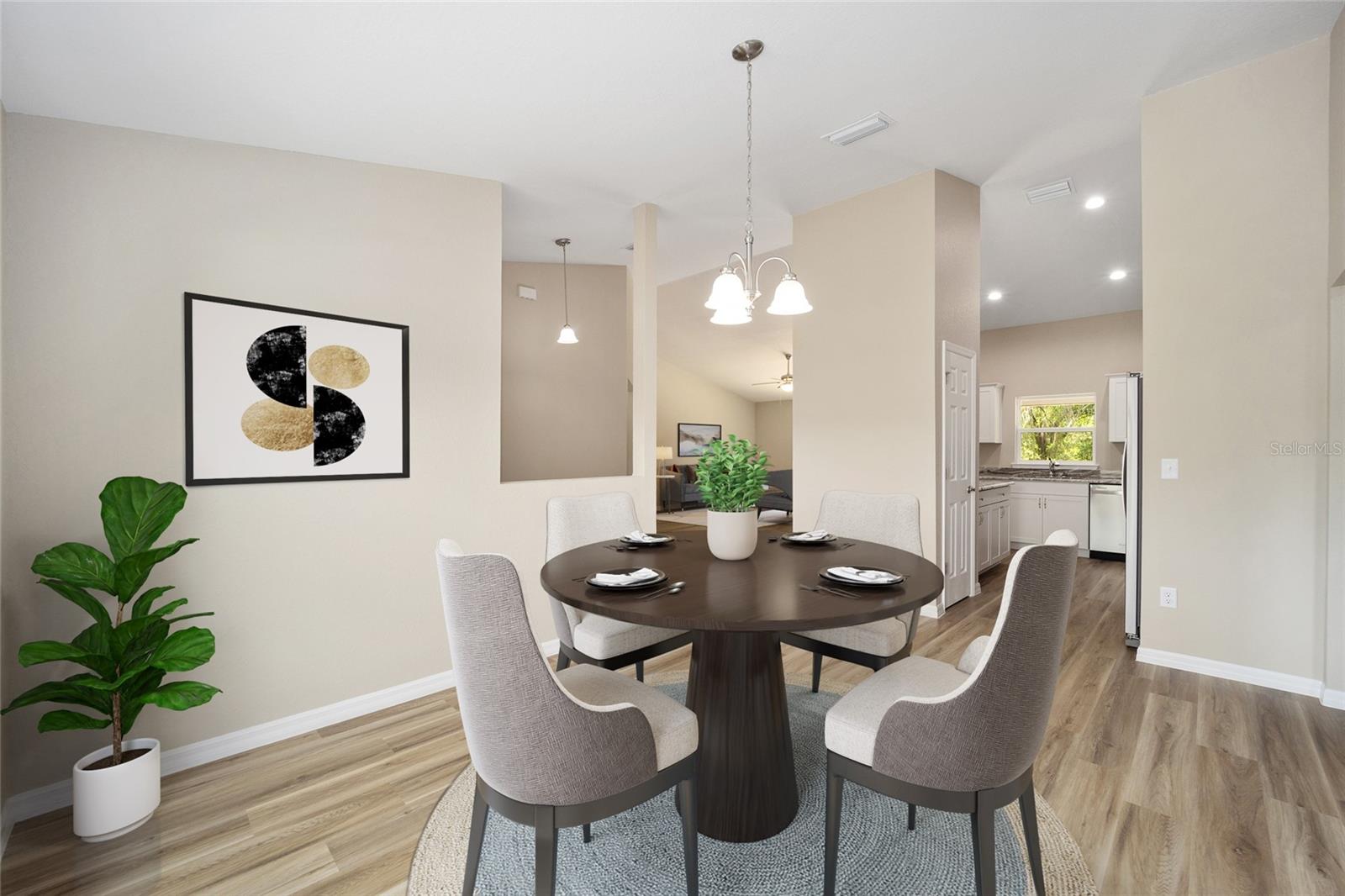 One or more photo(s) has been virtually staged. MOVE IN READY!! Beautiful new construction home on massive 1.16 acre lot! Surrounded by beautiful trees! Luxury Plank Vinyl flooring throughout all living and common areas, tile in bathrooms, and carpet in the bedrooms. Open floor plan with dedicated dining room + office / flex room off living room, and large kitchen island area, all done in neutral, pleasing colors. Inside laundry with W & D hook-ups. Walk-in closet in Master bedroom. Stainless steel appliance package in the kitchen. Cabinets are white shaker-style with light luxury quartz countertops. Pictures are of model home, actual photos coming soon. Please see attached documents from Builder (Builders Contract Addendum & Warranty) Any photos depicted are for illustration purposes only and only to show layout. Floor plan displayed is our standard plan and garage orientation may vary on actual home. Interior and exterior colors, finishes, and garage orientation will vary for actual home. Information is deemed correct, but no guarantee made. Any dimensions listed are approximate. ***Inquire about our preferred lender deals! Builder offering to contribute to buyer’s closing costs or help with rate buy downs! We can be flexible to help our buyers get into a beautiful home! ***