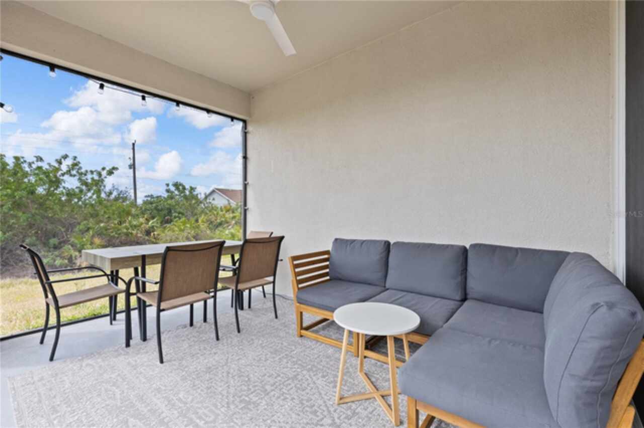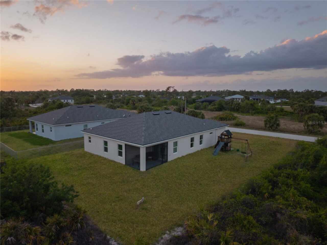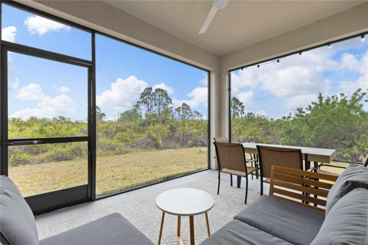 Better Than New — Move-In Ready & Full of Upgrades! Why wait for new construction when you can have the best of both worlds right now? Built in 2024 and barely lived in, this immaculate home offers the modern design and efficiency of new construction plus a long list of thoughtful upgrades that make it truly turnkey. Step inside to a bright, open layout with four spacious bedrooms and three full baths, including a private guest suite with its own ensuite—perfect for family or visitors. The kitchen shines with crisp white cabinetry, granite countertops, classic subway tile backsplash, stainless steel appliances, a pantry closet, and a large center island ideal for casual meals and entertaining. The primary suite is a relaxing retreat featuring a tray ceiling, dual walk-in closets, double vanities, and a sleek walk-in shower with glass enclosure. Throughout the home, you’ll appreciate luxury wood-look vinyl flooring in the main living spaces and plush carpeting in the bedrooms for added comfort. Unlike a new build, everything is already done for you—custom window treatments, ceiling fans, a screened lanai, lawn irrigation, and even an epoxy-coated garage floor. Additional upgrades include a whole-house reverse osmosis system with a 250-gallon holding tank and Kevlar fabric hurricane shutters for peace of mind. Set on a beautifully landscaped lot with great curb appeal, this home is located near Charlotte Harbor, Gulf beaches, shopping, dining, and more—offering the perfect blend of style, comfort, and convenience.