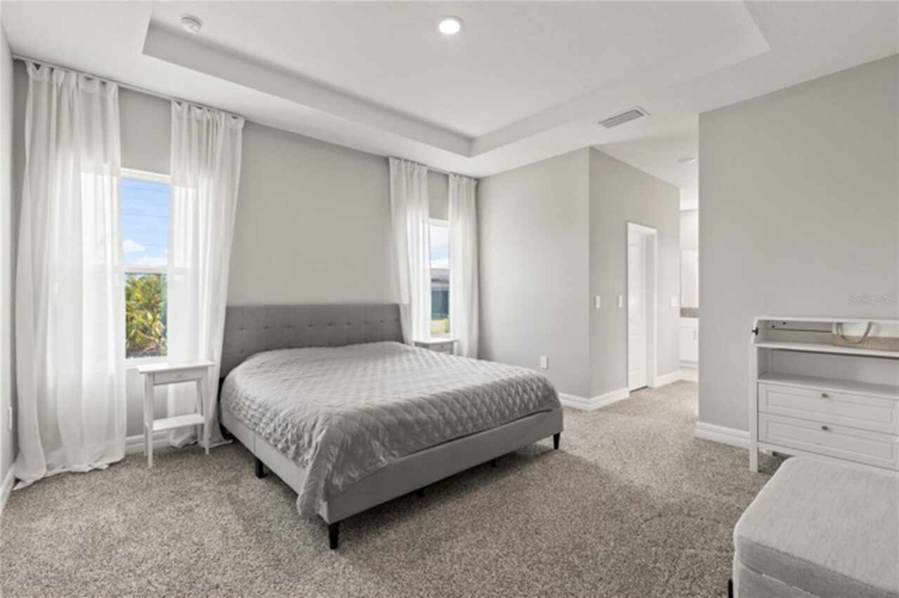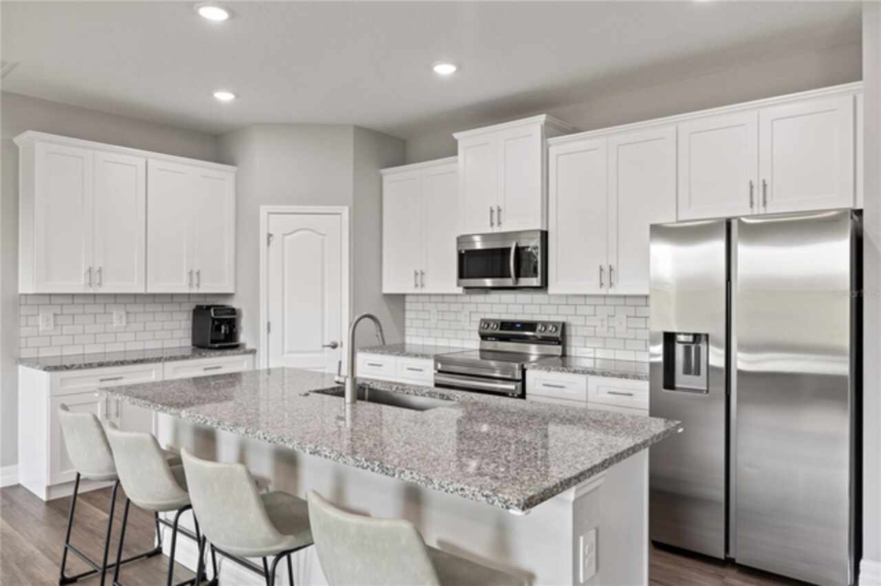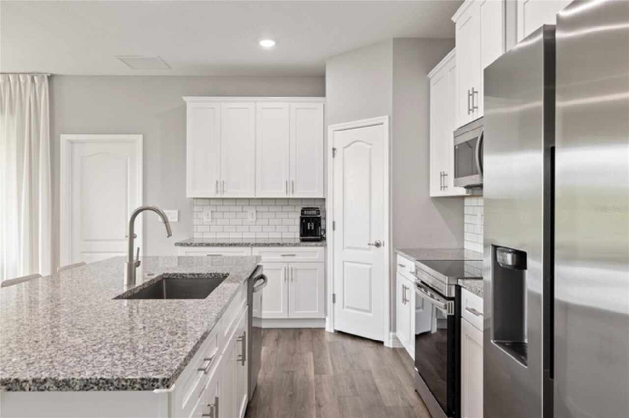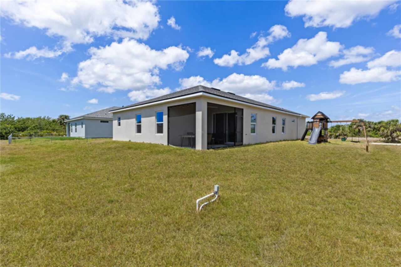Better Than New — Move-In Ready & Full of Upgrades! Why wait for new construction when you can have the best of both worlds right now? Built in 2024 and barely lived in, this immaculate home offers the modern design and efficiency of new construction plus a long list of thoughtful upgrades that make it truly turnkey. Step inside to a bright, open layout with four spacious bedrooms and three full baths, including a private guest suite with its own ensuite—perfect for family or visitors. The kitchen shines with crisp white cabinetry, granite countertops, classic subway tile backsplash, stainless steel appliances, a pantry closet, and a large center island ideal for casual meals and entertaining. The primary suite is a relaxing retreat featuring a tray ceiling, dual walk-in closets, double vanities, and a sleek walk-in shower with glass enclosure. Throughout the home, you’ll appreciate luxury wood-look vinyl flooring in the main living spaces and plush carpeting in the bedrooms for added comfort. Unlike a new build, everything is already done for you—custom window treatments, ceiling fans, a screened lanai, lawn irrigation, and even an epoxy-coated garage floor. Additional upgrades include a whole-house reverse osmosis system with a 250-gallon holding tank and Kevlar fabric hurricane shutters for peace of mind. Set on a beautifully landscaped lot with great curb appeal, this home is located near Charlotte Harbor, Gulf beaches, shopping, dining, and more—offering the perfect blend of style, comfort, and convenience.