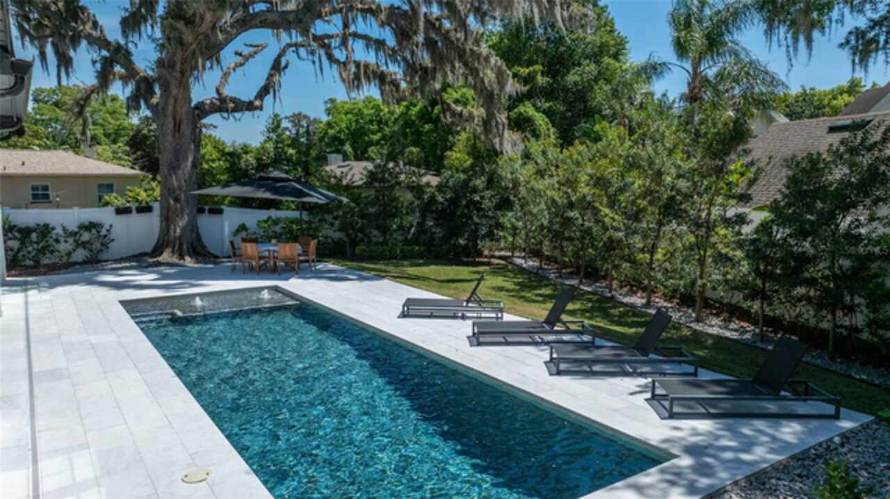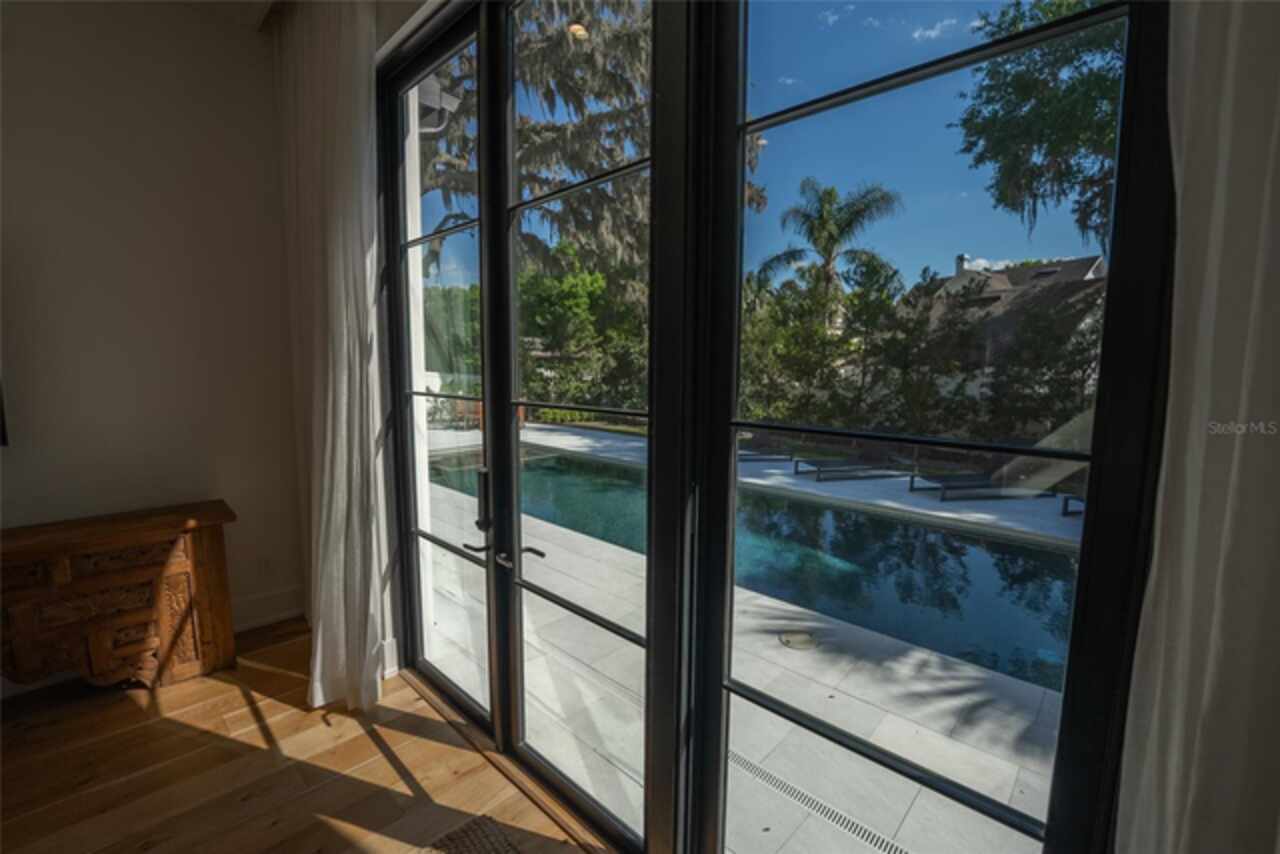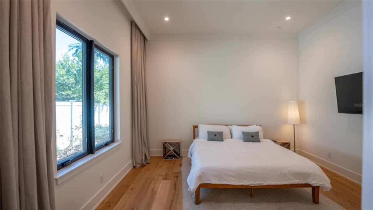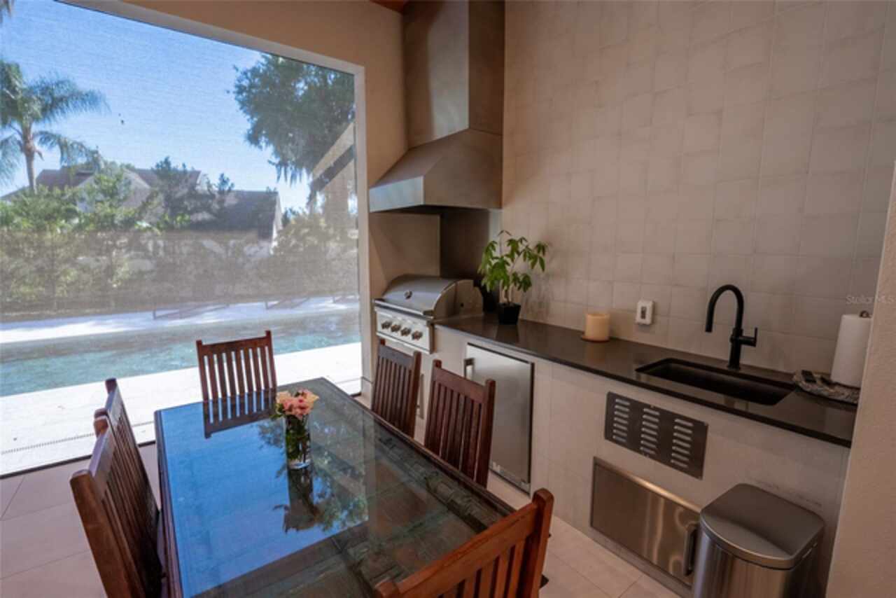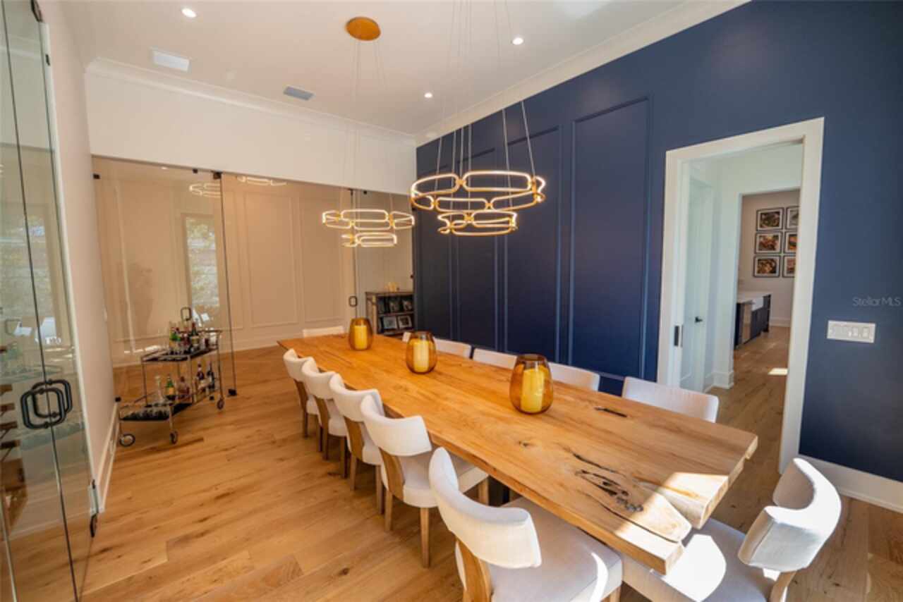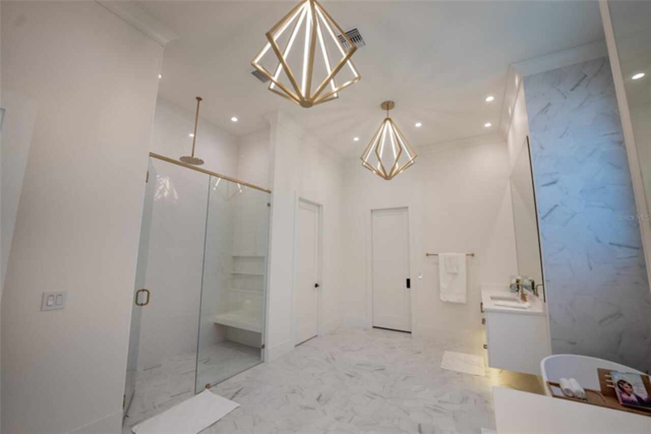 This Modern, Contemporary single-story home, built by FG Schaub Custom Homes, is 4, 389 SF under air plus a 434 SF transitional room, creating 4823 SF of living space all on one floor. This urban retreat features 5 bedrooms, 5 en suite bathrooms, 2 half bathrooms, a formal dining room, and a 60’ by 9’ Gallery, with 12’ ceilings throughout. The home is custom-designed to fit on the 14, 360 SF lot. It is situated in the Delaney Park neighborhood of Downtown Orlando. Built in 2023, this home has a meticulous design and high-quality fixtures. The 12’ ceilings are an inspiring accompaniment to the Anderson 10’ external double doors throughout the home. Adorned with 5 LED Chandiliers, the Gallery is a centerpiece of the home. The Formal Dining room sits off the Gallery, encased in glass, and the room can hold 12 dinner guests. The Formal Dining room includes a 200-bottle glass-enclosed wine wall. Through the Formal Dining room, you will find 10’ glass doors leading to the dining lanai featuring the custom-built stone firepit. The Brass and Glass Bar stands at the end of the Gallery. The centerpiece of your entertaining. The Chef’s Kitchen provides the space and equipment to indulge your culinary dreams. The island seats 8, allowing the entire family to enjoy the chef’s display. Thermador appliances include a 48” range top with flat grill, a combined 48” double column refrigerator freezer, and a wall oven and microwave. The Butlers Pantry is adjacent to the walk-in Pantry and Formal Dining room. The Great Room provides living space adjacent to both the bar, the chef’s kitchen, and the transitional room. The Great Room’s brick-accented main wall provides an ideal focal point for enjoying entertainment. Two sets of 10’ double doors lead from the Great Room to the Transitional Room. The Transitional Room houses the Summer Kitchen and Pool Bath. The Transitional Room provides a resort living, as an automated screen separates the room from the expansive pool deck. The Primary Suite sits off the Great Room and has direct access to the pool deck through 10’ double doors, which are draped with 12’ ceiling-mounted custom shear drapes. The sizable Primary suite allows room for a desk, bookcase, seating area, and exercise equipment, in addition to a king-size bed. The Primary Bathroom offers a large space including 72” freestanding tub, 7’ shower w/ 4’ wide bench, and single vanities. The Primary Bathroom leads to the Primary Dressing Room with built-in closet fixtures, which provide ample wardrobe space. Opposite the Primary Suite, we have the Guest Suite, which is only accessible from the pool deck, providing an in-law suite effect. The Guest Suite has 10’ double doors providing direct access to the pool deck. The Guest Suite Bathroom provides a roll-in shower to accommodate family members of all ages. Two bedrooms sit off the Gallery and are situated in the center of the house, away from both the Primary and Guest Suites. One Bedroom as a shower with floor-to-ceiling tile, while the other has a bathtub shower combo to accommodate anyone's needs. The home office sits at the front of the home and can double as a 5th bedroom. The Pool Deck measures approximately 1600 SF with a sumptuous 38’ X 12’ (450 SF) heated swimming pool. Mature landscape adorns the perimeter of the backyard, providing a true urban oasis feel. No HOA.