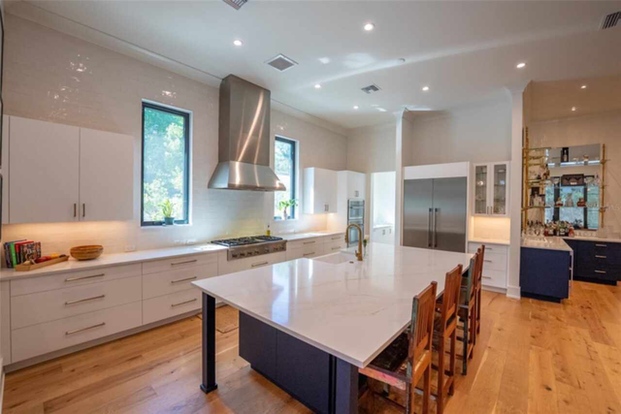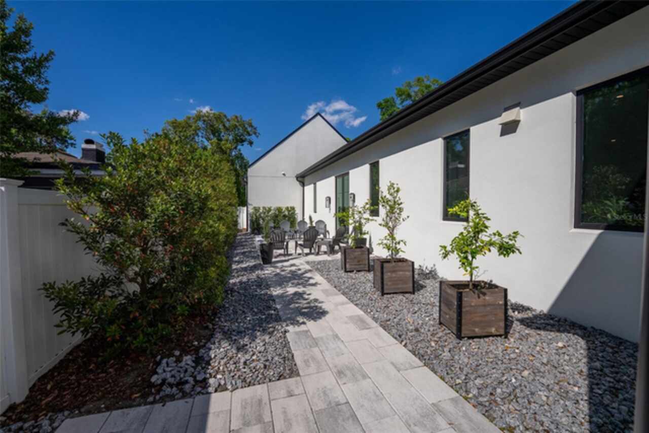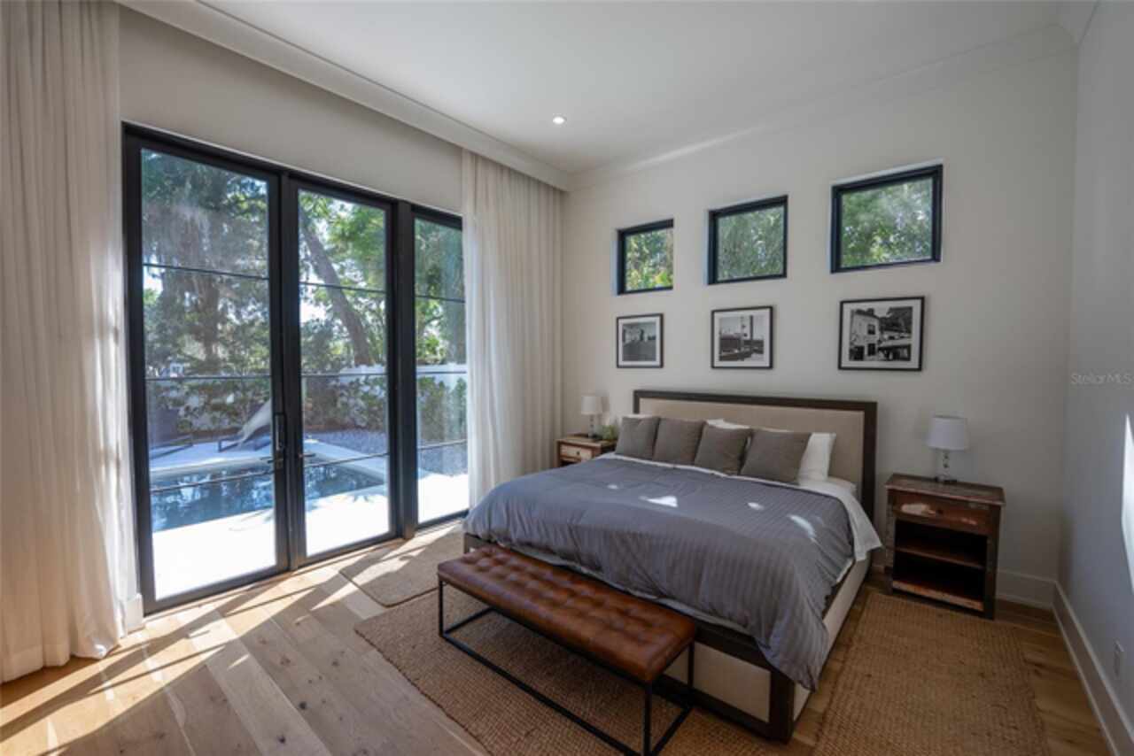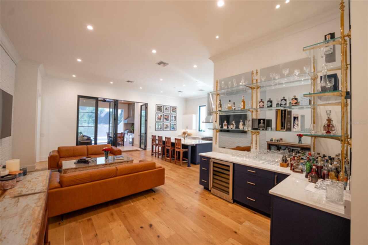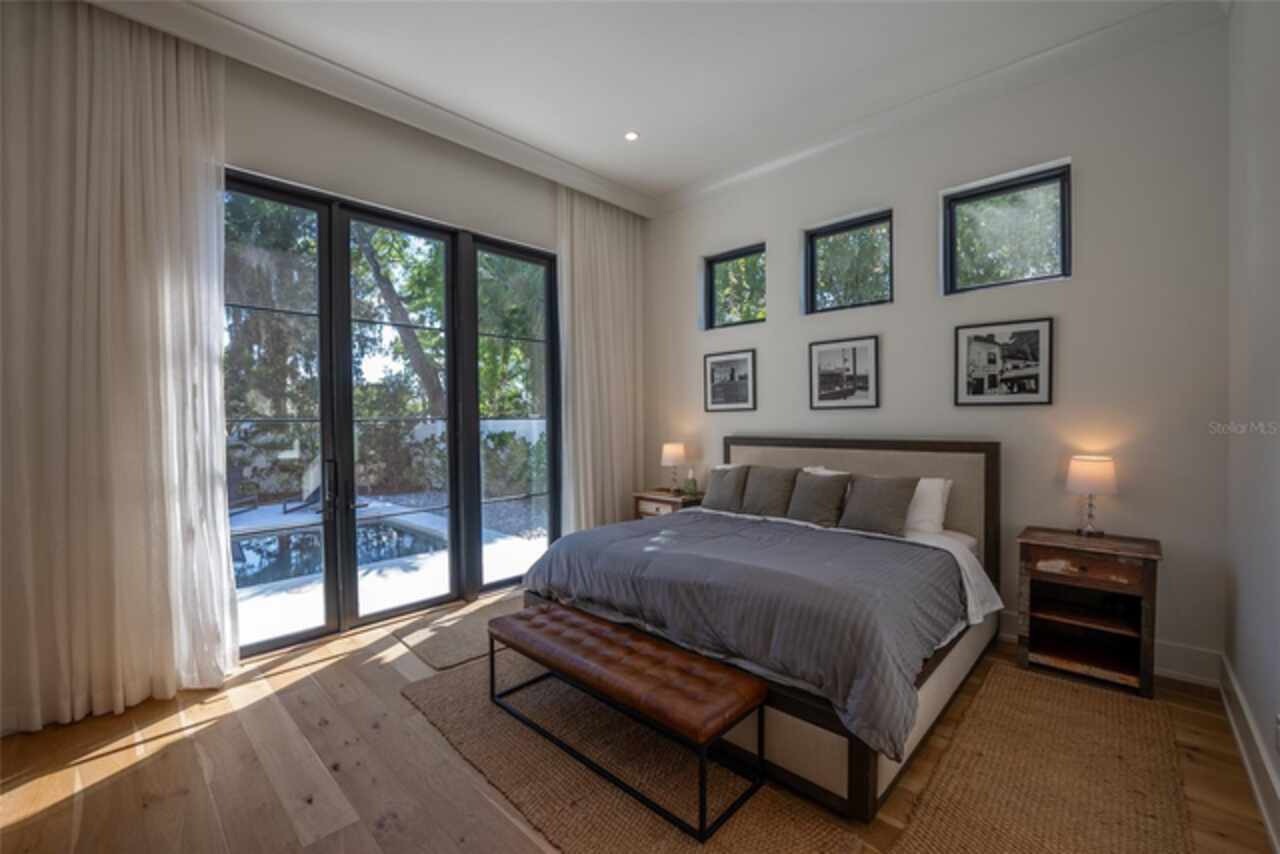 This Modern, Contemporary single-story home, built by FG Schaub Custom Homes, is 4, 389 SF under air plus a 434 SF transitional room, creating 4823 SF of living space all on one floor. This urban retreat features 5 bedrooms, 5 en suite bathrooms, 2 half bathrooms, a formal dining room, and a 60’ by 9’ Gallery, with 12’ ceilings throughout. The home is custom-designed to fit on the 14, 360 SF lot. It is situated in the Delaney Park neighborhood of Downtown Orlando. Built in 2023, this home has a meticulous design and high-quality fixtures. The 12’ ceilings are an inspiring accompaniment to the Anderson 10’ external double doors throughout the home. Adorned with 5 LED Chandiliers, the Gallery is a centerpiece of the home. The Formal Dining room sits off the Gallery, encased in glass, and the room can hold 12 dinner guests. The Formal Dining room includes a 200-bottle glass-enclosed wine wall. Through the Formal Dining room, you will find 10’ glass doors leading to the dining lanai featuring the custom-built stone firepit. The Brass and Glass Bar stands at the end of the Gallery. The centerpiece of your entertaining. The Chef’s Kitchen provides the space and equipment to indulge your culinary dreams. The island seats 8, allowing the entire family to enjoy the chef’s display. Thermador appliances include a 48” range top with flat grill, a combined 48” double column refrigerator freezer, and a wall oven and microwave. The Butlers Pantry is adjacent to the walk-in Pantry and Formal Dining room. The Great Room provides living space adjacent to both the bar, the chef’s kitchen, and the transitional room. The Great Room’s brick-accented main wall provides an ideal focal point for enjoying entertainment. Two sets of 10’ double doors lead from the Great Room to the Transitional Room. The Transitional Room houses the Summer Kitchen and Pool Bath. The Transitional Room provides a resort living, as an automated screen separates the room from the expansive pool deck. The Primary Suite sits off the Great Room and has direct access to the pool deck through 10’ double doors, which are draped with 12’ ceiling-mounted custom shear drapes. The sizable Primary suite allows room for a desk, bookcase, seating area, and exercise equipment, in addition to a king-size bed. The Primary Bathroom offers a large space including 72” freestanding tub, 7’ shower w/ 4’ wide bench, and single vanities. The Primary Bathroom leads to the Primary Dressing Room with built-in closet fixtures, which provide ample wardrobe space. Opposite the Primary Suite, we have the Guest Suite, which is only accessible from the pool deck, providing an in-law suite effect. The Guest Suite has 10’ double doors providing direct access to the pool deck. The Guest Suite Bathroom provides a roll-in shower to accommodate family members of all ages. Two bedrooms sit off the Gallery and are situated in the center of the house, away from both the Primary and Guest Suites. One Bedroom as a shower with floor-to-ceiling tile, while the other has a bathtub shower combo to accommodate anyone's needs. The home office sits at the front of the home and can double as a 5th bedroom. The Pool Deck measures approximately 1600 SF with a sumptuous 38’ X 12’ (450 SF) heated swimming pool. Mature landscape adorns the perimeter of the backyard, providing a true urban oasis feel. No HOA.