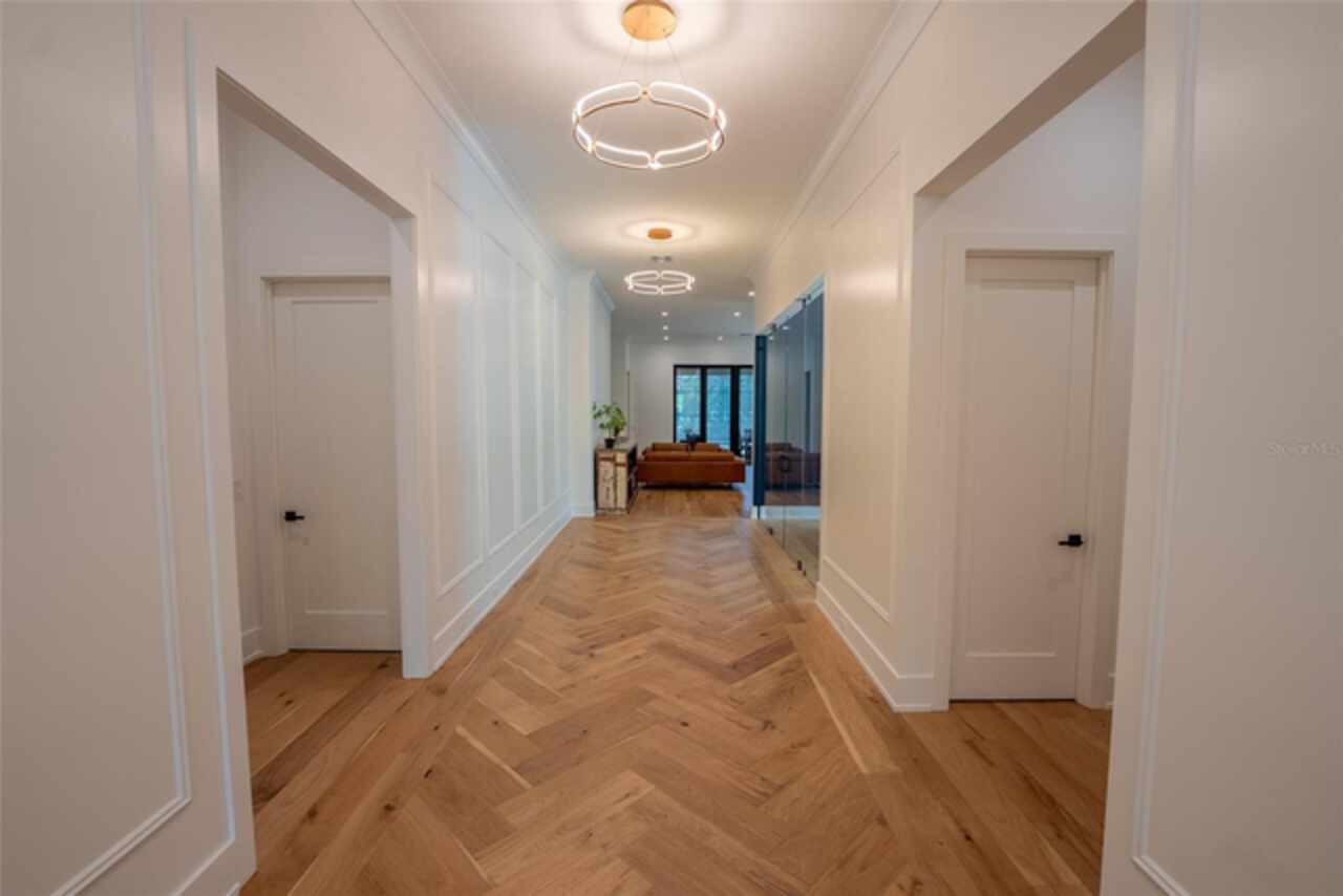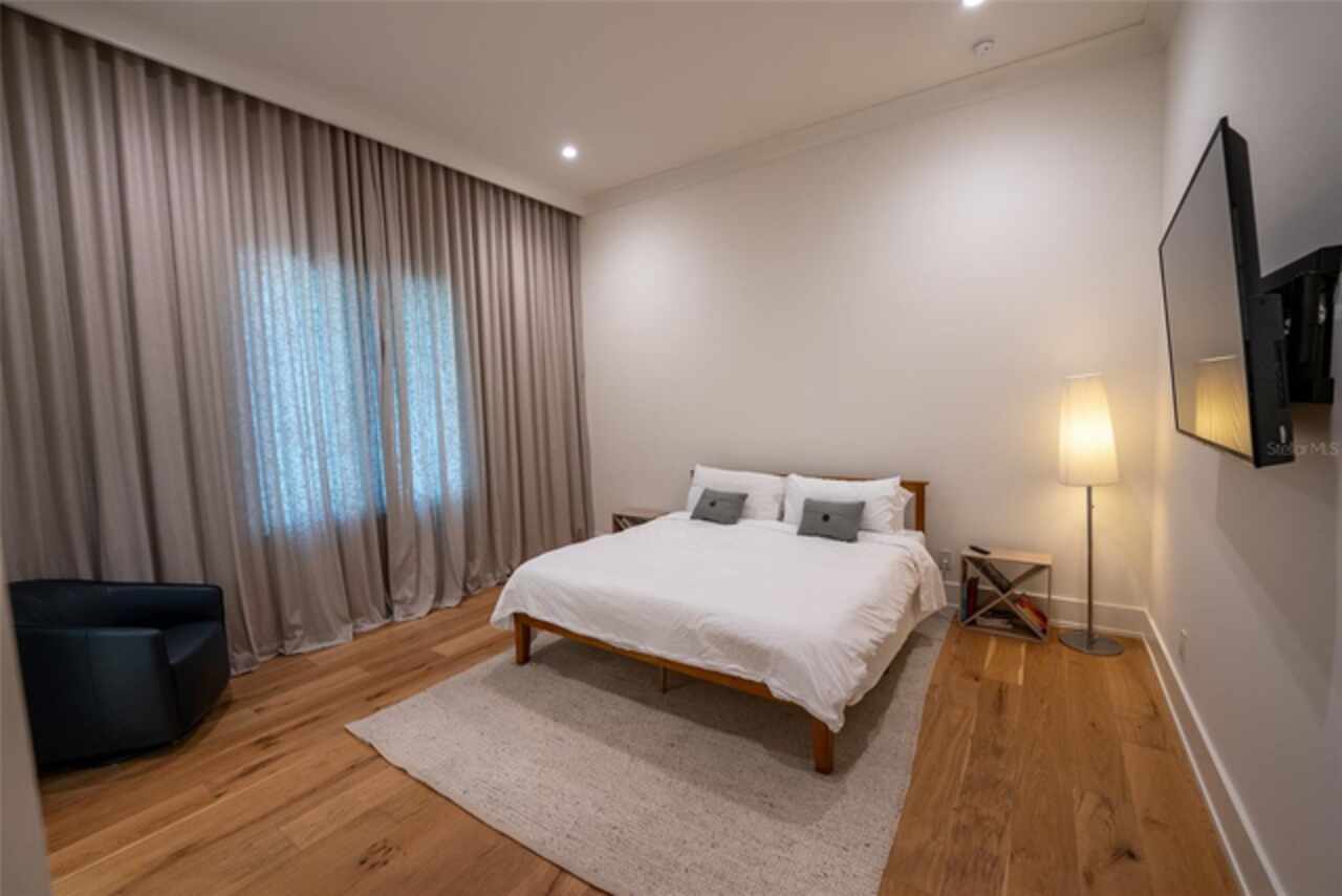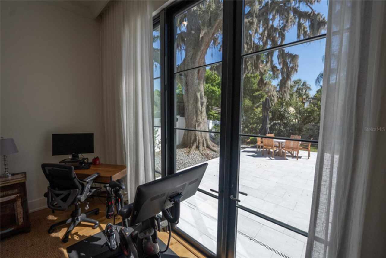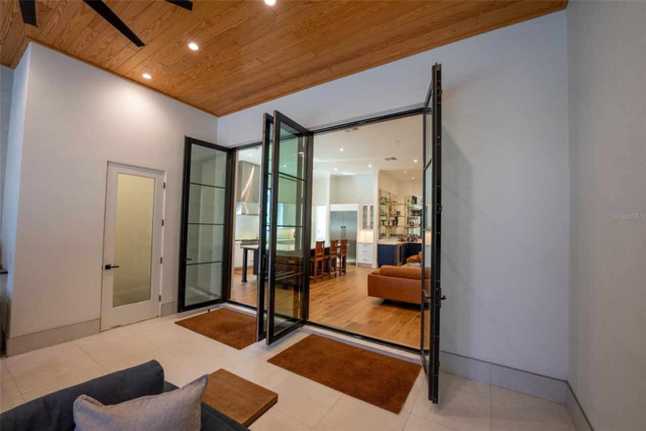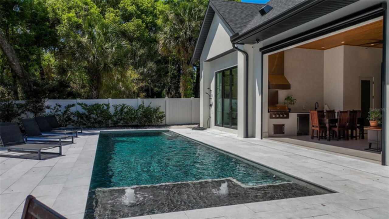 This Modern, Contemporary single-story home, built by FG Schaub Custom Homes, is 4, 389 SF under air plus a 434 SF transitional room, creating 4823 SF of living space all on one floor. This urban retreat features 5 bedrooms, 5 en suite bathrooms, 2 half bathrooms, a formal dining room, and a 60’ by 9’ Gallery, with 12’ ceilings throughout. The home is custom-designed to fit on the 14, 360 SF lot. It is situated in the Delaney Park neighborhood of Downtown Orlando. Built in 2023, this home has a meticulous design and high-quality fixtures. The 12’ ceilings are an inspiring accompaniment to the Anderson 10’ external double doors throughout the home. Adorned with 5 LED Chandiliers, the Gallery is a centerpiece of the home. The Formal Dining room sits off the Gallery, encased in glass, and the room can hold 12 dinner guests. The Formal Dining room includes a 200-bottle glass-enclosed wine wall. Through the Formal Dining room, you will find 10’ glass doors leading to the dining lanai featuring the custom-built stone firepit. The Brass and Glass Bar stands at the end of the Gallery. The centerpiece of your entertaining. The Chef’s Kitchen provides the space and equipment to indulge your culinary dreams. The island seats 8, allowing the entire family to enjoy the chef’s display. Thermador appliances include a 48” range top with flat grill, a combined 48” double column refrigerator freezer, and a wall oven and microwave. The Butlers Pantry is adjacent to the walk-in Pantry and Formal Dining room. The Great Room provides living space adjacent to both the bar, the chef’s kitchen, and the transitional room. The Great Room’s brick-accented main wall provides an ideal focal point for enjoying entertainment. Two sets of 10’ double doors lead from the Great Room to the Transitional Room. The Transitional Room houses the Summer Kitchen and Pool Bath. The Transitional Room provides a resort living, as an automated screen separates the room from the expansive pool deck. The Primary Suite sits off the Great Room and has direct access to the pool deck through 10’ double doors, which are draped with 12’ ceiling-mounted custom shear drapes. The sizable Primary suite allows room for a desk, bookcase, seating area, and exercise equipment, in addition to a king-size bed. The Primary Bathroom offers a large space including 72” freestanding tub, 7’ shower w/ 4’ wide bench, and single vanities. The Primary Bathroom leads to the Primary Dressing Room with built-in closet fixtures, which provide ample wardrobe space. Opposite the Primary Suite, we have the Guest Suite, which is only accessible from the pool deck, providing an in-law suite effect. The Guest Suite has 10’ double doors providing direct access to the pool deck. The Guest Suite Bathroom provides a roll-in shower to accommodate family members of all ages. Two bedrooms sit off the Gallery and are situated in the center of the house, away from both the Primary and Guest Suites. One Bedroom as a shower with floor-to-ceiling tile, while the other has a bathtub shower combo to accommodate anyone's needs. The home office sits at the front of the home and can double as a 5th bedroom. The Pool Deck measures approximately 1600 SF with a sumptuous 38’ X 12’ (450 SF) heated swimming pool. Mature landscape adorns the perimeter of the backyard, providing a true urban oasis feel. No HOA.