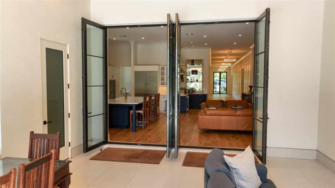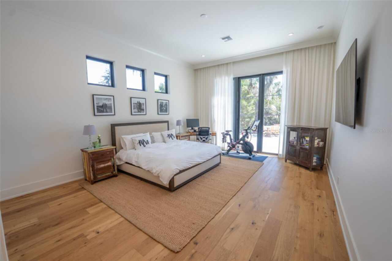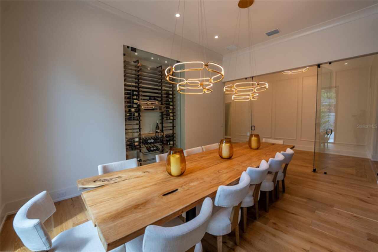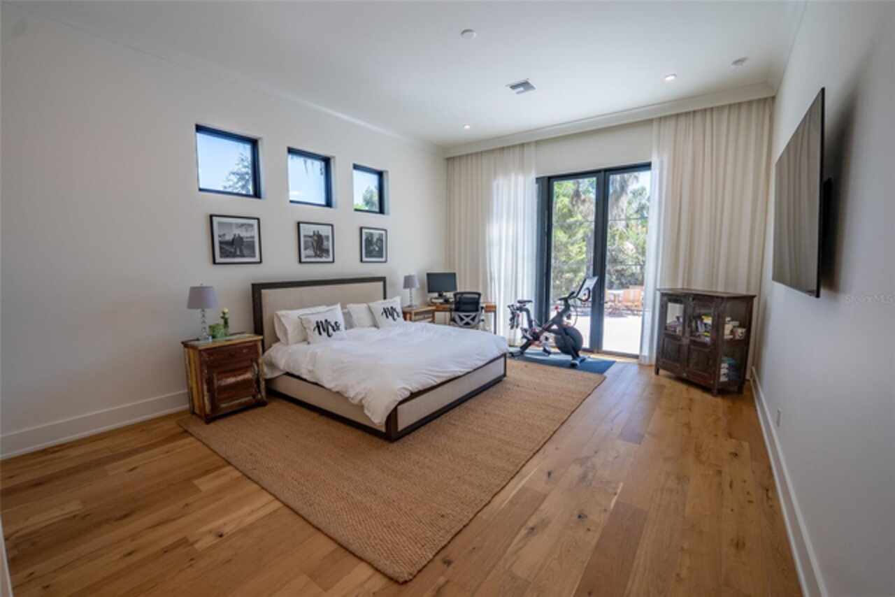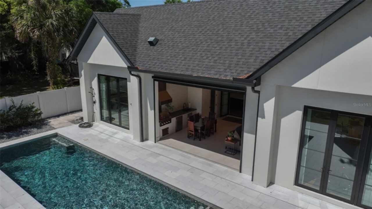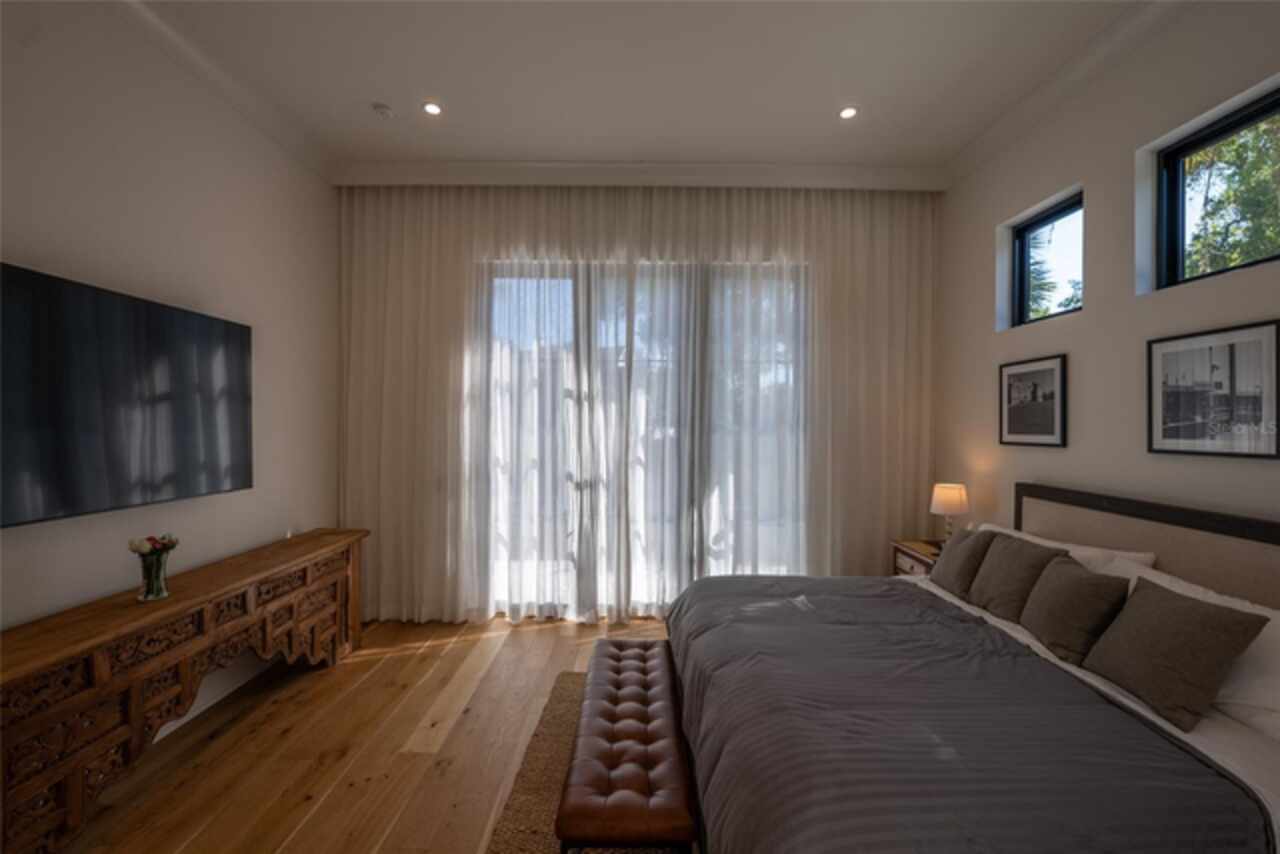 This Modern, Contemporary single-story home, built by FG Schaub Custom Homes, is 4, 389 SF under air plus a 434 SF transitional room, creating 4823 SF of living space all on one floor. This urban retreat features 5 bedrooms, 5 en suite bathrooms, 2 half bathrooms, a formal dining room, and a 60’ by 9’ Gallery, with 12’ ceilings throughout. The home is custom-designed to fit on the 14, 360 SF lot. It is situated in the Delaney Park neighborhood of Downtown Orlando. Built in 2023, this home has a meticulous design and high-quality fixtures. The 12’ ceilings are an inspiring accompaniment to the Anderson 10’ external double doors throughout the home. Adorned with 5 LED Chandiliers, the Gallery is a centerpiece of the home. The Formal Dining room sits off the Gallery, encased in glass, and the room can hold 12 dinner guests. The Formal Dining room includes a 200-bottle glass-enclosed wine wall. Through the Formal Dining room, you will find 10’ glass doors leading to the dining lanai featuring the custom-built stone firepit. The Brass and Glass Bar stands at the end of the Gallery. The centerpiece of your entertaining. The Chef’s Kitchen provides the space and equipment to indulge your culinary dreams. The island seats 8, allowing the entire family to enjoy the chef’s display. Thermador appliances include a 48” range top with flat grill, a combined 48” double column refrigerator freezer, and a wall oven and microwave. The Butlers Pantry is adjacent to the walk-in Pantry and Formal Dining room. The Great Room provides living space adjacent to both the bar, the chef’s kitchen, and the transitional room. The Great Room’s brick-accented main wall provides an ideal focal point for enjoying entertainment. Two sets of 10’ double doors lead from the Great Room to the Transitional Room. The Transitional Room houses the Summer Kitchen and Pool Bath. The Transitional Room provides a resort living, as an automated screen separates the room from the expansive pool deck. The Primary Suite sits off the Great Room and has direct access to the pool deck through 10’ double doors, which are draped with 12’ ceiling-mounted custom shear drapes. The sizable Primary suite allows room for a desk, bookcase, seating area, and exercise equipment, in addition to a king-size bed. The Primary Bathroom offers a large space including 72” freestanding tub, 7’ shower w/ 4’ wide bench, and single vanities. The Primary Bathroom leads to the Primary Dressing Room with built-in closet fixtures, which provide ample wardrobe space. Opposite the Primary Suite, we have the Guest Suite, which is only accessible from the pool deck, providing an in-law suite effect. The Guest Suite has 10’ double doors providing direct access to the pool deck. The Guest Suite Bathroom provides a roll-in shower to accommodate family members of all ages. Two bedrooms sit off the Gallery and are situated in the center of the house, away from both the Primary and Guest Suites. One Bedroom as a shower with floor-to-ceiling tile, while the other has a bathtub shower combo to accommodate anyone's needs. The home office sits at the front of the home and can double as a 5th bedroom. The Pool Deck measures approximately 1600 SF with a sumptuous 38’ X 12’ (450 SF) heated swimming pool. Mature landscape adorns the perimeter of the backyard, providing a true urban oasis feel. No HOA.