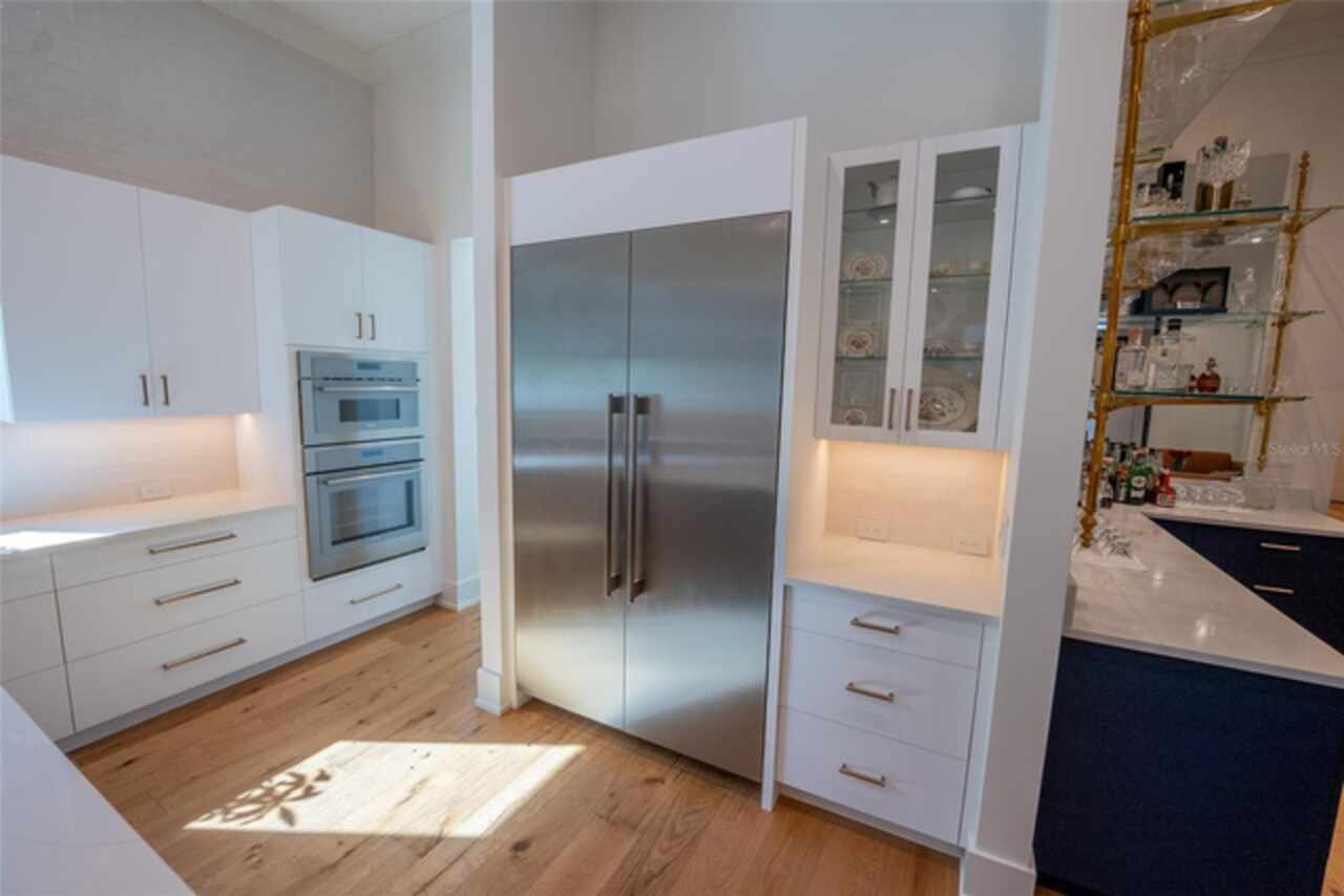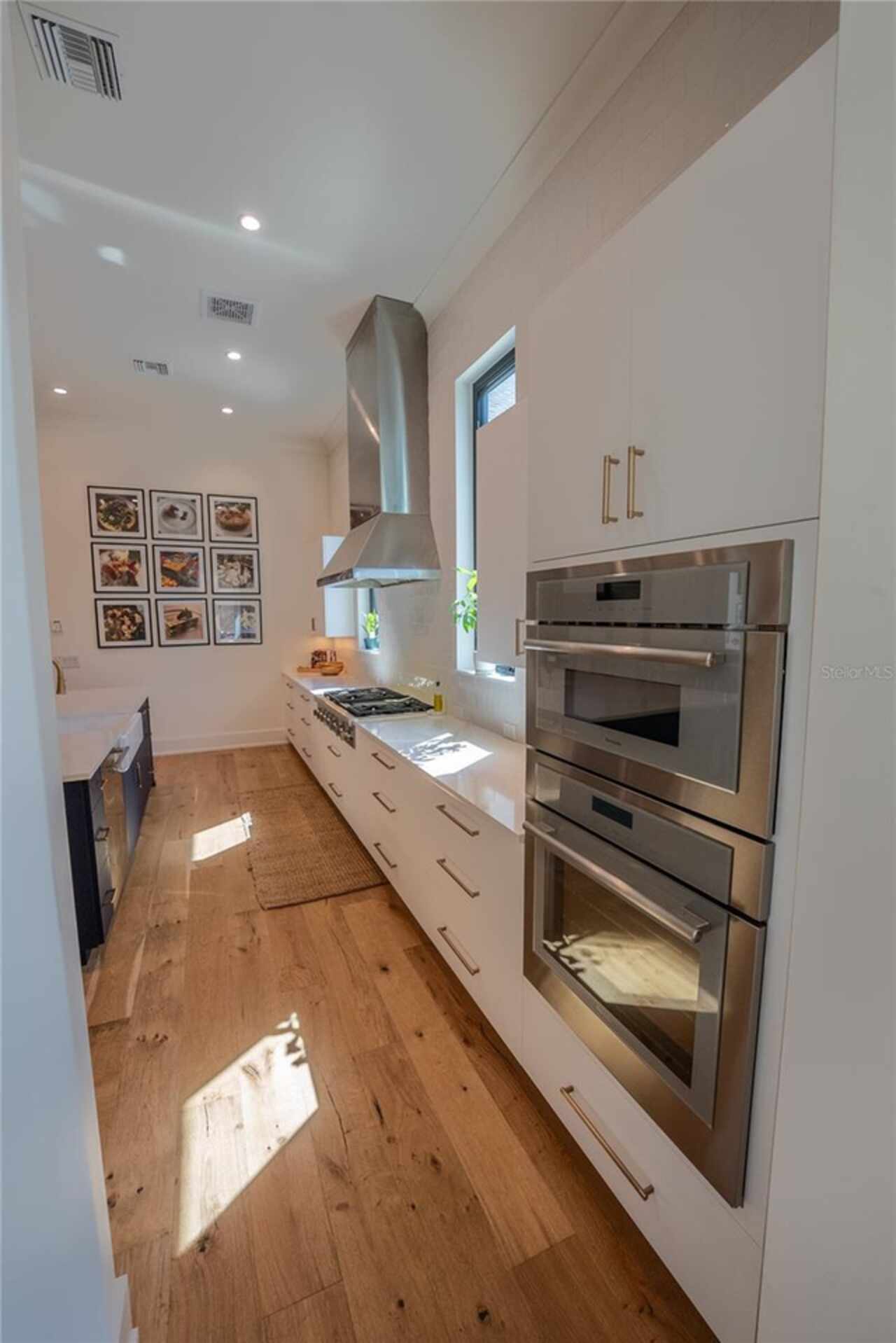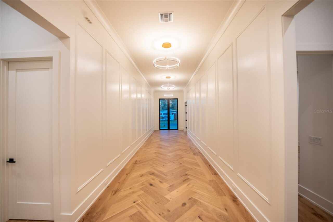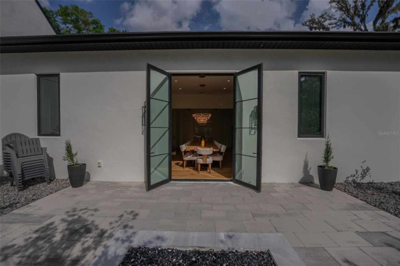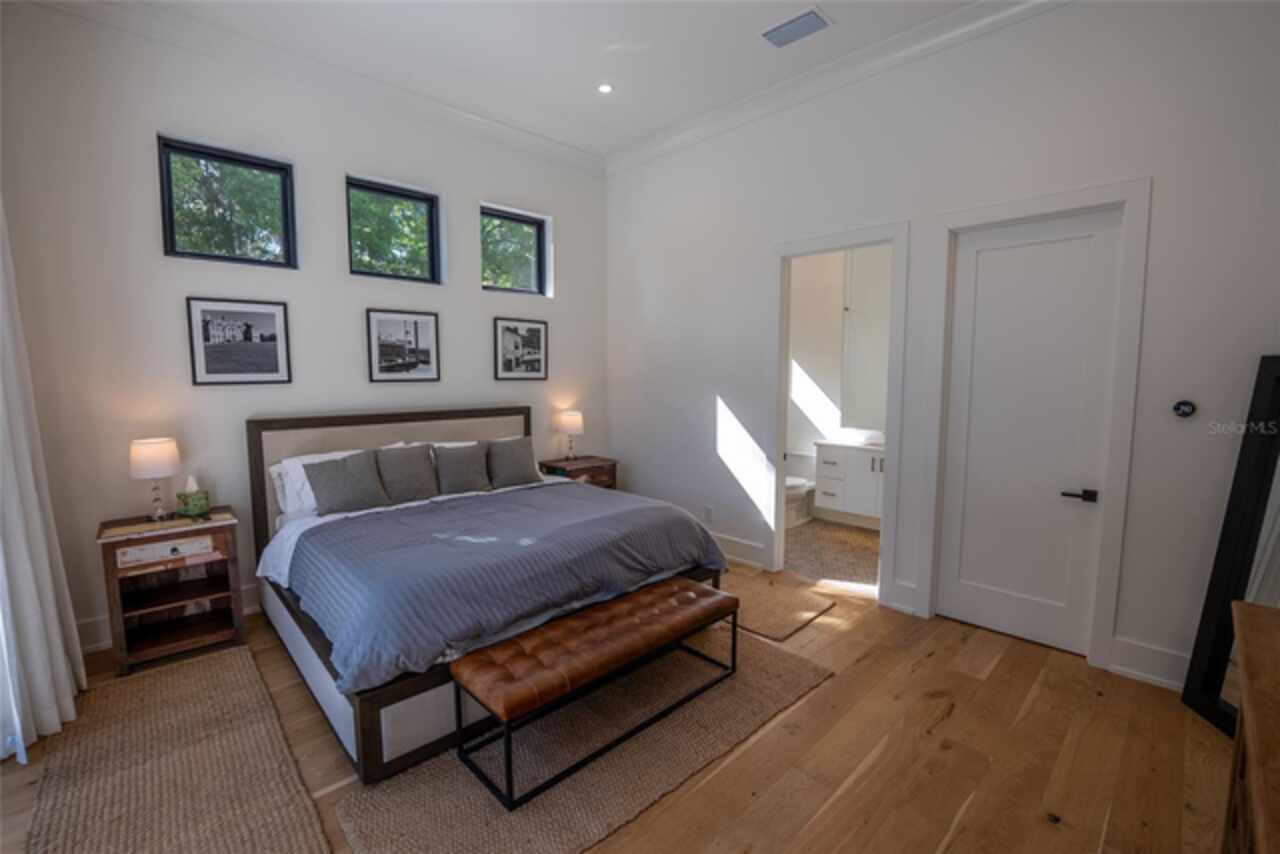 This Modern, Contemporary single-story home, built by FG Schaub Custom Homes, is 4, 389 SF under air plus a 434 SF transitional room, creating 4823 SF of living space all on one floor. This urban retreat features 5 bedrooms, 5 en suite bathrooms, 2 half bathrooms, a formal dining room, and a 60’ by 9’ Gallery, with 12’ ceilings throughout. The home is custom-designed to fit on the 14, 360 SF lot. It is situated in the Delaney Park neighborhood of Downtown Orlando. Built in 2023, this home has a meticulous design and high-quality fixtures. The 12’ ceilings are an inspiring accompaniment to the Anderson 10’ external double doors throughout the home. Adorned with 5 LED Chandiliers, the Gallery is a centerpiece of the home. The Formal Dining room sits off the Gallery, encased in glass, and the room can hold 12 dinner guests. The Formal Dining room includes a 200-bottle glass-enclosed wine wall. Through the Formal Dining room, you will find 10’ glass doors leading to the dining lanai featuring the custom-built stone firepit. The Brass and Glass Bar stands at the end of the Gallery. The centerpiece of your entertaining. The Chef’s Kitchen provides the space and equipment to indulge your culinary dreams. The island seats 8, allowing the entire family to enjoy the chef’s display. Thermador appliances include a 48” range top with flat grill, a combined 48” double column refrigerator freezer, and a wall oven and microwave. The Butlers Pantry is adjacent to the walk-in Pantry and Formal Dining room. The Great Room provides living space adjacent to both the bar, the chef’s kitchen, and the transitional room. The Great Room’s brick-accented main wall provides an ideal focal point for enjoying entertainment. Two sets of 10’ double doors lead from the Great Room to the Transitional Room. The Transitional Room houses the Summer Kitchen and Pool Bath. The Transitional Room provides a resort living, as an automated screen separates the room from the expansive pool deck. The Primary Suite sits off the Great Room and has direct access to the pool deck through 10’ double doors, which are draped with 12’ ceiling-mounted custom shear drapes. The sizable Primary suite allows room for a desk, bookcase, seating area, and exercise equipment, in addition to a king-size bed. The Primary Bathroom offers a large space including 72” freestanding tub, 7’ shower w/ 4’ wide bench, and single vanities. The Primary Bathroom leads to the Primary Dressing Room with built-in closet fixtures, which provide ample wardrobe space. Opposite the Primary Suite, we have the Guest Suite, which is only accessible from the pool deck, providing an in-law suite effect. The Guest Suite has 10’ double doors providing direct access to the pool deck. The Guest Suite Bathroom provides a roll-in shower to accommodate family members of all ages. Two bedrooms sit off the Gallery and are situated in the center of the house, away from both the Primary and Guest Suites. One Bedroom as a shower with floor-to-ceiling tile, while the other has a bathtub shower combo to accommodate anyone's needs. The home office sits at the front of the home and can double as a 5th bedroom. The Pool Deck measures approximately 1600 SF with a sumptuous 38’ X 12’ (450 SF) heated swimming pool. Mature landscape adorns the perimeter of the backyard, providing a true urban oasis feel. No HOA.