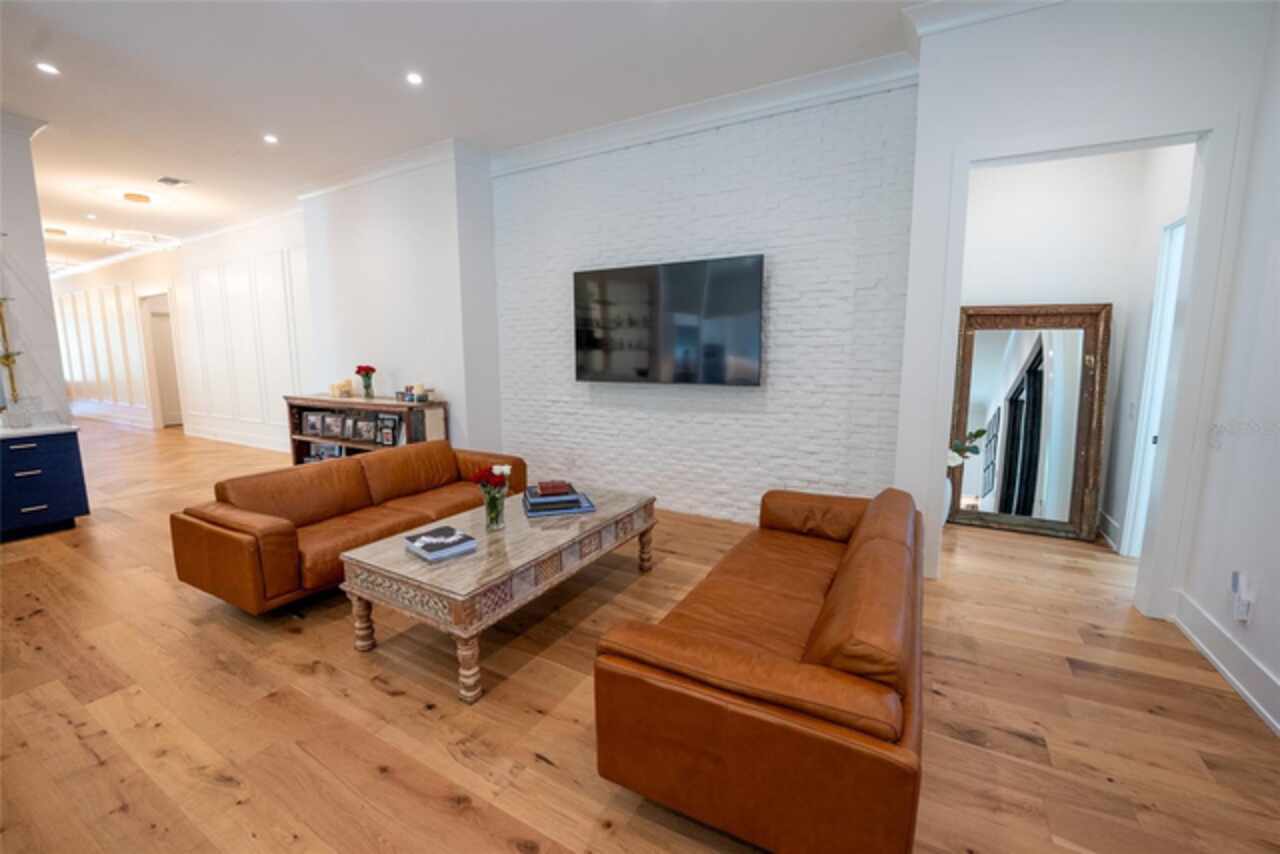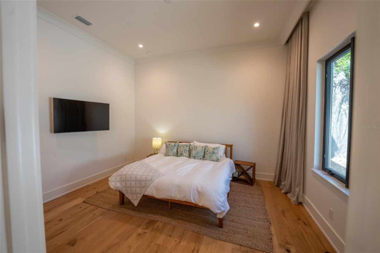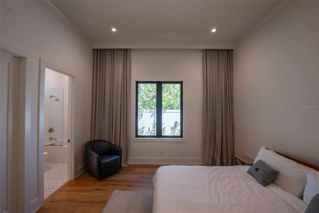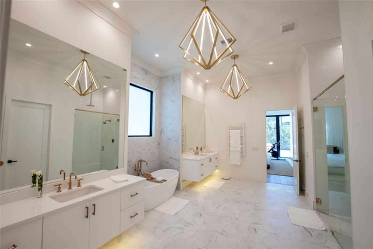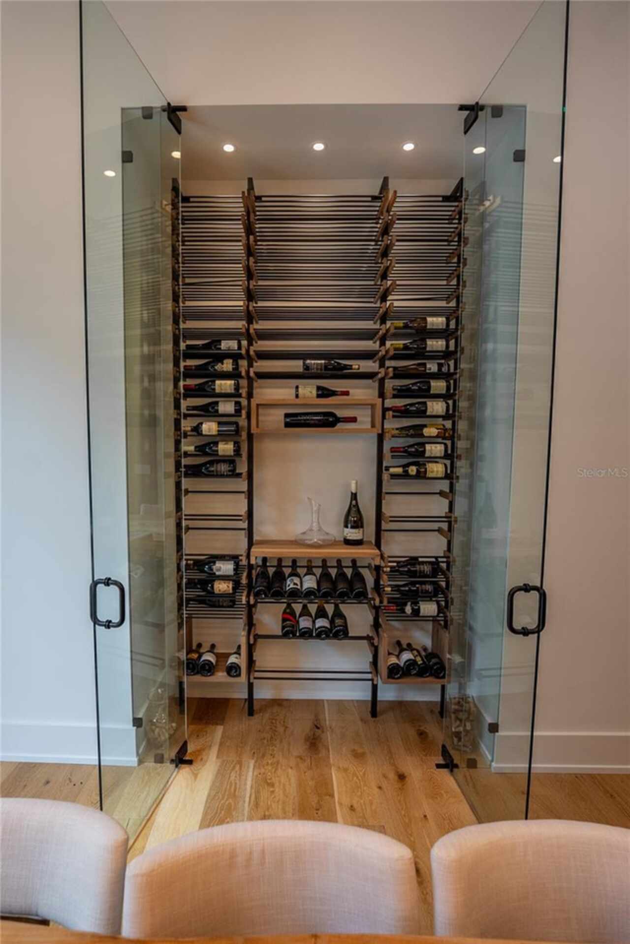 This Modern, Contemporary single-story home, built by FG Schaub Custom Homes, is 4, 389 SF under air plus a 434 SF transitional room, creating 4823 SF of living space all on one floor. This urban retreat features 5 bedrooms, 5 en suite bathrooms, 2 half bathrooms, a formal dining room, and a 60’ by 9’ Gallery, with 12’ ceilings throughout. The home is custom-designed to fit on the 14, 360 SF lot. It is situated in the Delaney Park neighborhood of Downtown Orlando. Built in 2023, this home has a meticulous design and high-quality fixtures. The 12’ ceilings are an inspiring accompaniment to the Anderson 10’ external double doors throughout the home. Adorned with 5 LED Chandiliers, the Gallery is a centerpiece of the home. The Formal Dining room sits off the Gallery, encased in glass, and the room can hold 12 dinner guests. The Formal Dining room includes a 200-bottle glass-enclosed wine wall. Through the Formal Dining room, you will find 10’ glass doors leading to the dining lanai featuring the custom-built stone firepit. The Brass and Glass Bar stands at the end of the Gallery. The centerpiece of your entertaining. The Chef’s Kitchen provides the space and equipment to indulge your culinary dreams. The island seats 8, allowing the entire family to enjoy the chef’s display. Thermador appliances include a 48” range top with flat grill, a combined 48” double column refrigerator freezer, and a wall oven and microwave. The Butlers Pantry is adjacent to the walk-in Pantry and Formal Dining room. The Great Room provides living space adjacent to both the bar, the chef’s kitchen, and the transitional room. The Great Room’s brick-accented main wall provides an ideal focal point for enjoying entertainment. Two sets of 10’ double doors lead from the Great Room to the Transitional Room. The Transitional Room houses the Summer Kitchen and Pool Bath. The Transitional Room provides a resort living, as an automated screen separates the room from the expansive pool deck. The Primary Suite sits off the Great Room and has direct access to the pool deck through 10’ double doors, which are draped with 12’ ceiling-mounted custom shear drapes. The sizable Primary suite allows room for a desk, bookcase, seating area, and exercise equipment, in addition to a king-size bed. The Primary Bathroom offers a large space including 72” freestanding tub, 7’ shower w/ 4’ wide bench, and single vanities. The Primary Bathroom leads to the Primary Dressing Room with built-in closet fixtures, which provide ample wardrobe space. Opposite the Primary Suite, we have the Guest Suite, which is only accessible from the pool deck, providing an in-law suite effect. The Guest Suite has 10’ double doors providing direct access to the pool deck. The Guest Suite Bathroom provides a roll-in shower to accommodate family members of all ages. Two bedrooms sit off the Gallery and are situated in the center of the house, away from both the Primary and Guest Suites. One Bedroom as a shower with floor-to-ceiling tile, while the other has a bathtub shower combo to accommodate anyone's needs. The home office sits at the front of the home and can double as a 5th bedroom. The Pool Deck measures approximately 1600 SF with a sumptuous 38’ X 12’ (450 SF) heated swimming pool. Mature landscape adorns the perimeter of the backyard, providing a true urban oasis feel. No HOA.