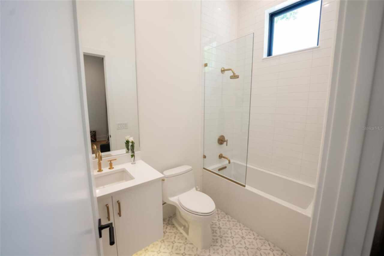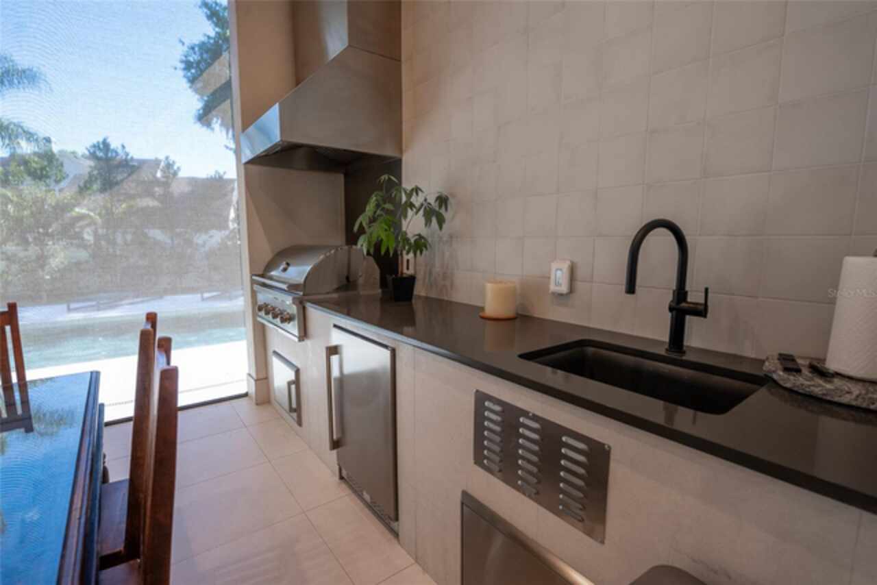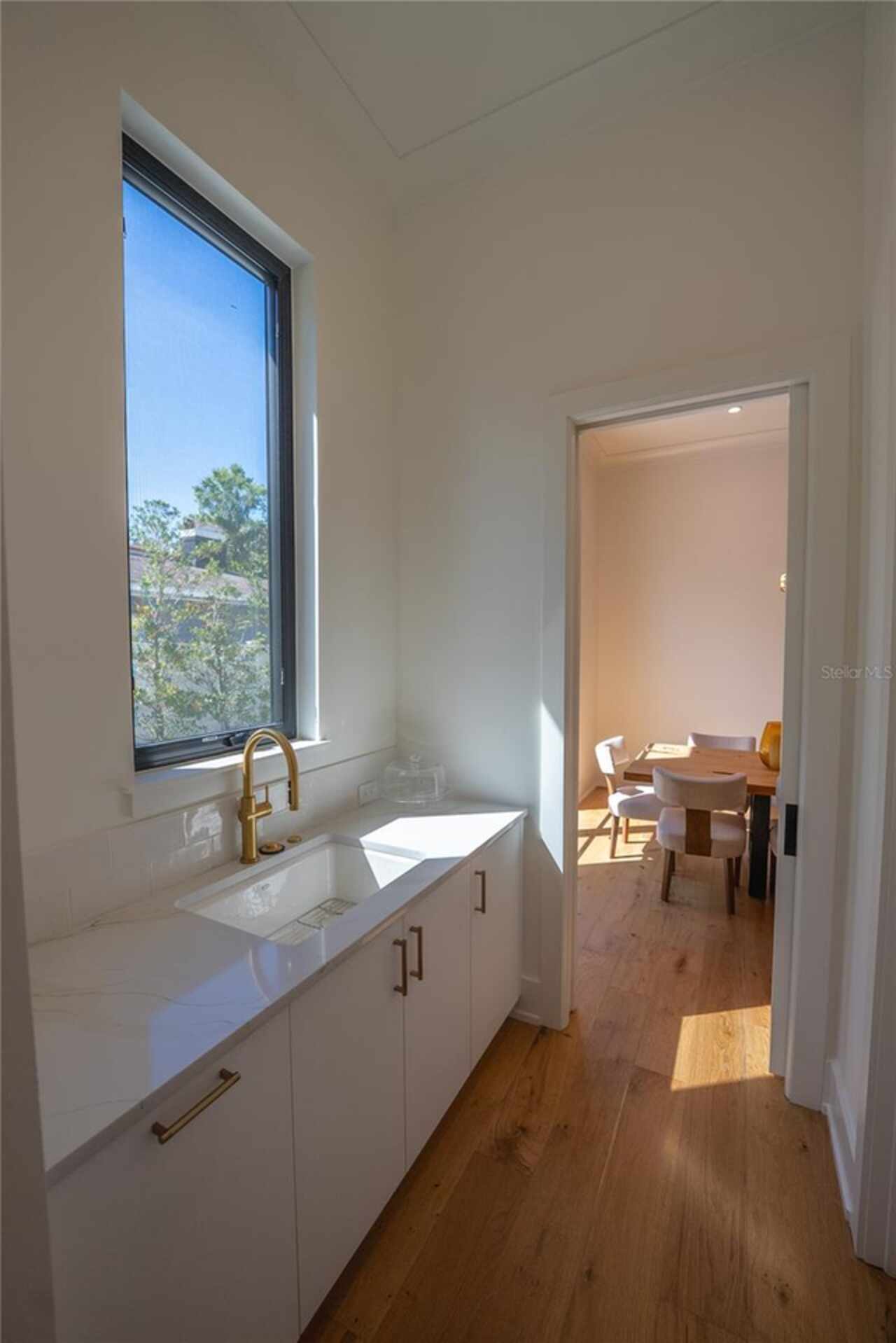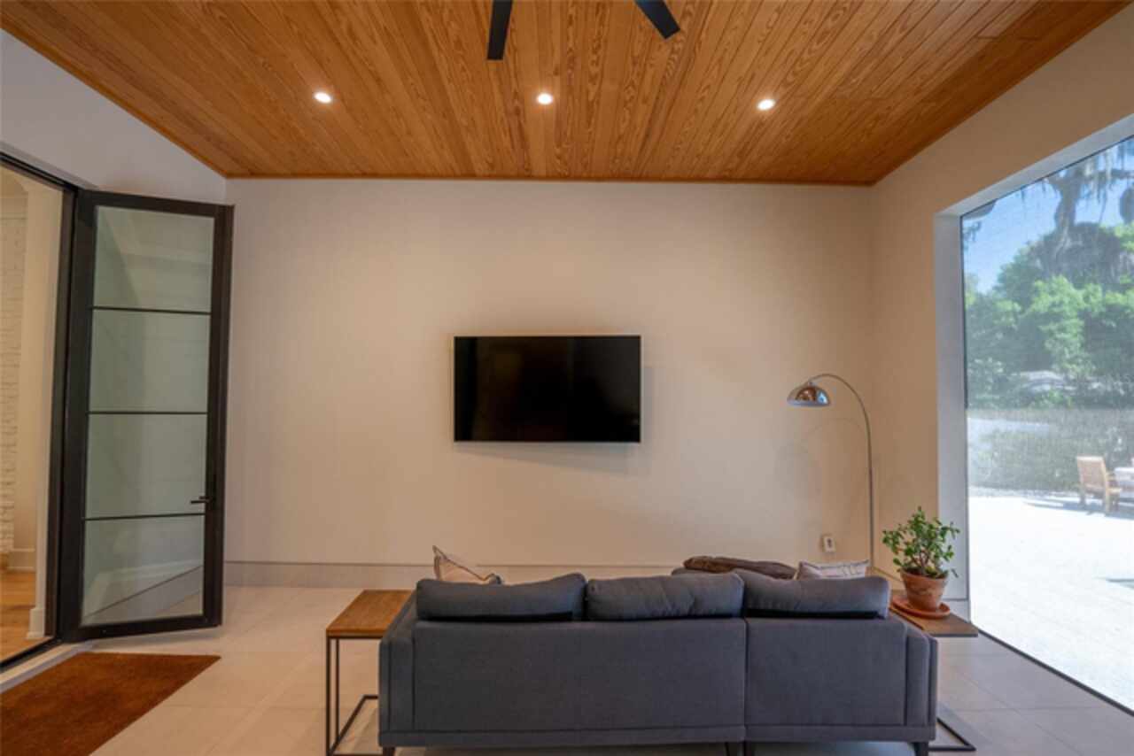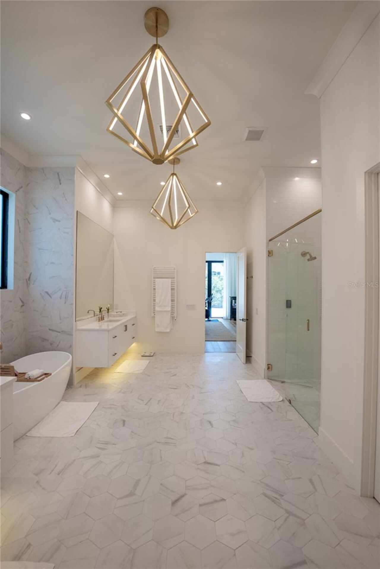 This Modern, Contemporary single-story home, built by FG Schaub Custom Homes, is 4, 389 SF under air plus a 434 SF transitional room, creating 4823 SF of living space all on one floor. This urban retreat features 5 bedrooms, 5 en suite bathrooms, 2 half bathrooms, a formal dining room, and a 60’ by 9’ Gallery, with 12’ ceilings throughout. The home is custom-designed to fit on the 14, 360 SF lot. It is situated in the Delaney Park neighborhood of Downtown Orlando. Built in 2023, this home has a meticulous design and high-quality fixtures. The 12’ ceilings are an inspiring accompaniment to the Anderson 10’ external double doors throughout the home. Adorned with 5 LED Chandiliers, the Gallery is a centerpiece of the home. The Formal Dining room sits off the Gallery, encased in glass, and the room can hold 12 dinner guests. The Formal Dining room includes a 200-bottle glass-enclosed wine wall. Through the Formal Dining room, you will find 10’ glass doors leading to the dining lanai featuring the custom-built stone firepit. The Brass and Glass Bar stands at the end of the Gallery. The centerpiece of your entertaining. The Chef’s Kitchen provides the space and equipment to indulge your culinary dreams. The island seats 8, allowing the entire family to enjoy the chef’s display. Thermador appliances include a 48” range top with flat grill, a combined 48” double column refrigerator freezer, and a wall oven and microwave. The Butlers Pantry is adjacent to the walk-in Pantry and Formal Dining room. The Great Room provides living space adjacent to both the bar, the chef’s kitchen, and the transitional room. The Great Room’s brick-accented main wall provides an ideal focal point for enjoying entertainment. Two sets of 10’ double doors lead from the Great Room to the Transitional Room. The Transitional Room houses the Summer Kitchen and Pool Bath. The Transitional Room provides a resort living, as an automated screen separates the room from the expansive pool deck. The Primary Suite sits off the Great Room and has direct access to the pool deck through 10’ double doors, which are draped with 12’ ceiling-mounted custom shear drapes. The sizable Primary suite allows room for a desk, bookcase, seating area, and exercise equipment, in addition to a king-size bed. The Primary Bathroom offers a large space including 72” freestanding tub, 7’ shower w/ 4’ wide bench, and single vanities. The Primary Bathroom leads to the Primary Dressing Room with built-in closet fixtures, which provide ample wardrobe space. Opposite the Primary Suite, we have the Guest Suite, which is only accessible from the pool deck, providing an in-law suite effect. The Guest Suite has 10’ double doors providing direct access to the pool deck. The Guest Suite Bathroom provides a roll-in shower to accommodate family members of all ages. Two bedrooms sit off the Gallery and are situated in the center of the house, away from both the Primary and Guest Suites. One Bedroom as a shower with floor-to-ceiling tile, while the other has a bathtub shower combo to accommodate anyone's needs. The home office sits at the front of the home and can double as a 5th bedroom. The Pool Deck measures approximately 1600 SF with a sumptuous 38’ X 12’ (450 SF) heated swimming pool. Mature landscape adorns the perimeter of the backyard, providing a true urban oasis feel. No HOA.