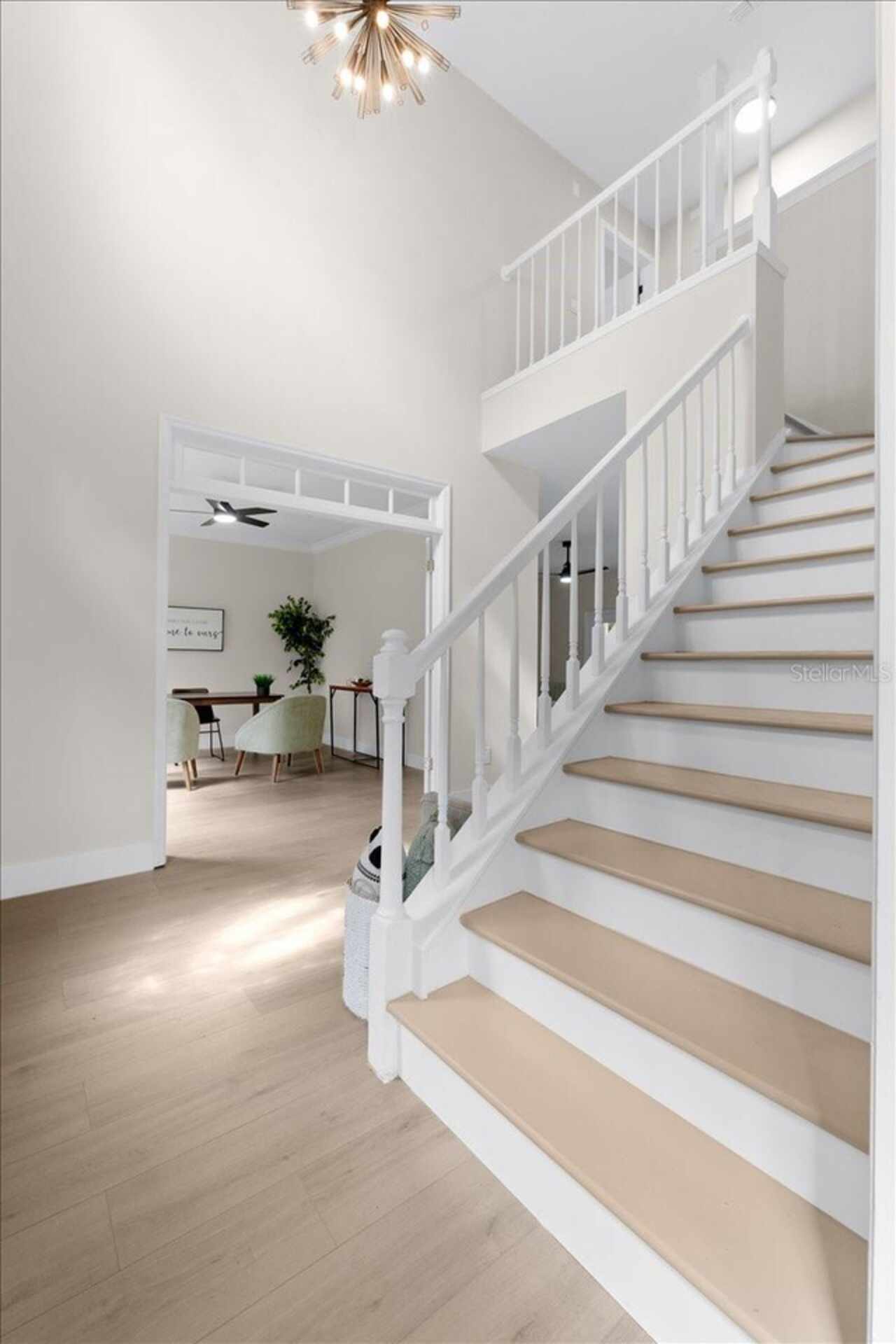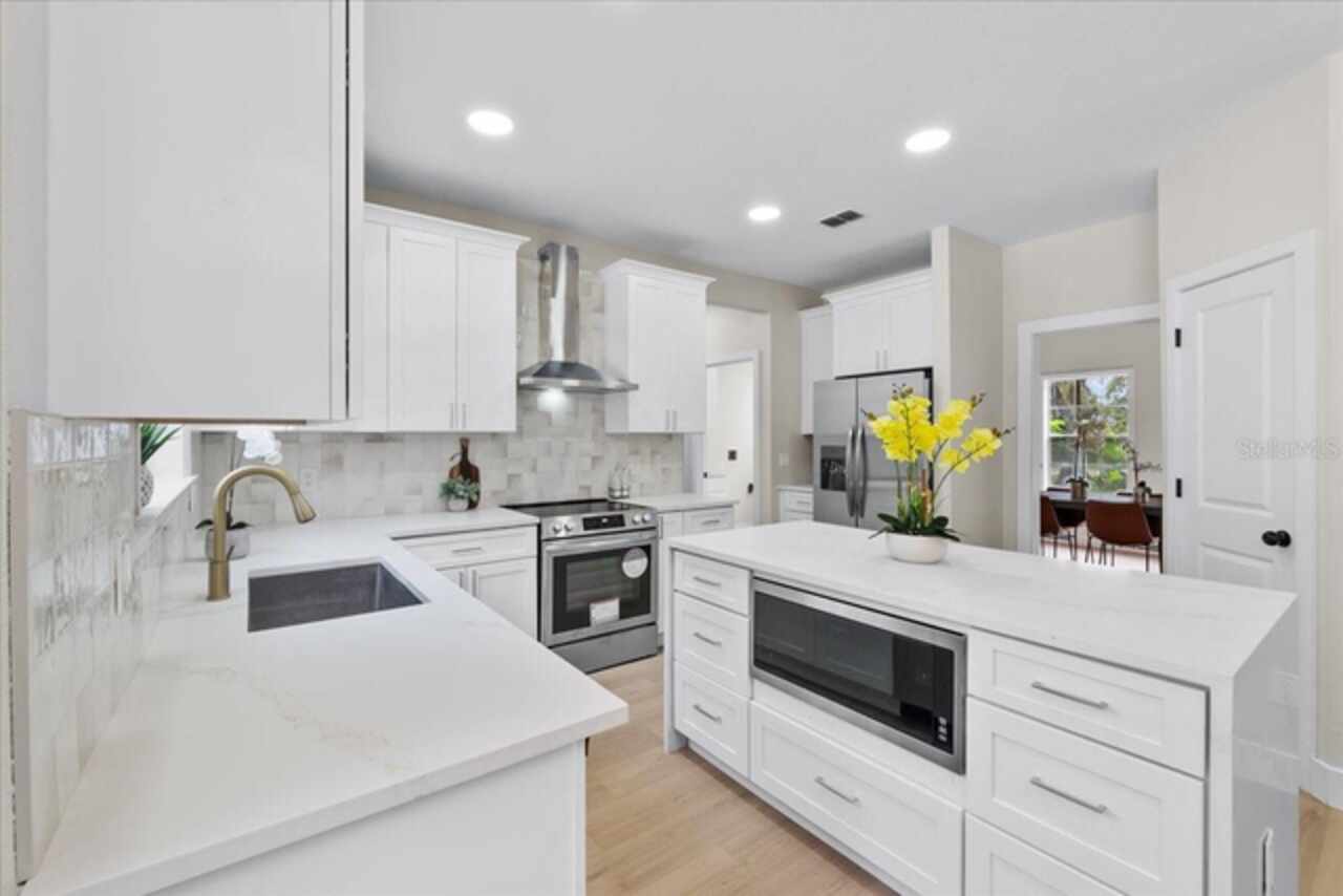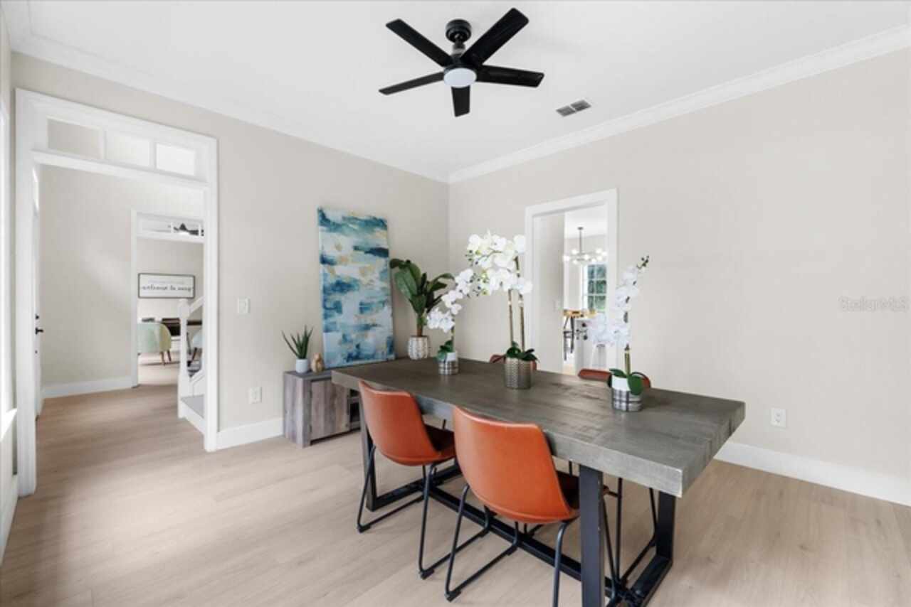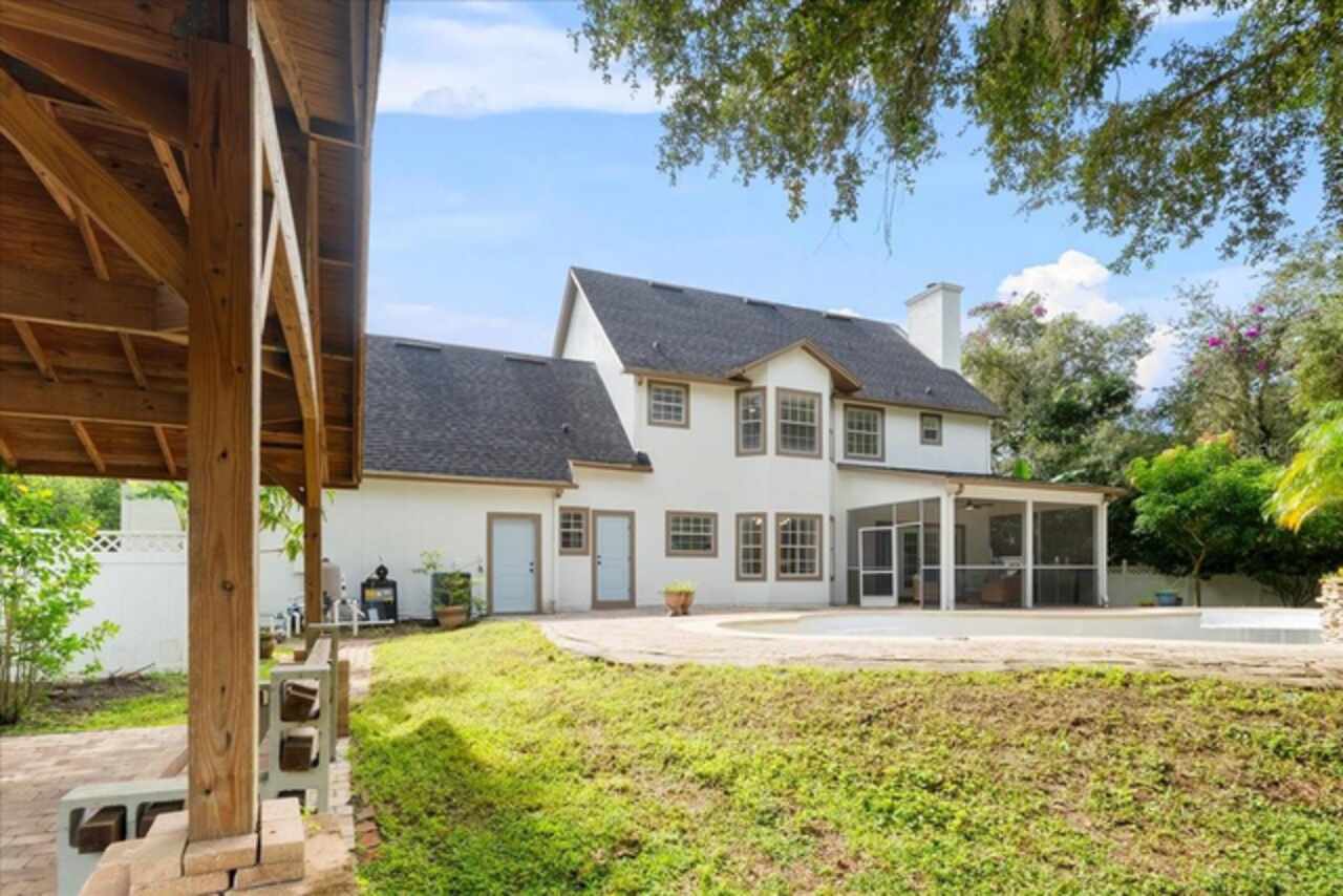 Nestled in the tranquil enclave of Lake Nona, this exquisitely renovated residence stands as a testament to refined living. A symphony of modern elegance greets you at every turn, from the freshly painted exterior adorned with brand-new shutters to the meticulously landscaped grounds that frame this architectural gem. Step inside and be captivated by the luxurious laminate flooring that flows seamlessly throughout, guiding you through a succession of thoughtfully designed spaces. The living room, anchored by a stately fireplace, offers a perfect vantage point to admire the serene patio beyond. For those who appreciate the art of hospitality, the formal dining room provides an ideal setting for culinary soirées. The heart of this home beats in its gourmet kitchen, where a stunning Calcutta waterfall island takes center stage. Soft-close shaker-style cabinets, a decorative backsplash, and gleaming stainless steel appliances create a culinary haven that would make even the most discerning chef swoon. Ascend the newly crafted staircase to discover a bonus room that beckons for creative use, while spacious bedrooms offer sanctuaries of comfort. The primary suite, a veritable spa retreat, boasts a newly appointed bathroom with quartz finishes, custom vanities, and a shower adorned with captivating penny tile and gold fixtures. Outdoor living reaches new heights with a screened porch and sparkling pool, perfect for those balmy Florida evenings. A charming wood pergola adds a touch of whimsy to al fresco dining experiences. This isn't just a house; it's a canvas for your life's masterpiece. Don't let this golden opportunity slip through your fingers – your luxury oasis awaits!