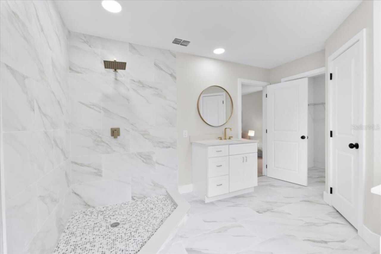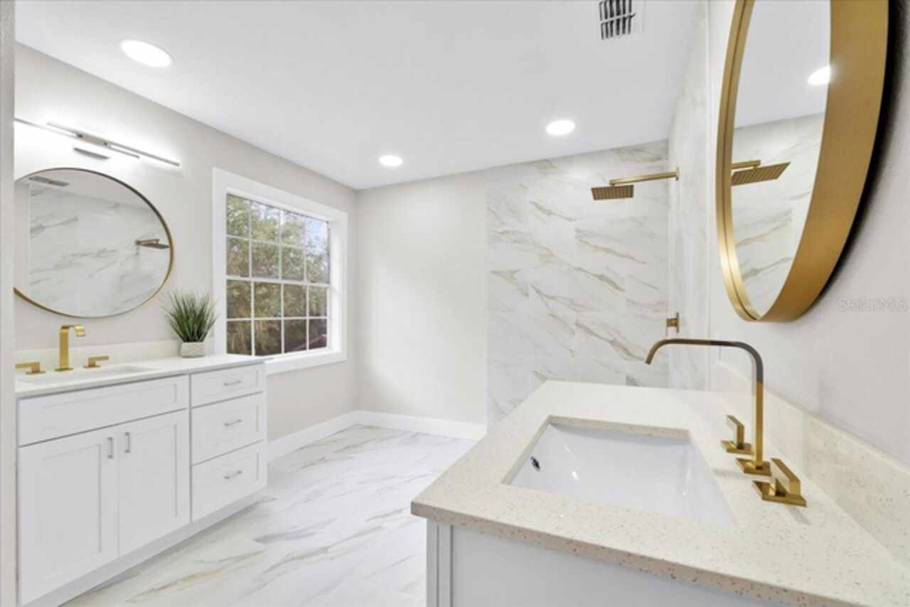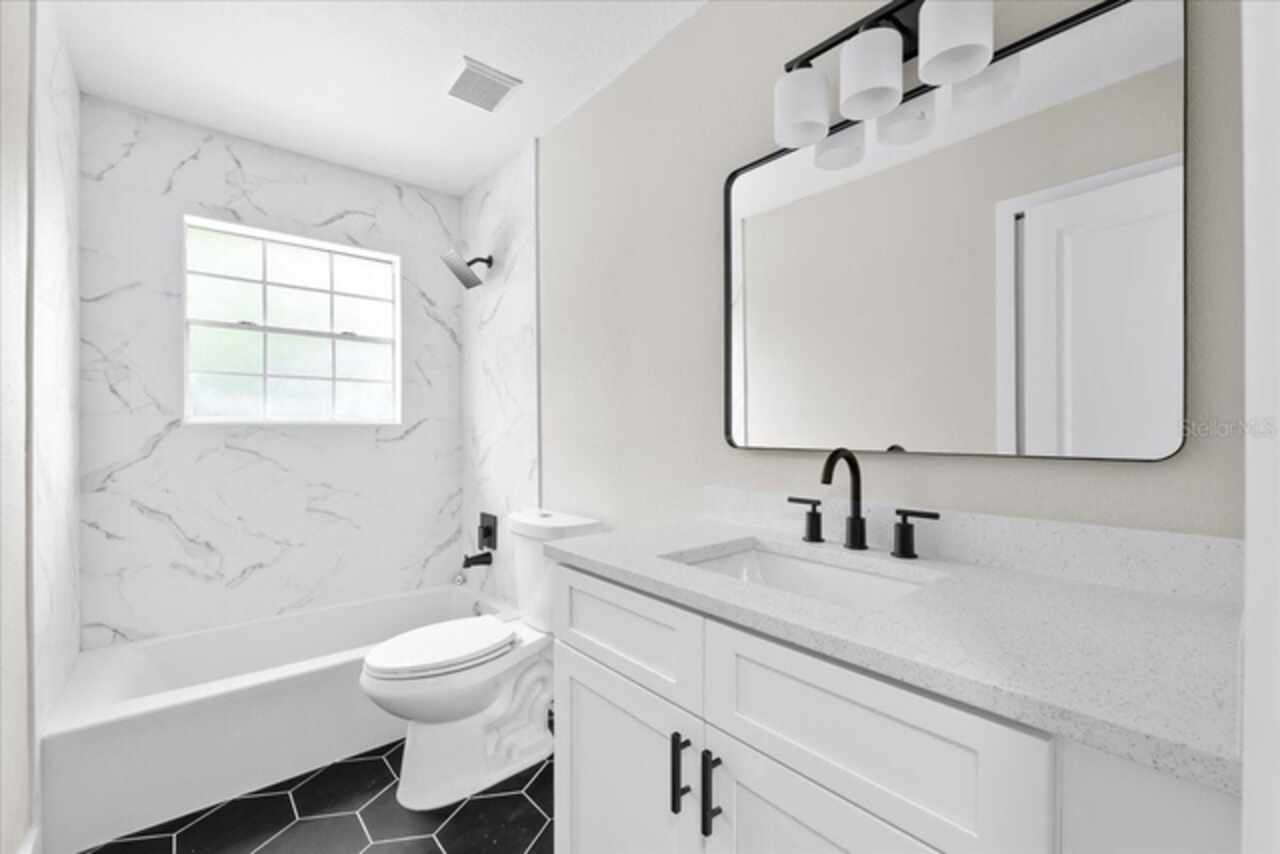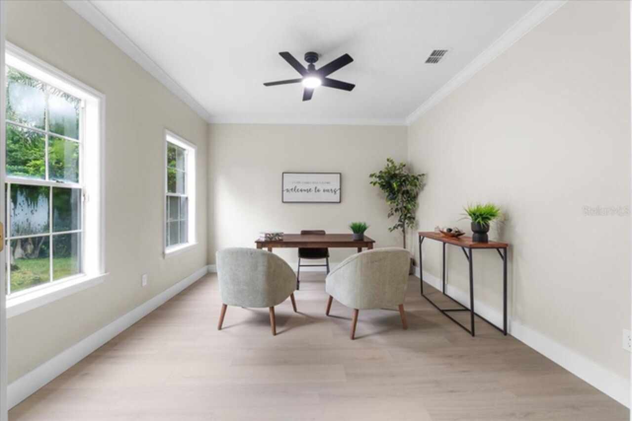 Nestled in the tranquil enclave of Lake Nona, this exquisitely renovated residence stands as a testament to refined living. A symphony of modern elegance greets you at every turn, from the freshly painted exterior adorned with brand-new shutters to the meticulously landscaped grounds that frame this architectural gem. Step inside and be captivated by the luxurious laminate flooring that flows seamlessly throughout, guiding you through a succession of thoughtfully designed spaces. The living room, anchored by a stately fireplace, offers a perfect vantage point to admire the serene patio beyond. For those who appreciate the art of hospitality, the formal dining room provides an ideal setting for culinary soirées. The heart of this home beats in its gourmet kitchen, where a stunning Calcutta waterfall island takes center stage. Soft-close shaker-style cabinets, a decorative backsplash, and gleaming stainless steel appliances create a culinary haven that would make even the most discerning chef swoon. Ascend the newly crafted staircase to discover a bonus room that beckons for creative use, while spacious bedrooms offer sanctuaries of comfort. The primary suite, a veritable spa retreat, boasts a newly appointed bathroom with quartz finishes, custom vanities, and a shower adorned with captivating penny tile and gold fixtures. Outdoor living reaches new heights with a screened porch and sparkling pool, perfect for those balmy Florida evenings. A charming wood pergola adds a touch of whimsy to al fresco dining experiences. This isn't just a house; it's a canvas for your life's masterpiece. Don't let this golden opportunity slip through your fingers – your luxury oasis awaits!