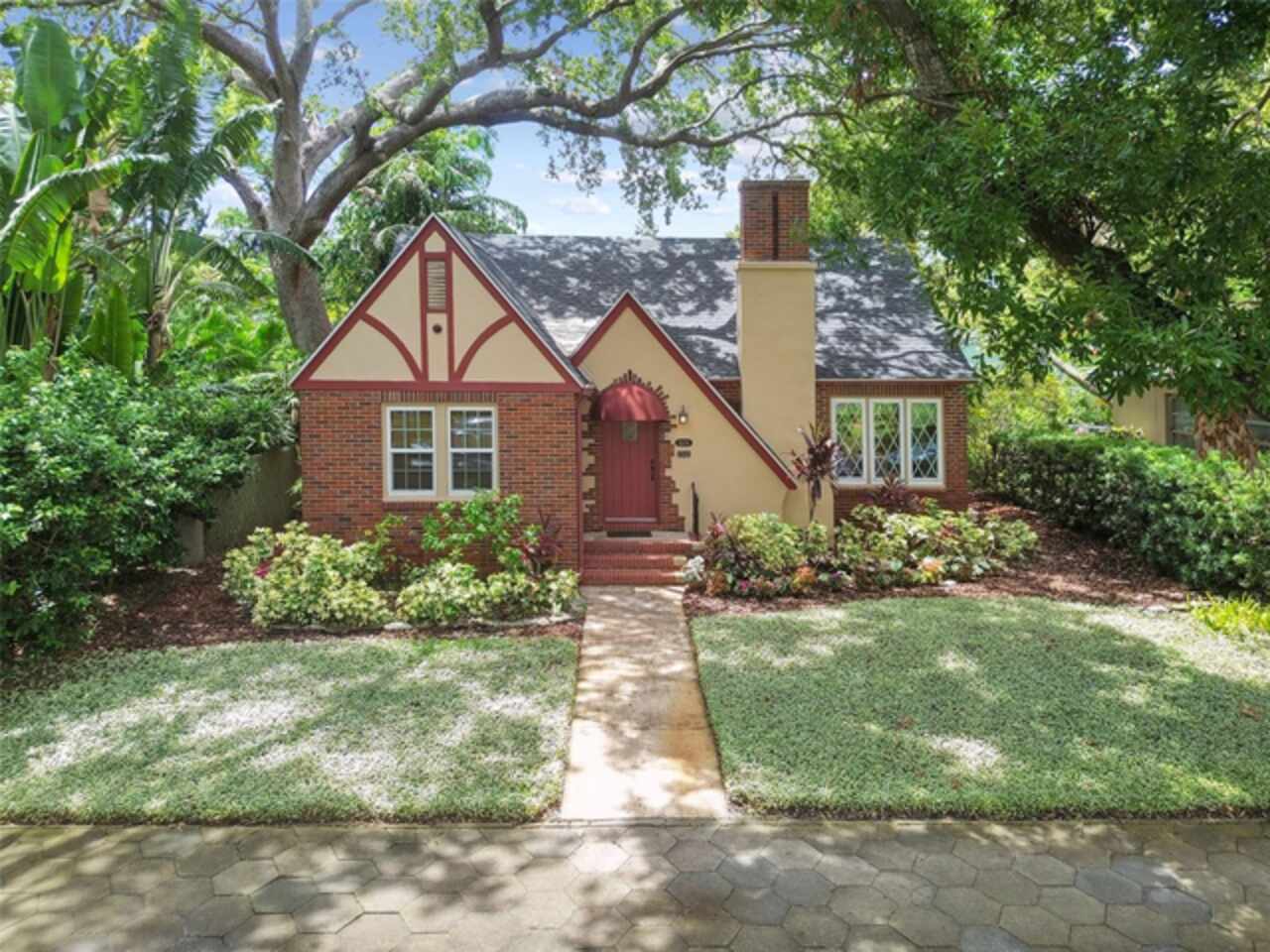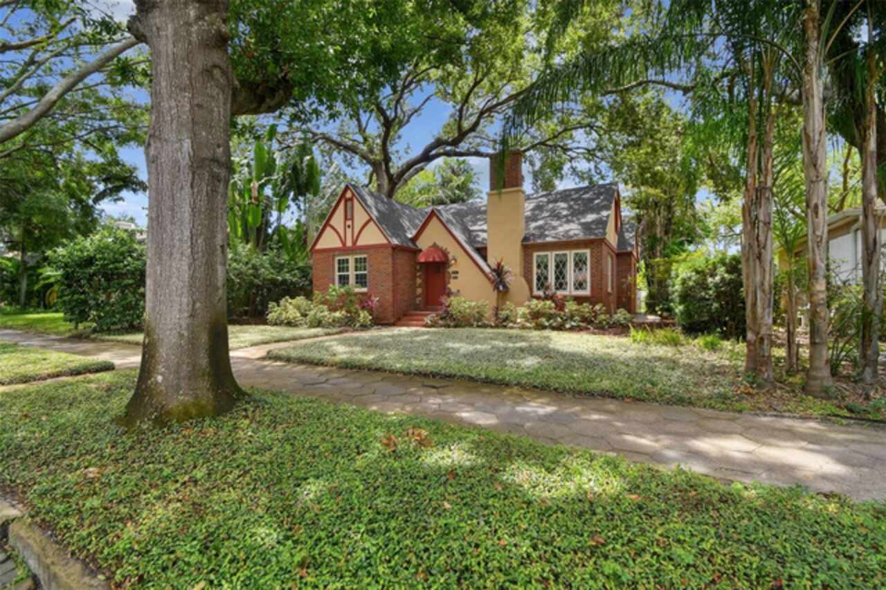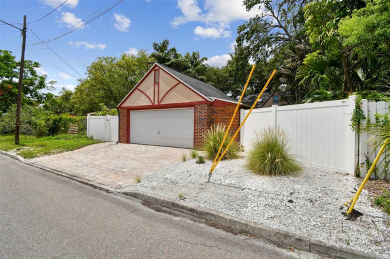Under contract-accepting backup offers. Welcome to this storybook Tudor bungalow in the desirable Euclid neighborhood of St. Petersburg, just minutes from vibrant downtown St. Pete, picturesque Crescent Lake, local shops, popular restaurants, beer gardens and easy interstate access. Among winding brick streets, towering oak canopies, and a beautiful mix of historic charm and tasteful new construction, this home blends timeless character with modern convenience. This three-bedroom, three-bath residence greets you with a spacious living room featuring a cozy fireplace, cove moulding and gleaming oak hardwood floors that flow seamlessly into a formal dining room, ideal or dinner parties and gatherings. The updated kitchen boasts solid wood cabinetry, a new range and thoughtful finishes, making it stylish and functional. Just off the dining room, a sun-kissed Florida room offers the ideal retreat for morning coffee, reading or relaxing, and it opens up to a massive screened and covered outdoor living room. With cathedral ceilings, a gas fireplace and a fully equipped outdoor kitchen, this incredible space invites year-round entertaining in your lush, tropically landscaped backyard. The entire second floor is dedicated to the primary suite, a bright and peaceful sanctuary, complete with a private bath and plenty of room to unwind and recharge. The home also features impact-rated windows throughout, a tankless water heater for energy efficiency, updated plumbing and electrical systems for peace of mind and a detached two-car garage with a full bath, ideal for an artist studio, workshop or even a future guest suite. Best of all, the property is outside a flood zone and has never experienced any storm damage, according to the owner, offering an added layer of security and confidence. This charming and thoughtfully updated home offers the best of indoor-outdoor Florida living in one of St. Pete’s iconic neighborhoods. Don’t miss your opportunity to own a piece of Euclid's historic magic.