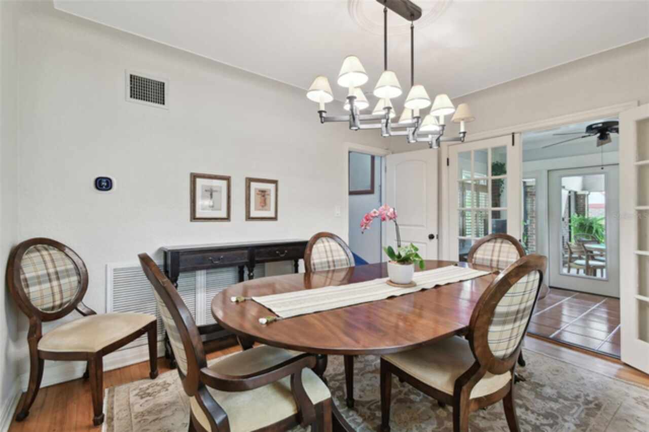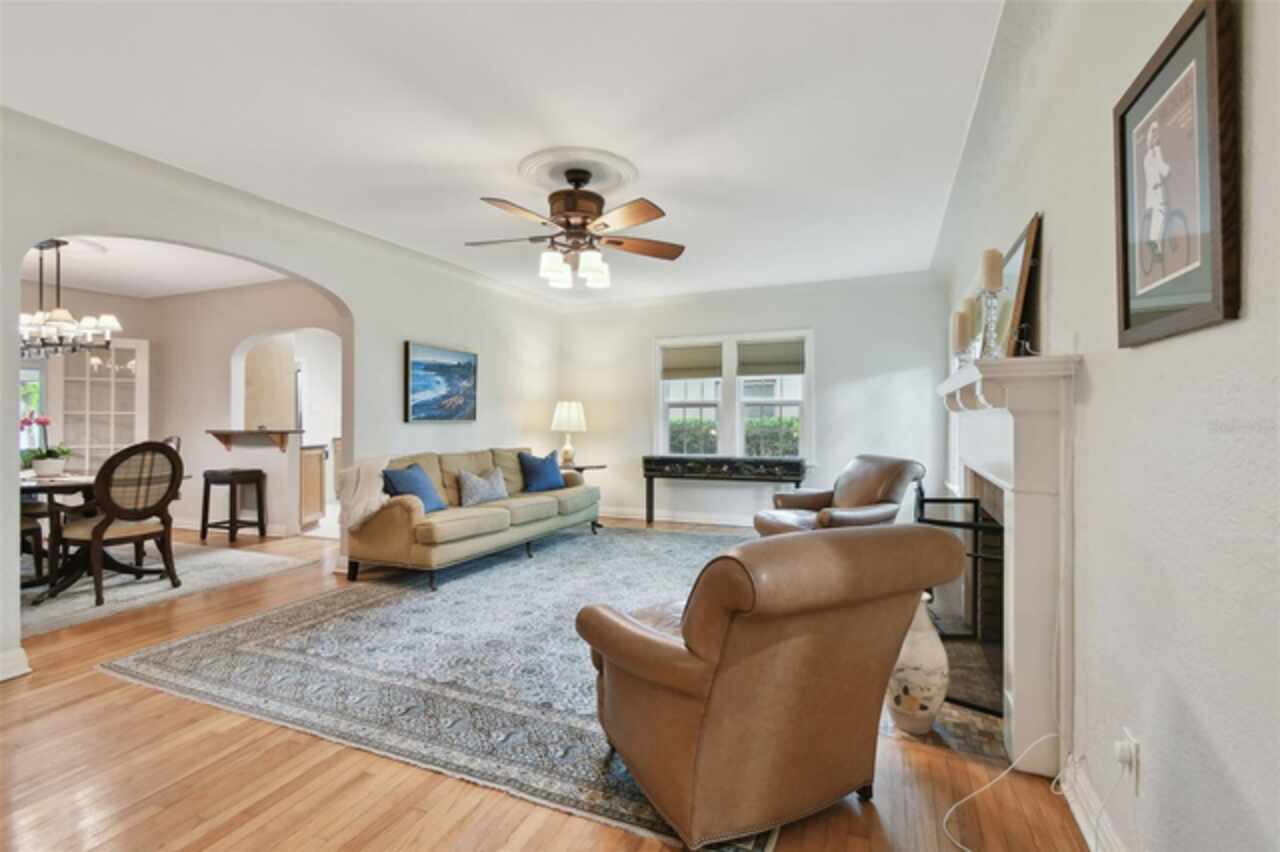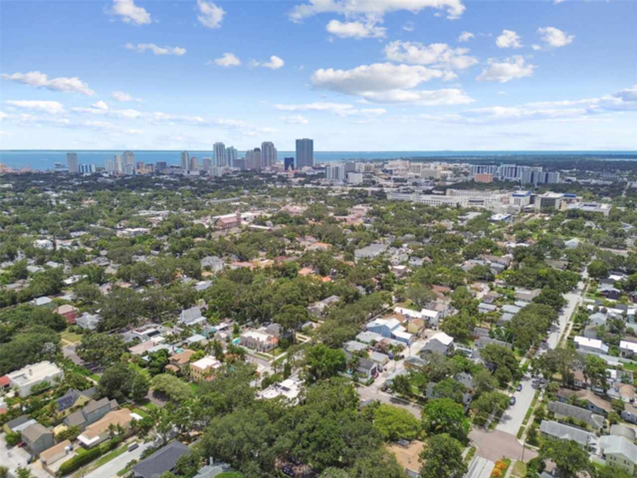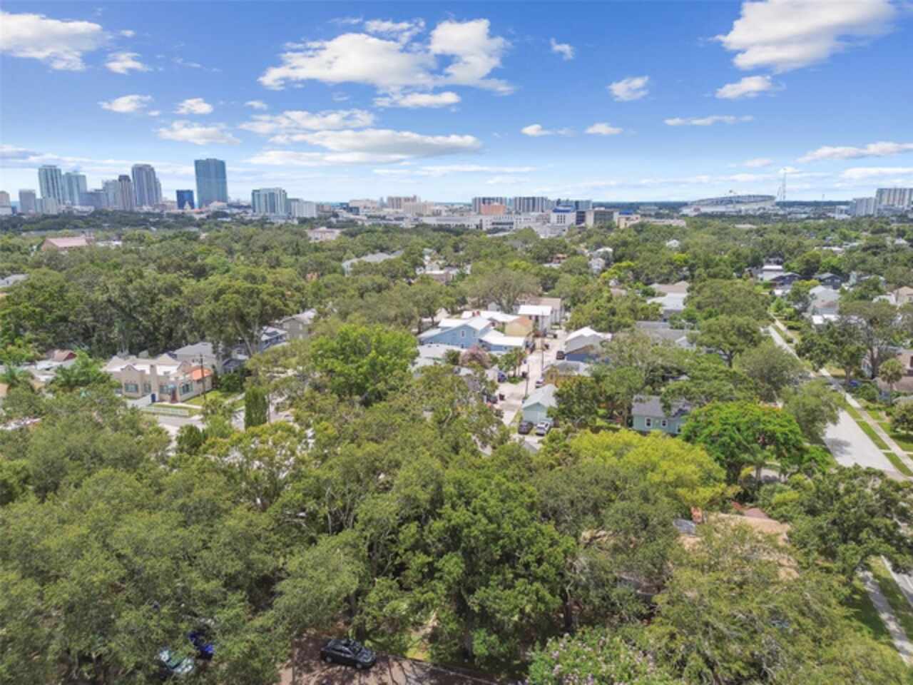 Under contract-accepting backup offers. Welcome to this storybook Tudor bungalow in the desirable Euclid neighborhood of St. Petersburg, just minutes from vibrant downtown St. Pete, picturesque Crescent Lake, local shops, popular restaurants, beer gardens and easy interstate access. Among winding brick streets, towering oak canopies, and a beautiful mix of historic charm and tasteful new construction, this home blends timeless character with modern convenience. This three-bedroom, three-bath residence greets you with a spacious living room featuring a cozy fireplace, cove moulding and gleaming oak hardwood floors that flow seamlessly into a formal dining room, ideal or dinner parties and gatherings. The updated kitchen boasts solid wood cabinetry, a new range and thoughtful finishes, making it stylish and functional. Just off the dining room, a sun-kissed Florida room offers the ideal retreat for morning coffee, reading or relaxing, and it opens up to a massive screened and covered outdoor living room. With cathedral ceilings, a gas fireplace and a fully equipped outdoor kitchen, this incredible space invites year-round entertaining in your lush, tropically landscaped backyard. The entire second floor is dedicated to the primary suite, a bright and peaceful sanctuary, complete with a private bath and plenty of room to unwind and recharge. The home also features impact-rated windows throughout, a tankless water heater for energy efficiency, updated plumbing and electrical systems for peace of mind and a detached two-car garage with a full bath, ideal for an artist studio, workshop or even a future guest suite. Best of all, the property is outside a flood zone and has never experienced any storm damage, according to the owner, offering an added layer of security and confidence. This charming and thoughtfully updated home offers the best of indoor-outdoor Florida living in one of St. Pete’s iconic neighborhoods. Don’t miss your opportunity to own a piece of Euclid's historic magic.