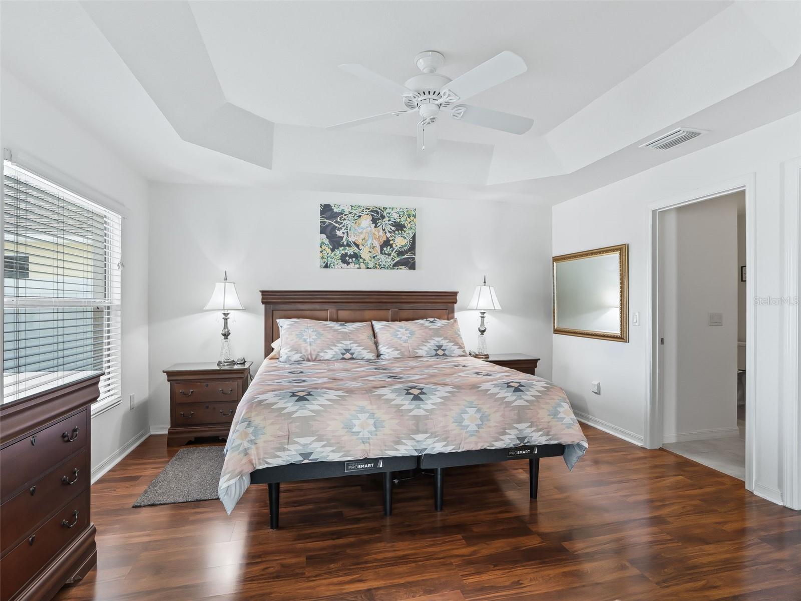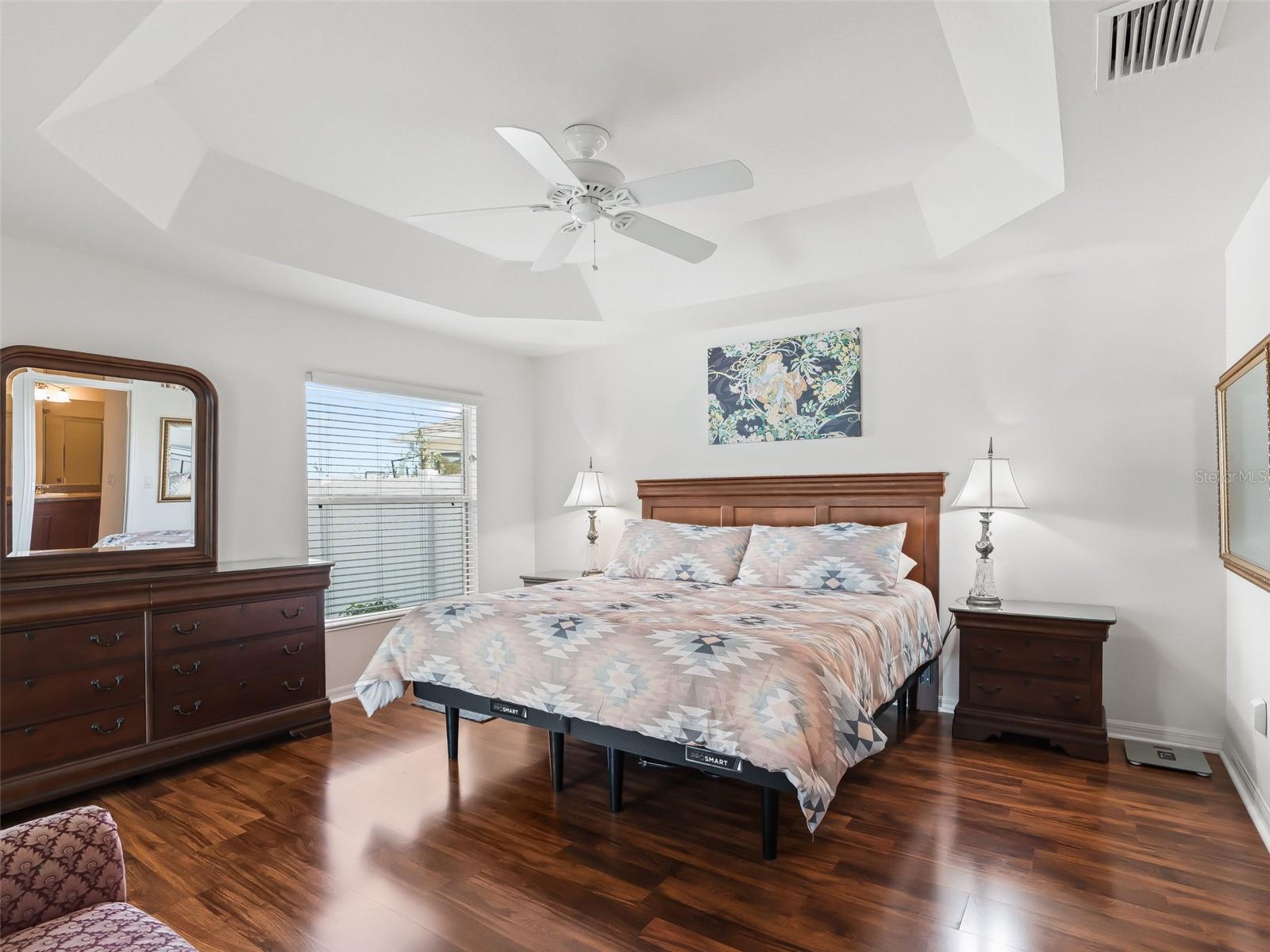 Ceiling Fans(s), High Ceilings, Open Floorplan, Primary Bedroom Main Floor, Solid Wood Cabinets, Split Bedroom, Thermostat, Tray Ceiling(s), Vaulted Ceiling(s), Walk-In Closet(s), Window Treatments