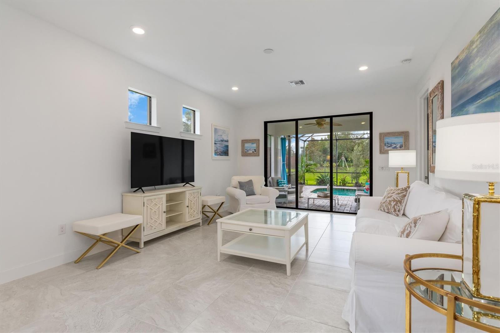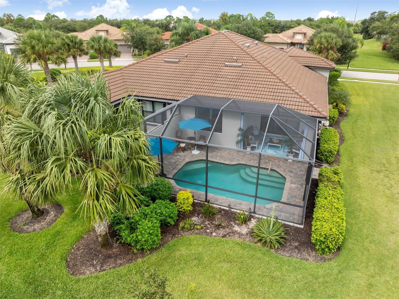 Experience the ultimate in Florida living at 12261 Marsh Pointe Road, a beautifully appointed 2-bedroom, 2-bath villawith a den in the highly sought-after Hammock Preserve on Palmer Ranch. This thoughtfully designed home stands out as one of the few villas in the community featuring its own private heated pool — offering the perfect blend of privacy, luxury, and low-maintenance living. Step inside to an inviting open-concept floor plan filled with natural light and elegant finishes. The gourmet kitchen boasts quartz countertops, stainless steel appliances, a large peninsula with plenty of seating, and an abundance of cabinetry — ideal for both everyday living and entertaining. The spacious great room flows seamlessly to the screened lanai and pool area, creating a true indoor-outdoor oasis. The primary suite features a walk-in closet and a spa-like en suite bath with dual vanities and a glass-enclosed shower. A comfortable guest bedroom, separate den or office, and a two-car garage complete the thoughtful layout. Outside, enjoy serene lake views and gentle breezes from your private screened pool and lanai — perfect for morning coffee, watching the evening sky turn shades of pink, red and orange, or a relaxing swim year-round. Residents of Hammock Preserve enjoy resort-style amenities, including a community pool, fitness center, pickleball and tennis courts, clubhouse, and social activities — all within a gated, maintenance-free neighborhood. Ideally located in Palmer Ranch, you’re just minutes from Siesta Key Beach, Legacy Trail, shopping, dining, and all the best of Sarasota living. 12261 Marsh Pointe Road offers the rare opportunity to enjoy villa living without sacrificing the privacy of your own pool — a true hidden gem in Hammock Preserve.
