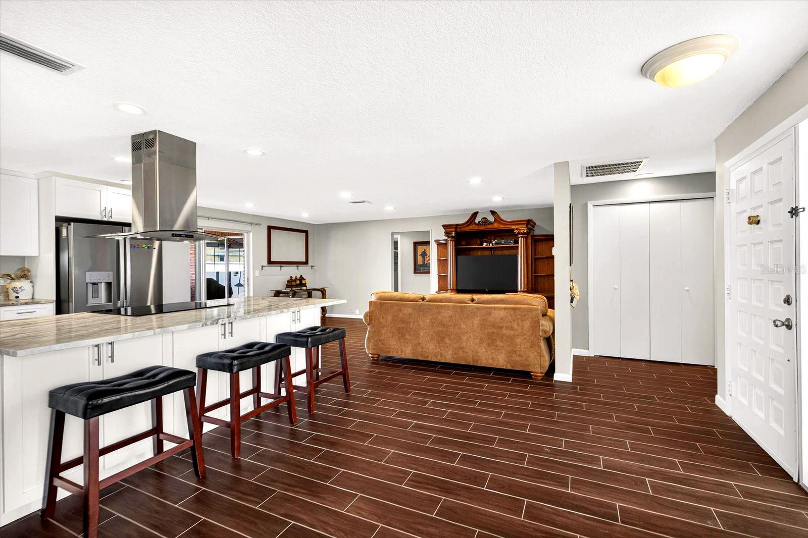 One or more photo(s) has been virtually staged. Live the Dunedin Dream — Space, Style & Freedom Just Minutes from Downtown. Act fast—homes like this rarely hit the market in one of Dunedin’s most sought-after locations! Welcome to 1228 Inverness Drive, where lifestyle meets flexibility. This beautifully updated and impeccably maintained 3-bedroom, 2-bath home offers 1, 781 sq ft of living space on a .25-acre lot with no HOA or deed restrictions—a rare opportunity to live life on your terms. Bring your RV, boat, or golf cart, or plan for a future pool or home expansion to accompany the private 4-person spa/hot tub (buyer to verify with the City of Dunedin). Inside, you’ll fall in love with the open-concept kitchen, featuring marble countertops, stainless steel appliances, a modern range hood (installed 1/23), and sleek, contemporary finishes throughout. The kitchen cabinets have been customized with Elfa pantry storage bins and the breakfast bar/island offers storage in the cabinets below. The split floor plan offers both privacy and functionality—ideal for entertaining, working from home, or enjoying a quiet retreat. The spacious living area opens through pocket sliding glass doors to a screened-in lanai, upgraded with no-see-um mesh screening and vibrant mosaic tile—blending indoor comfort with outdoor charm. Additional upgrades include renovated bathrooms, stylish tilework, and updated exterior screens.This home is also designed with energy efficiency in mind, featuring: Third-party solar panels to save HUNDREDS per month on your electric bill, plus A durable Spanish tile roof built to last .Outdoor solar lighting and LED lighting throughout and reclaimed water for irrigation. The Lifestyle You Deserve. Located just minutes from Downtown Dunedin, located in flood zone x, you’ll have quick access to: Charming restaurants, breweries, and year-round festivals, The sugar-white sands of Honeymoon Island, Highlander Park & Aquatic Complex, The inspiring Dunedin Fine Arts Center And the historic Dunedin Golf Club, with golf cart accessibility (buyer to confirm with City). This isn’t just a home—it’s a chance to live in one of Florida’s most vibrant, welcoming coastal communities, with space to grow, entertain, and unwind.Opportunities like this don’t last long—schedule your private showing today before it’s gone!