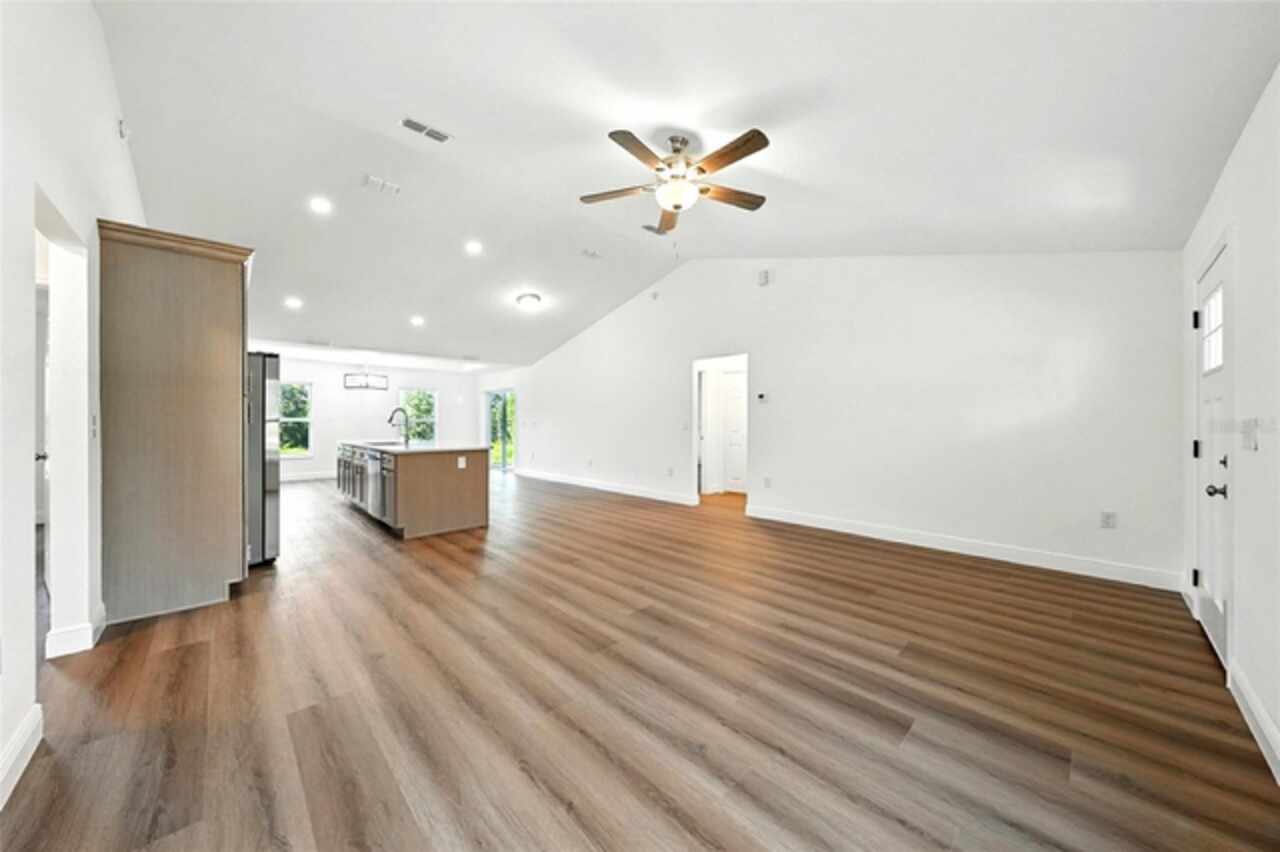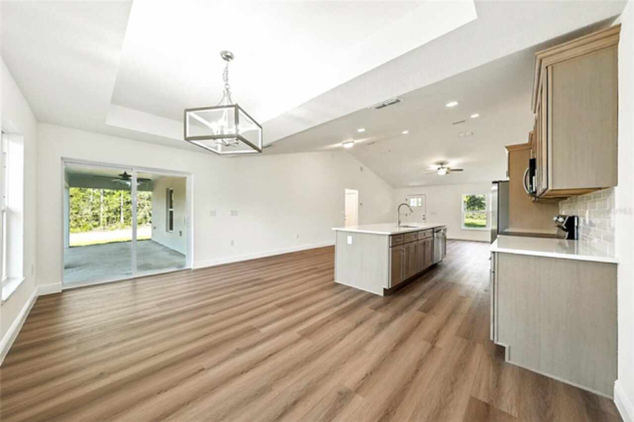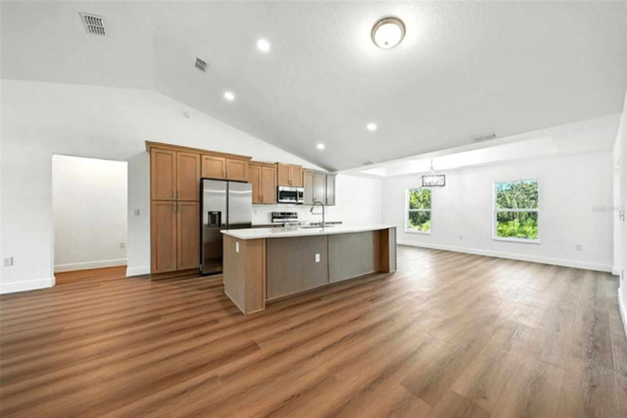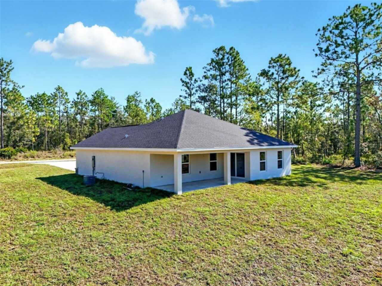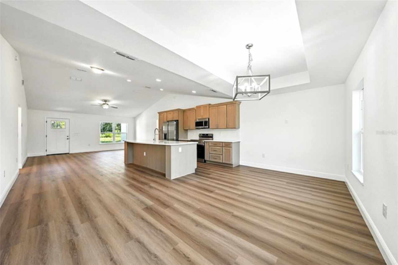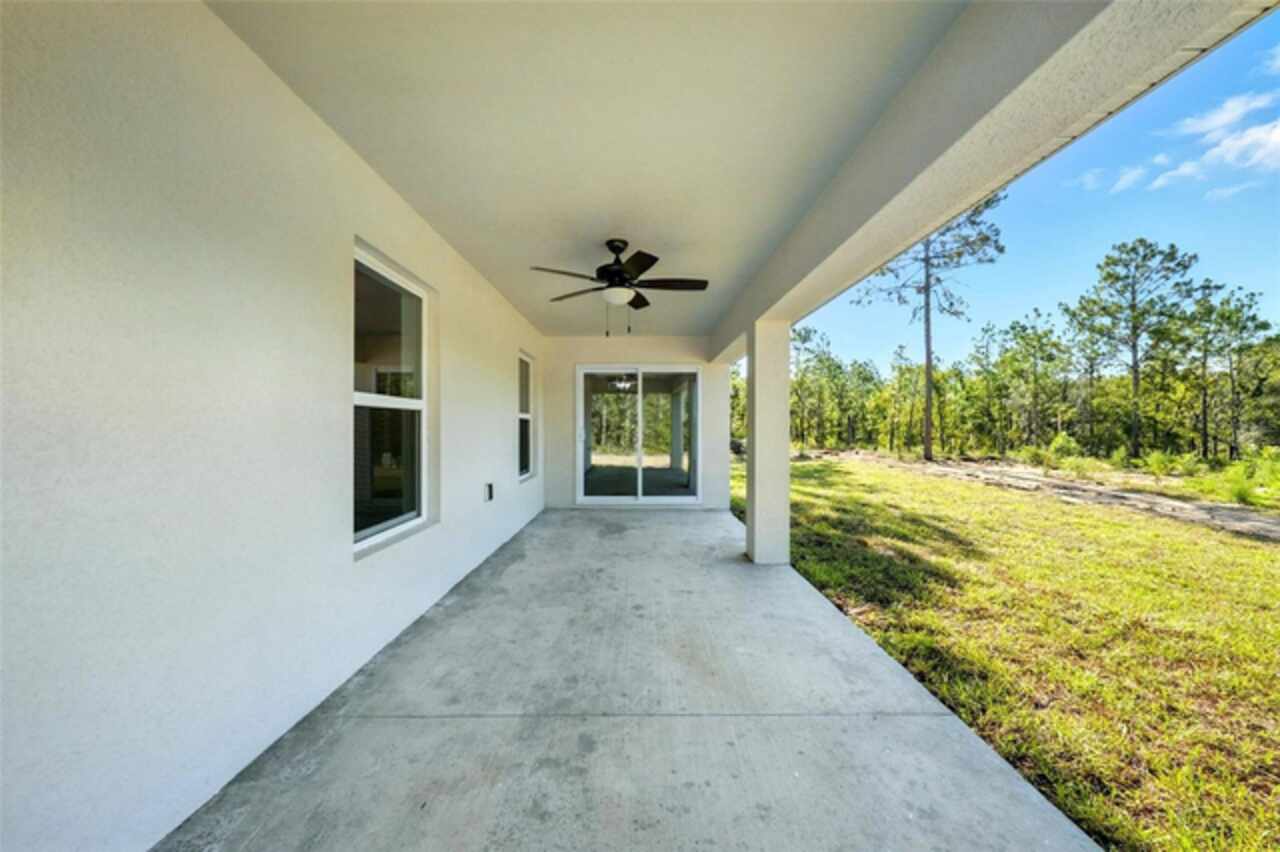 Under contract-accepting backup offers. BRAND NEW construction 3 bedroom, 2 bathroom home with a 2 car garage on 1 ACRE fully cleared in Rolling Hills! Construction is complete, CO is issued and home is ready for immediate occupancy! NO HOA and NO Flood Zone! Upon entering, you'll encounter the spacious open concept living room with cathedral ceilings and beautiful kitchen equipped with all stainless steel appliances, solid wood soft-close cabinets, large center island and upgraded quartz countertops. This home offers a split bedroom floor plan and owner's suite featuring a tray ceiling, large walk-in closet, and ensuite bathroom with dual sinks and large walk-in shower with a bench. There are several upgraded options selected for this home including luxury vinyl plank flooring throughout, upgraded quartz countertops and backsplash, upgraded baseboards, tray ceilings in the dining room and primary bedroom, and exterior stone and hardie board accents providing an elevated curb appeal. The large covered back patio overlooks your private, cleared 1 acre lot. This home provides the perfect space ideal for entertainment and relaxation in a quiet, yet growing Central Florida community. Closing cost assistance and lender incentives may be provided if using the seller's preferred lender.