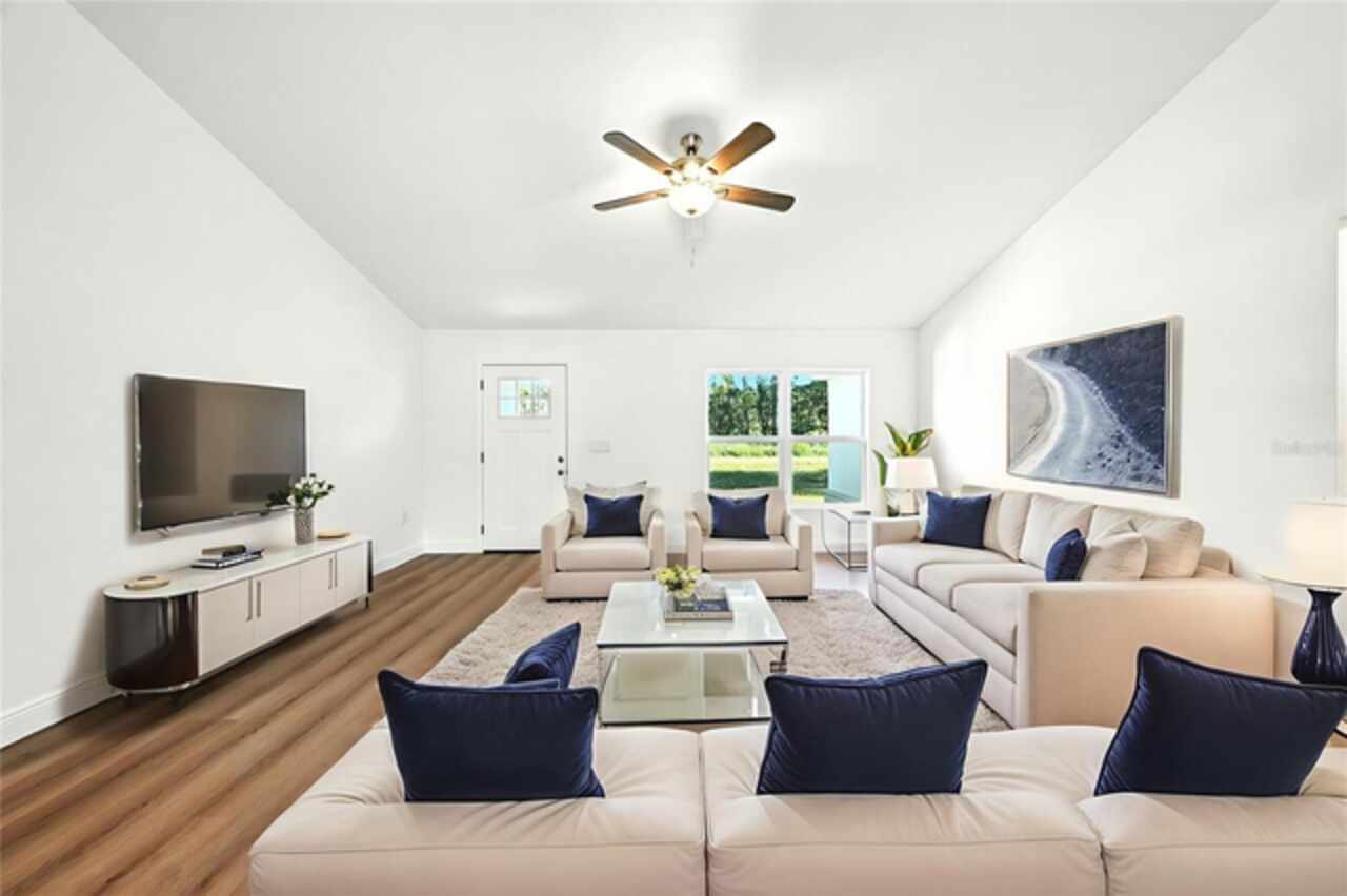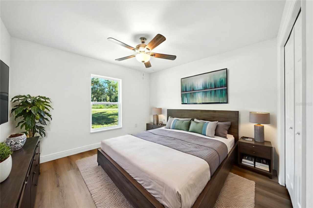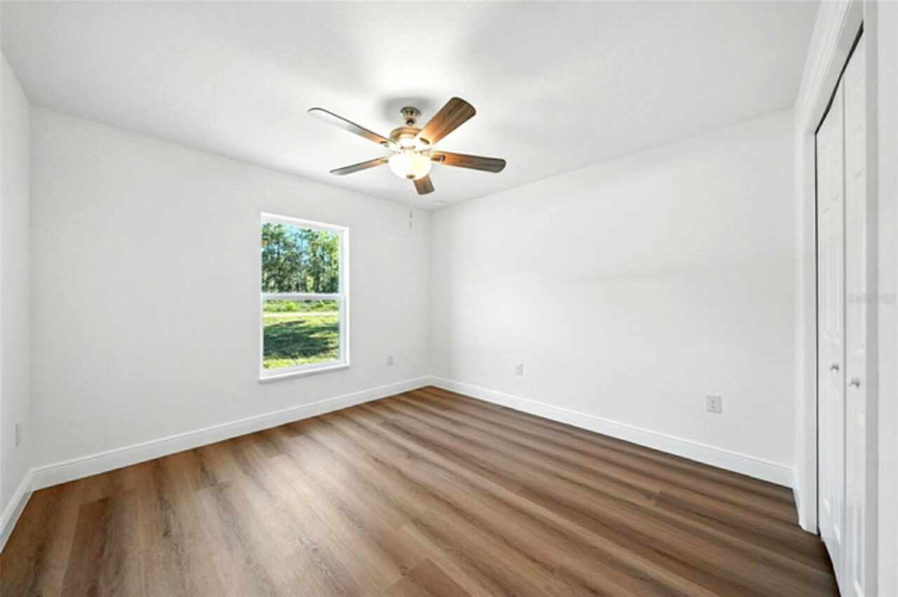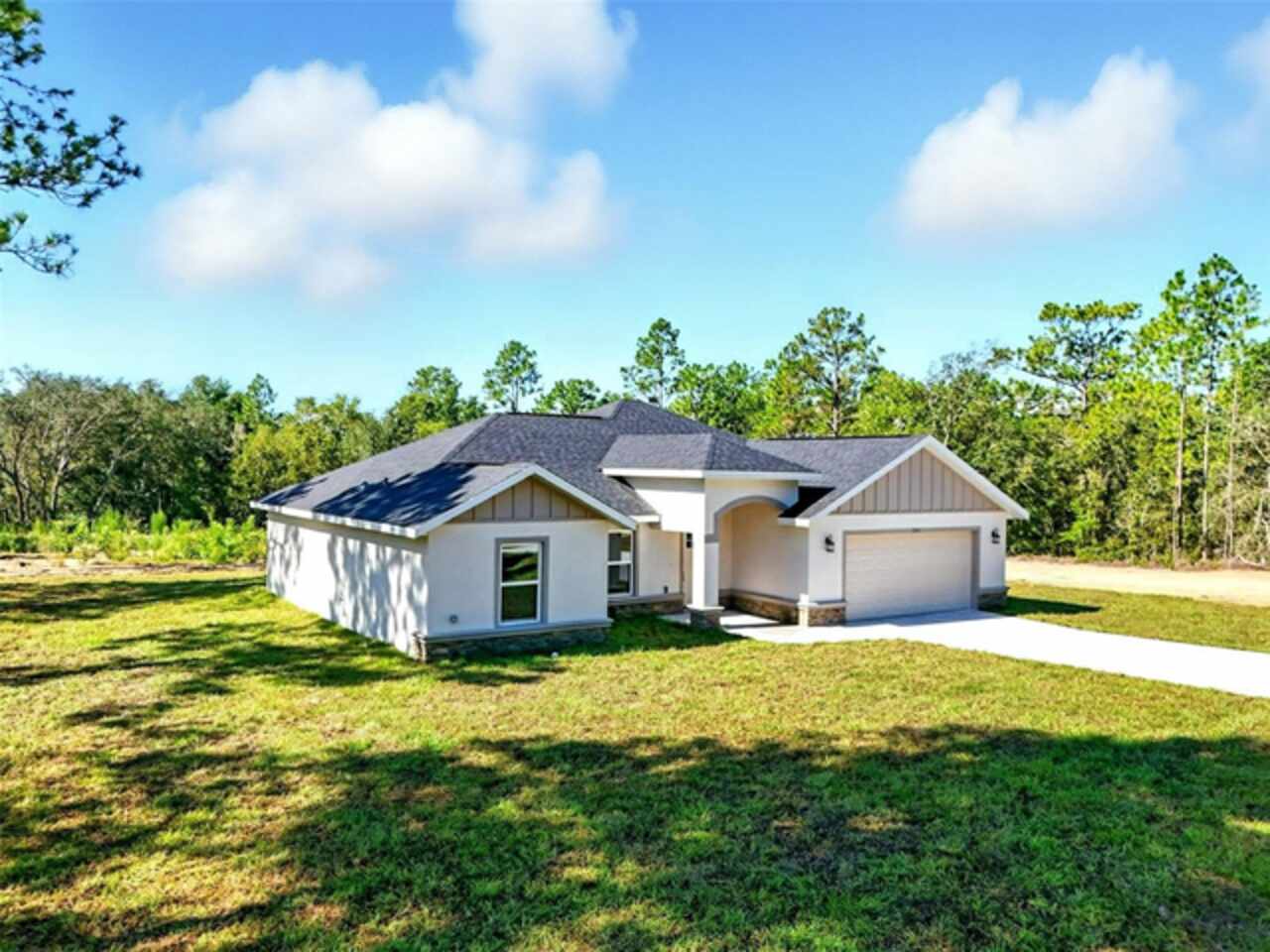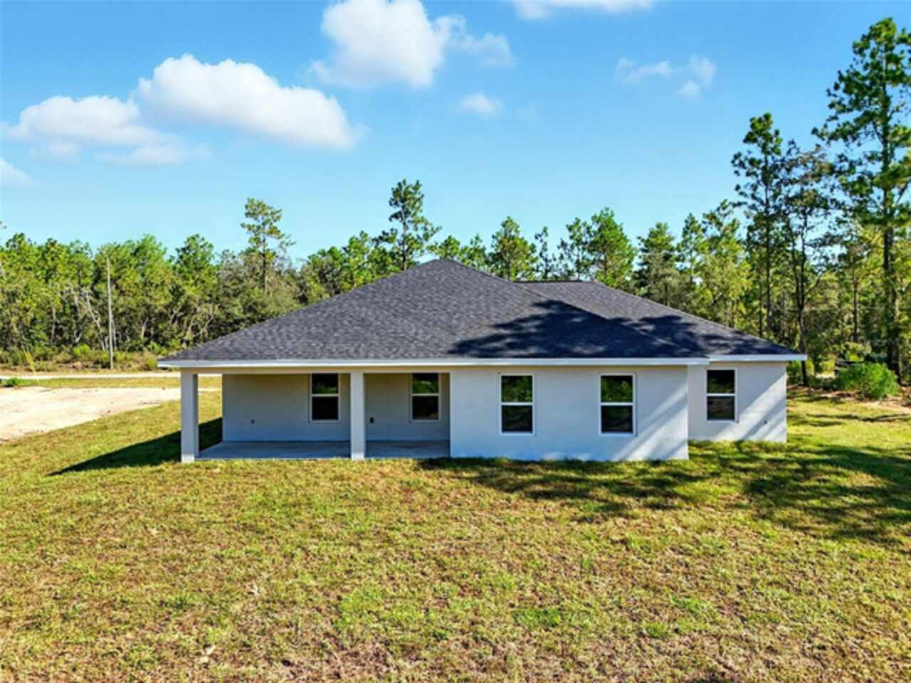 Under contract-accepting backup offers. BRAND NEW construction 3 bedroom, 2 bathroom home with a 2 car garage on 1 ACRE fully cleared in Rolling Hills! Construction is complete, CO is issued and home is ready for immediate occupancy! NO HOA and NO Flood Zone! Upon entering, you'll encounter the spacious open concept living room with cathedral ceilings and beautiful kitchen equipped with all stainless steel appliances, solid wood soft-close cabinets, large center island and upgraded quartz countertops. This home offers a split bedroom floor plan and owner's suite featuring a tray ceiling, large walk-in closet, and ensuite bathroom with dual sinks and large walk-in shower with a bench. There are several upgraded options selected for this home including luxury vinyl plank flooring throughout, upgraded quartz countertops and backsplash, upgraded baseboards, tray ceilings in the dining room and primary bedroom, and exterior stone and hardie board accents providing an elevated curb appeal. The large covered back patio overlooks your private, cleared 1 acre lot. This home provides the perfect space ideal for entertainment and relaxation in a quiet, yet growing Central Florida community. Closing cost assistance and lender incentives may be provided if using the seller's preferred lender.