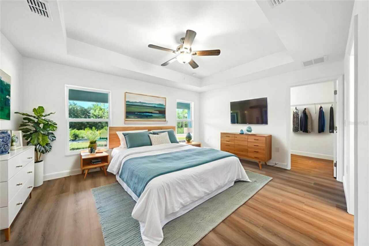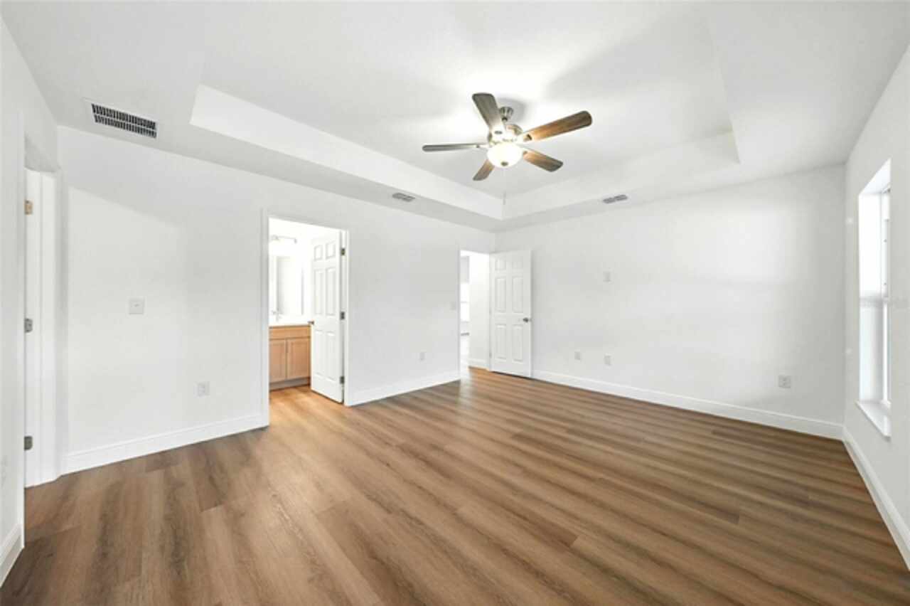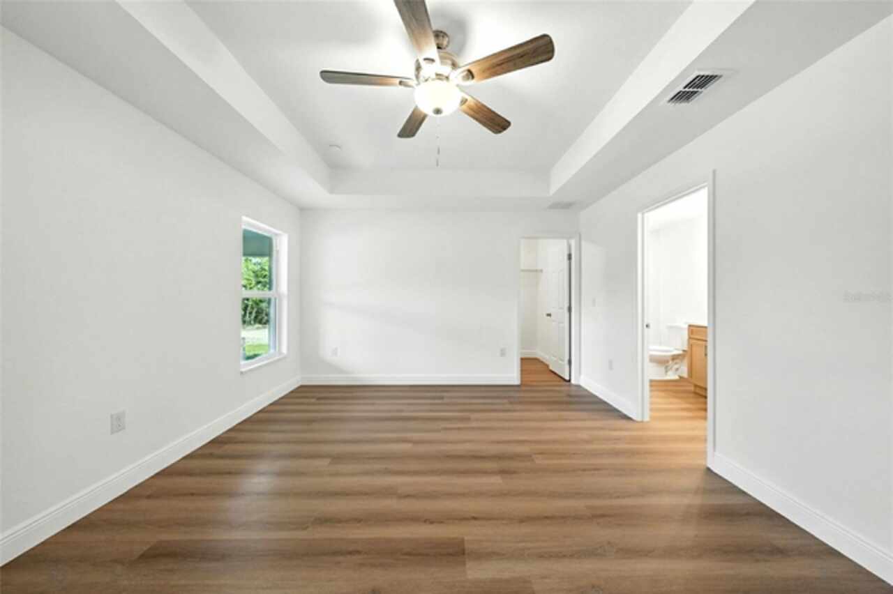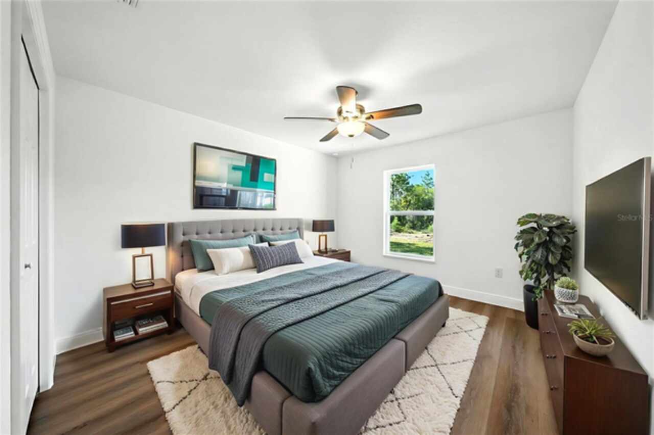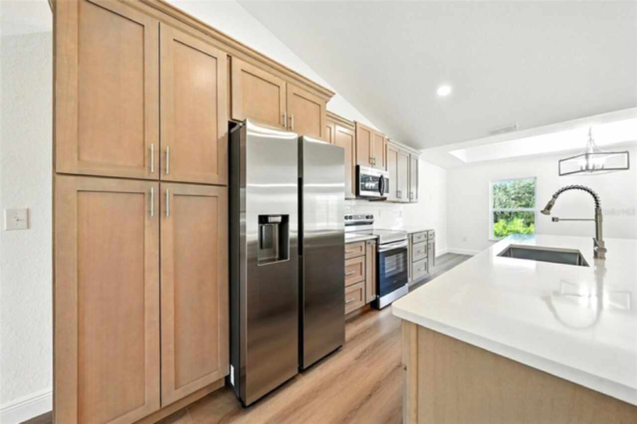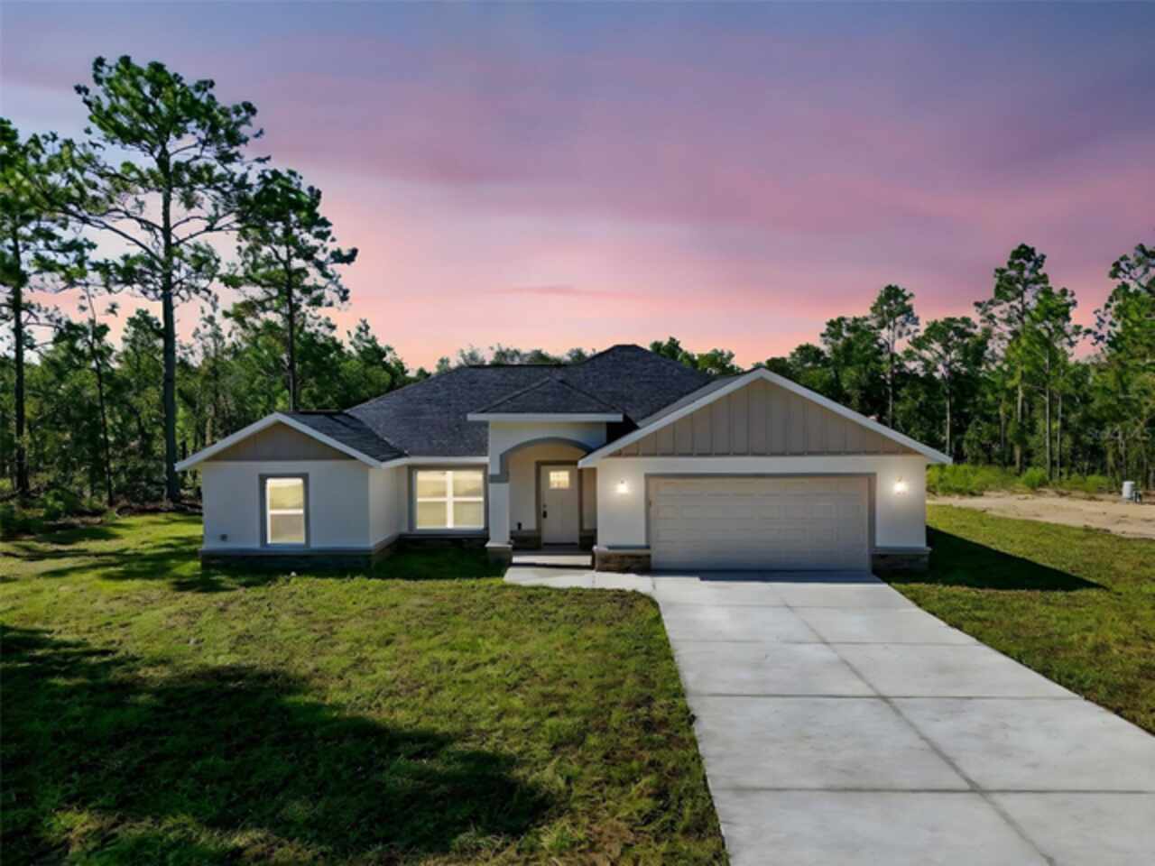 Under contract-accepting backup offers. BRAND NEW construction 3 bedroom, 2 bathroom home with a 2 car garage on 1 ACRE fully cleared in Rolling Hills! Construction is complete, CO is issued and home is ready for immediate occupancy! NO HOA and NO Flood Zone! Upon entering, you'll encounter the spacious open concept living room with cathedral ceilings and beautiful kitchen equipped with all stainless steel appliances, solid wood soft-close cabinets, large center island and upgraded quartz countertops. This home offers a split bedroom floor plan and owner's suite featuring a tray ceiling, large walk-in closet, and ensuite bathroom with dual sinks and large walk-in shower with a bench. There are several upgraded options selected for this home including luxury vinyl plank flooring throughout, upgraded quartz countertops and backsplash, upgraded baseboards, tray ceilings in the dining room and primary bedroom, and exterior stone and hardie board accents providing an elevated curb appeal. The large covered back patio overlooks your private, cleared 1 acre lot. This home provides the perfect space ideal for entertainment and relaxation in a quiet, yet growing Central Florida community. Closing cost assistance and lender incentives may be provided if using the seller's preferred lender.