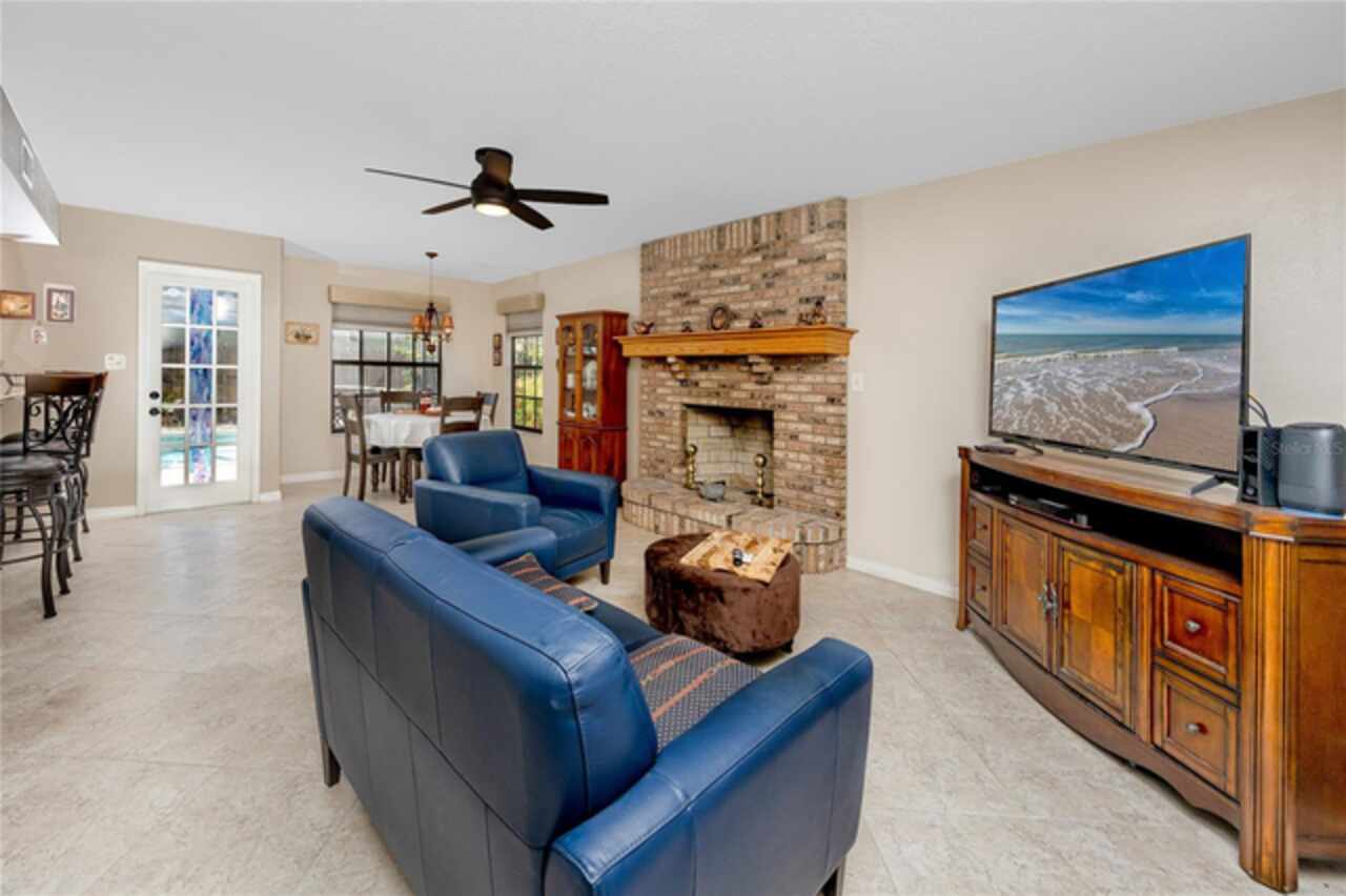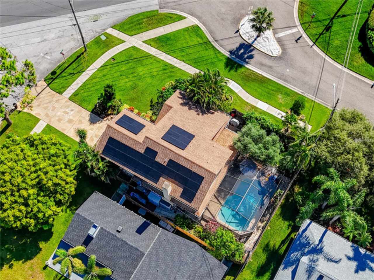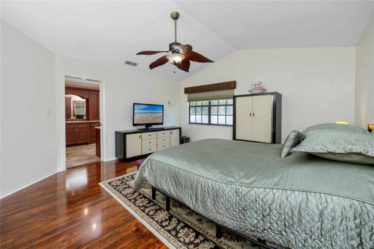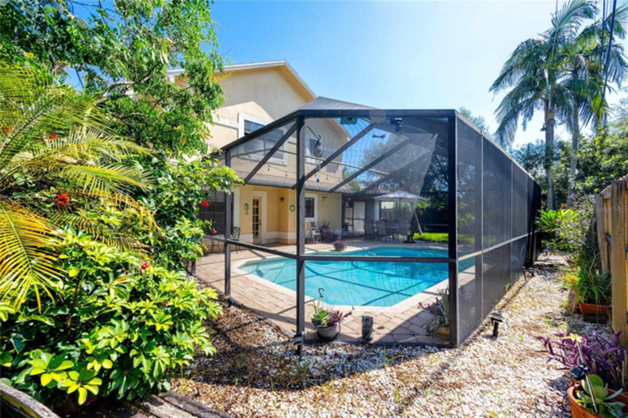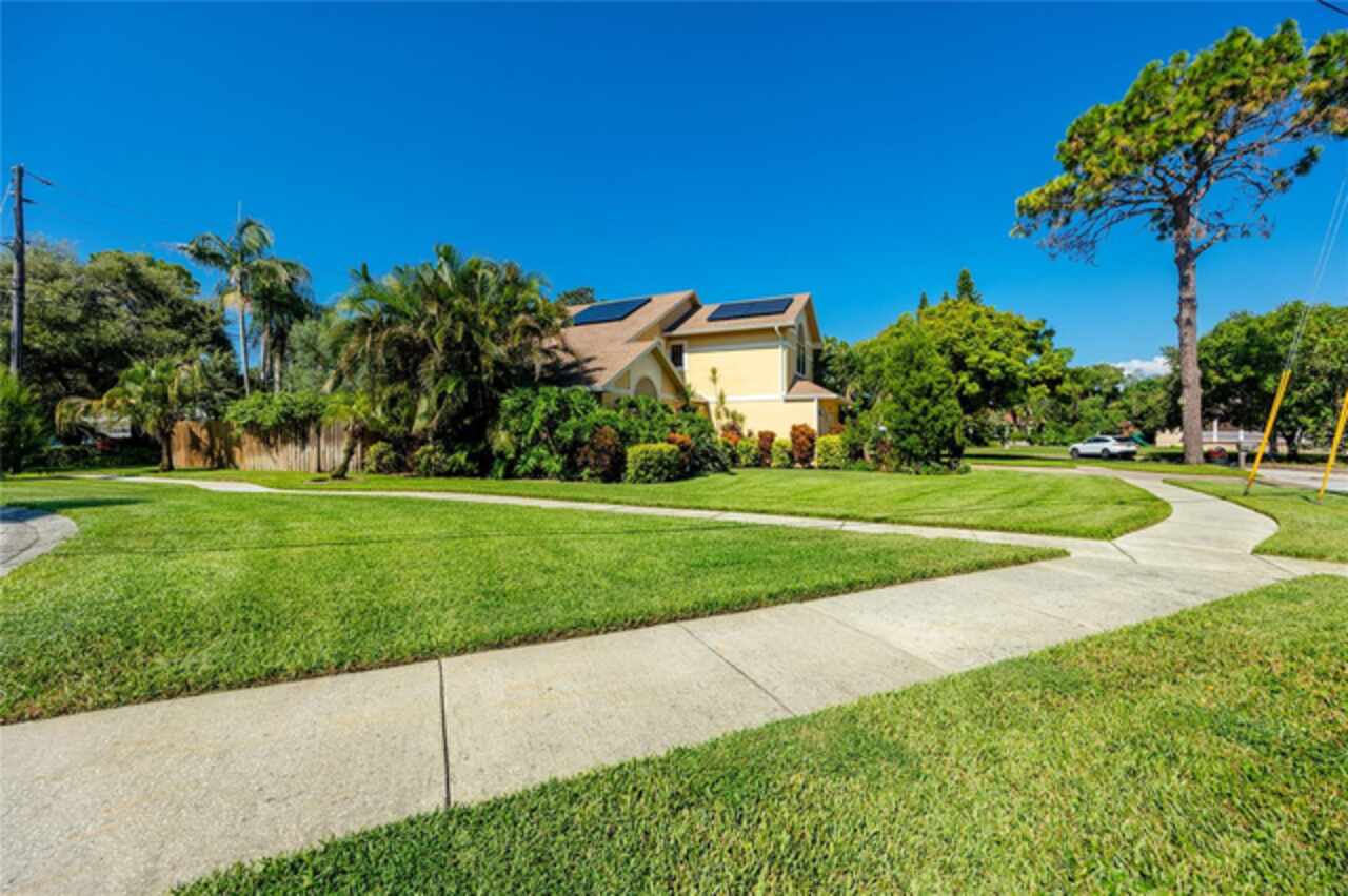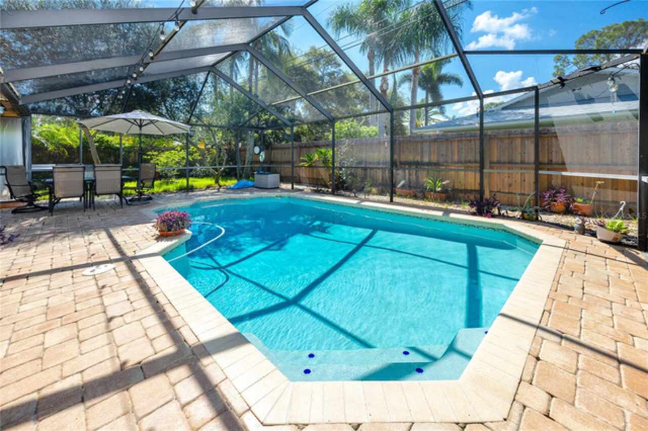 This stunning 3-bedroom, 3-bath pool home in Tarpon Springs sits proudly on an oversized corner lot, surrounded by mature landscaping and designed for both comfort and peace of mind. Meticulously maintained and thoughtfully updated, the home combines timeless style with practical upgrades, making it a rare move-in-ready find with no HOA restrictions. Step inside to soaring vaulted ceilings, rich wood flooring, 20-inch neutral ceramic tile, and an abundance of natural light. The flexible floor plan includes a spacious 18x26’ living room and formal dining area, while the inviting family room centers around a beautiful brick wood-burning fireplace. The kitchen is a chef’s delight, featuring swirled granite countertops, a pull-up island, wood cabinetry, a tray ceiling, closet pantry, breakfast bar with pendant lighting, and a dinette space—perfect for everyday meals or entertaining. Nearly all main-floor windows overlook the pool, keeping the home bright and connected to the outdoors. Upstairs, the expansive primary suite is a private retreat with a massive custom walk-in closet complete with California-style shelving and cedar parquet flooring. The spa-like ensuite bath offers a luminous walk-in shower with seating, his-and-her sinks, an upgraded Toto commode, and abundant cabinetry. Two additional bedrooms each include oversized vented walk-in closets, ensuring exceptional storage throughout. This home has been enhanced with countless extras that elevate everyday living such as a central vacuum system, epoxy-finished garage floors with generous storage, newer lighting and remote-controlled ceiling fans, and updated blinds and shades throughout. For added peace of mind, it features a whole-home reverse osmosis system, and newer solar panels that power the entire home. Outdoor living is equally impressive. The screened pool area includes paver decking, a sparkling pool, and a covered seating area that together create a true tropical oasis. A separate wood-decked space under roof is ideally suited for a future hot tub. The fully fenced yard ensures privacy and plenty of room to enjoy the Florida lifestyle year-round. Located just minutes from Sunset Beach, Fred Howard Park, the historic Sponge Docks, marinas, and downtown Tarpon Springs, this home offers the perfect blend of tranquility and convenience. Zoned to top-rated schools and surrounded by local charm, it’s an ideal setting for both everyday living and memorable gatherings. Beautifully maintained, upgraded with high-quality features, and free of HOA restrictions, this Tarpon Springs home truly has it all. Schedule your private showing today and experience the perfect balance of peace of mind and Florida living.