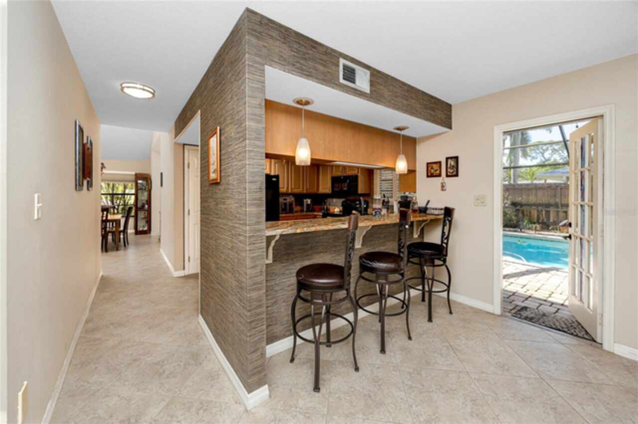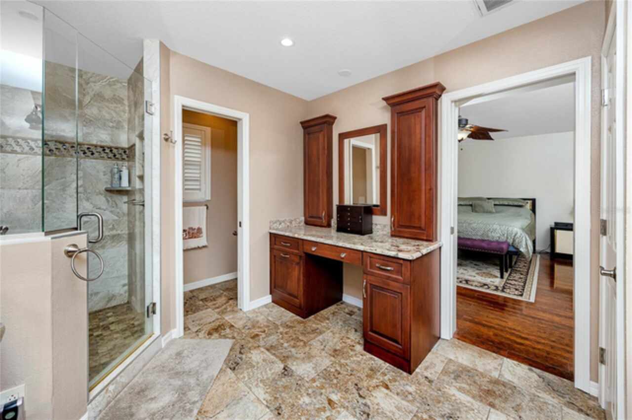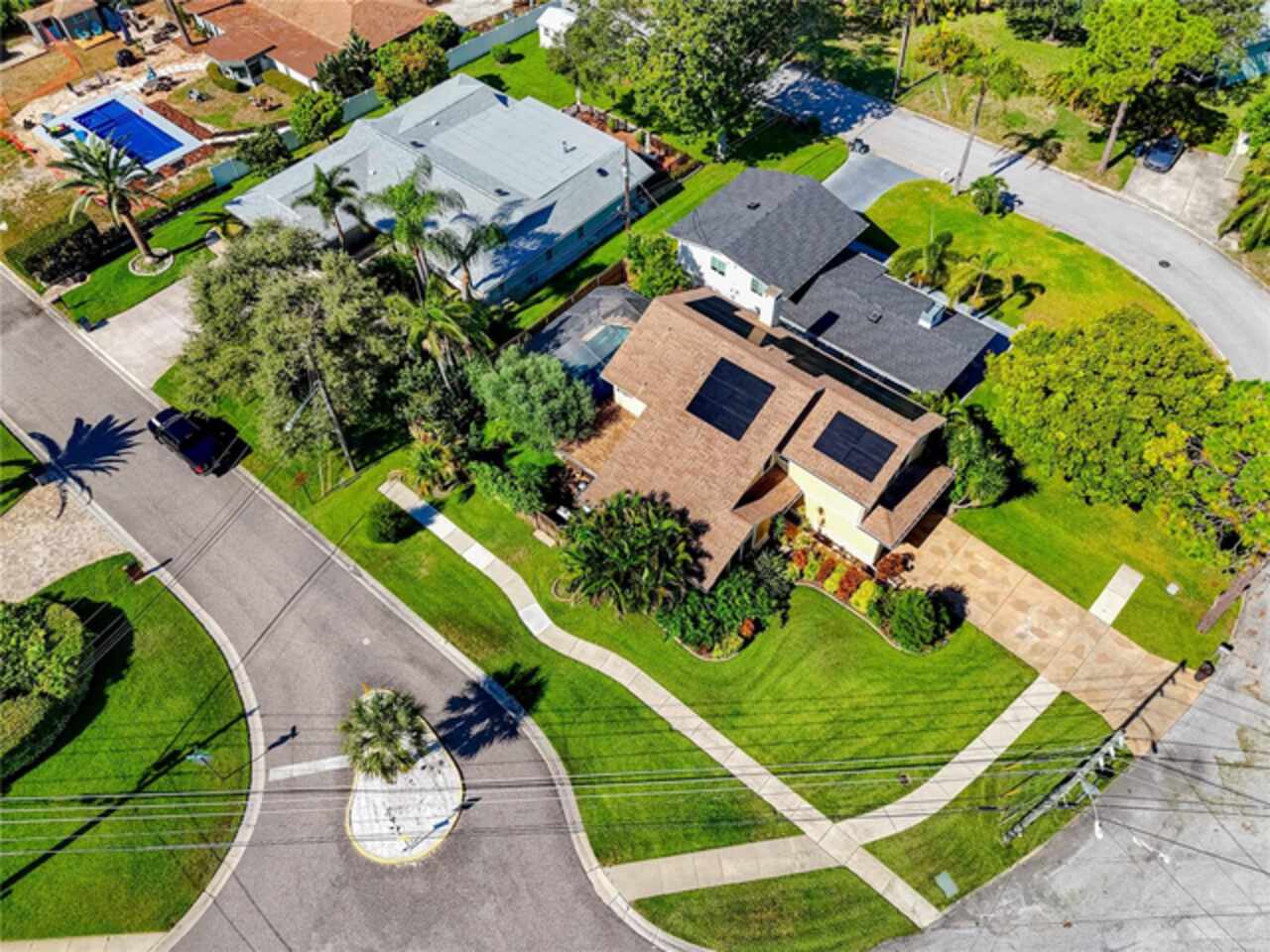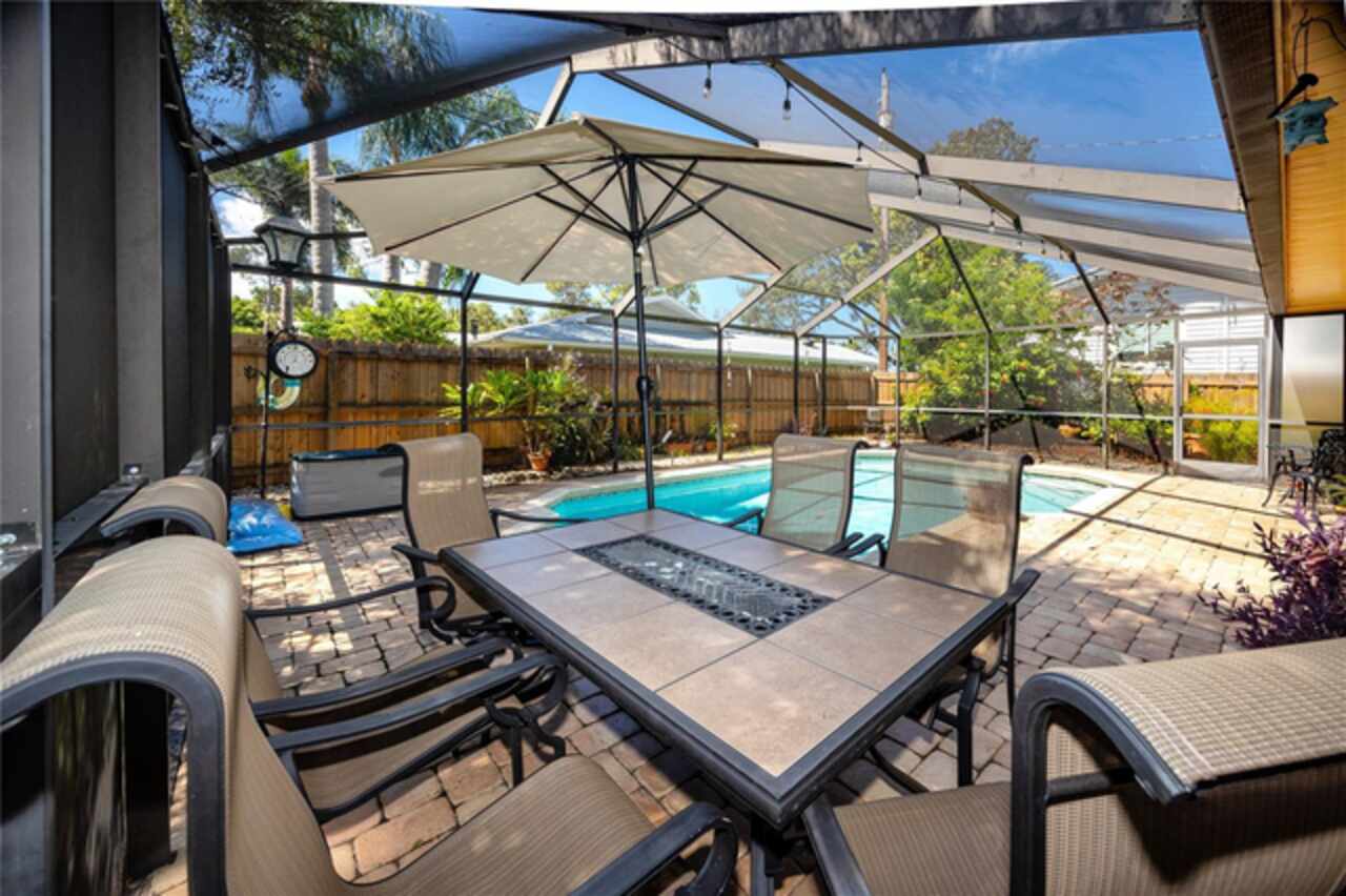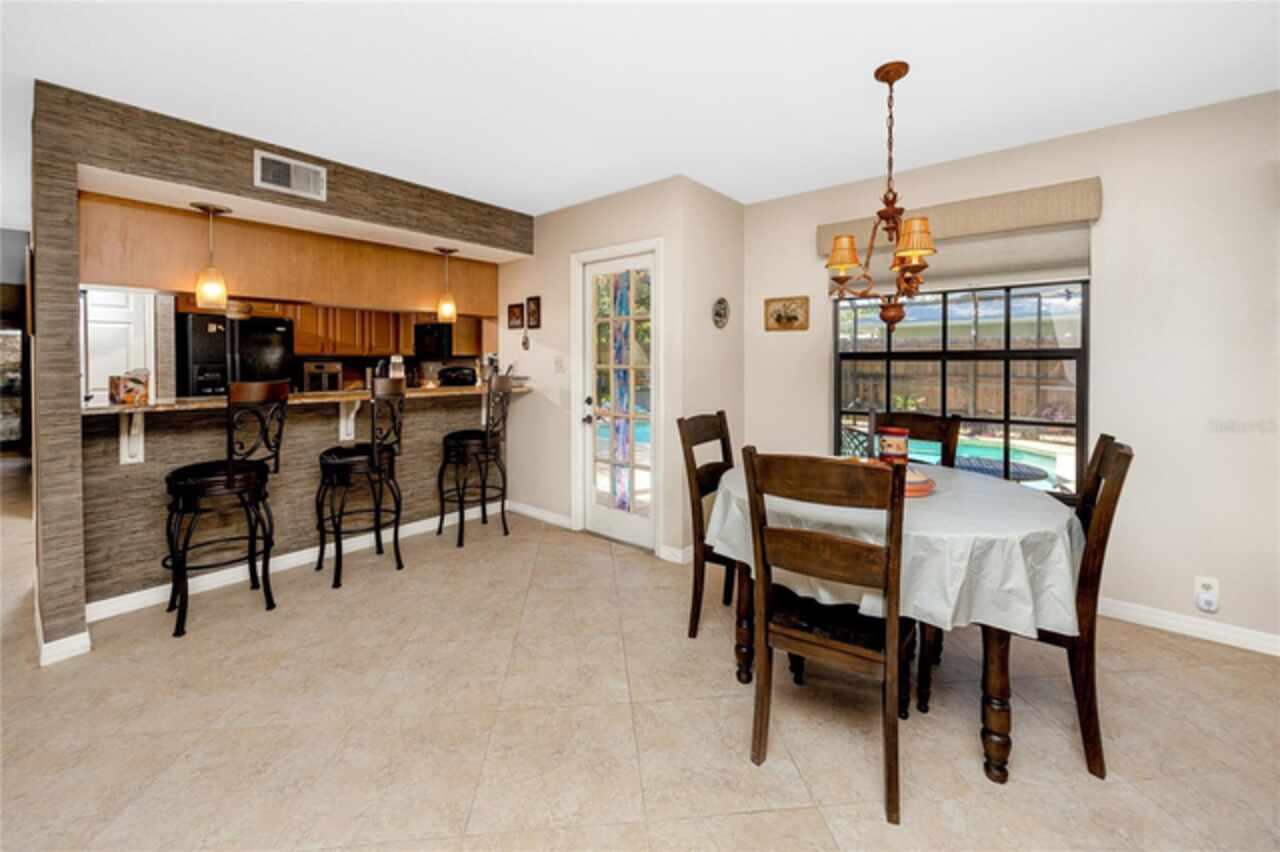 This stunning 3-bedroom, 3-bath pool home in Tarpon Springs sits proudly on an oversized corner lot, surrounded by mature landscaping and designed for both comfort and peace of mind. Meticulously maintained and thoughtfully updated, the home combines timeless style with practical upgrades, making it a rare move-in-ready find with no HOA restrictions. Step inside to soaring vaulted ceilings, rich wood flooring, 20-inch neutral ceramic tile, and an abundance of natural light. The flexible floor plan includes a spacious 18x26’ living room and formal dining area, while the inviting family room centers around a beautiful brick wood-burning fireplace. The kitchen is a chef’s delight, featuring swirled granite countertops, a pull-up island, wood cabinetry, a tray ceiling, closet pantry, breakfast bar with pendant lighting, and a dinette space—perfect for everyday meals or entertaining. Nearly all main-floor windows overlook the pool, keeping the home bright and connected to the outdoors. Upstairs, the expansive primary suite is a private retreat with a massive custom walk-in closet complete with California-style shelving and cedar parquet flooring. The spa-like ensuite bath offers a luminous walk-in shower with seating, his-and-her sinks, an upgraded Toto commode, and abundant cabinetry. Two additional bedrooms each include oversized vented walk-in closets, ensuring exceptional storage throughout. This home has been enhanced with countless extras that elevate everyday living such as a central vacuum system, epoxy-finished garage floors with generous storage, newer lighting and remote-controlled ceiling fans, and updated blinds and shades throughout. For added peace of mind, it features a whole-home reverse osmosis system, and newer solar panels that power the entire home. Outdoor living is equally impressive. The screened pool area includes paver decking, a sparkling pool, and a covered seating area that together create a true tropical oasis. A separate wood-decked space under roof is ideally suited for a future hot tub. The fully fenced yard ensures privacy and plenty of room to enjoy the Florida lifestyle year-round. Located just minutes from Sunset Beach, Fred Howard Park, the historic Sponge Docks, marinas, and downtown Tarpon Springs, this home offers the perfect blend of tranquility and convenience. Zoned to top-rated schools and surrounded by local charm, it’s an ideal setting for both everyday living and memorable gatherings. Beautifully maintained, upgraded with high-quality features, and free of HOA restrictions, this Tarpon Springs home truly has it all. Schedule your private showing today and experience the perfect balance of peace of mind and Florida living.