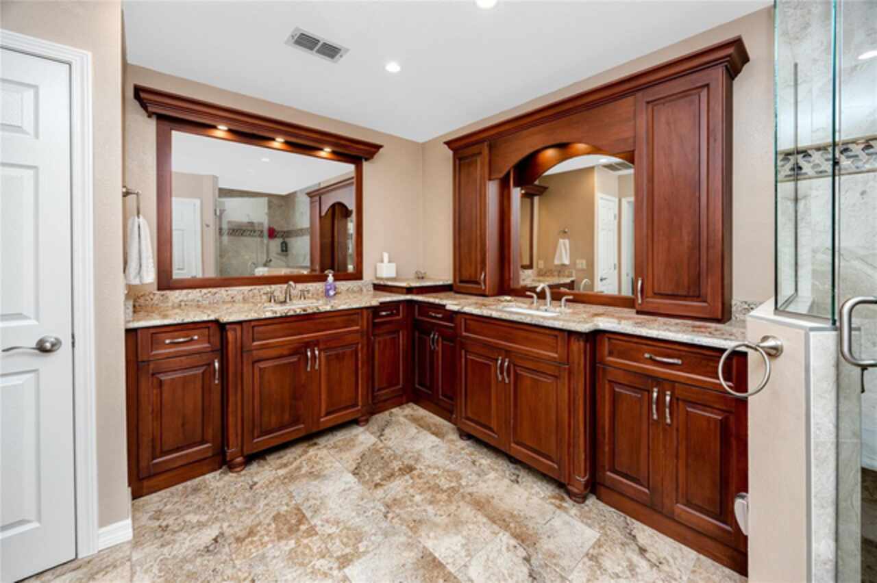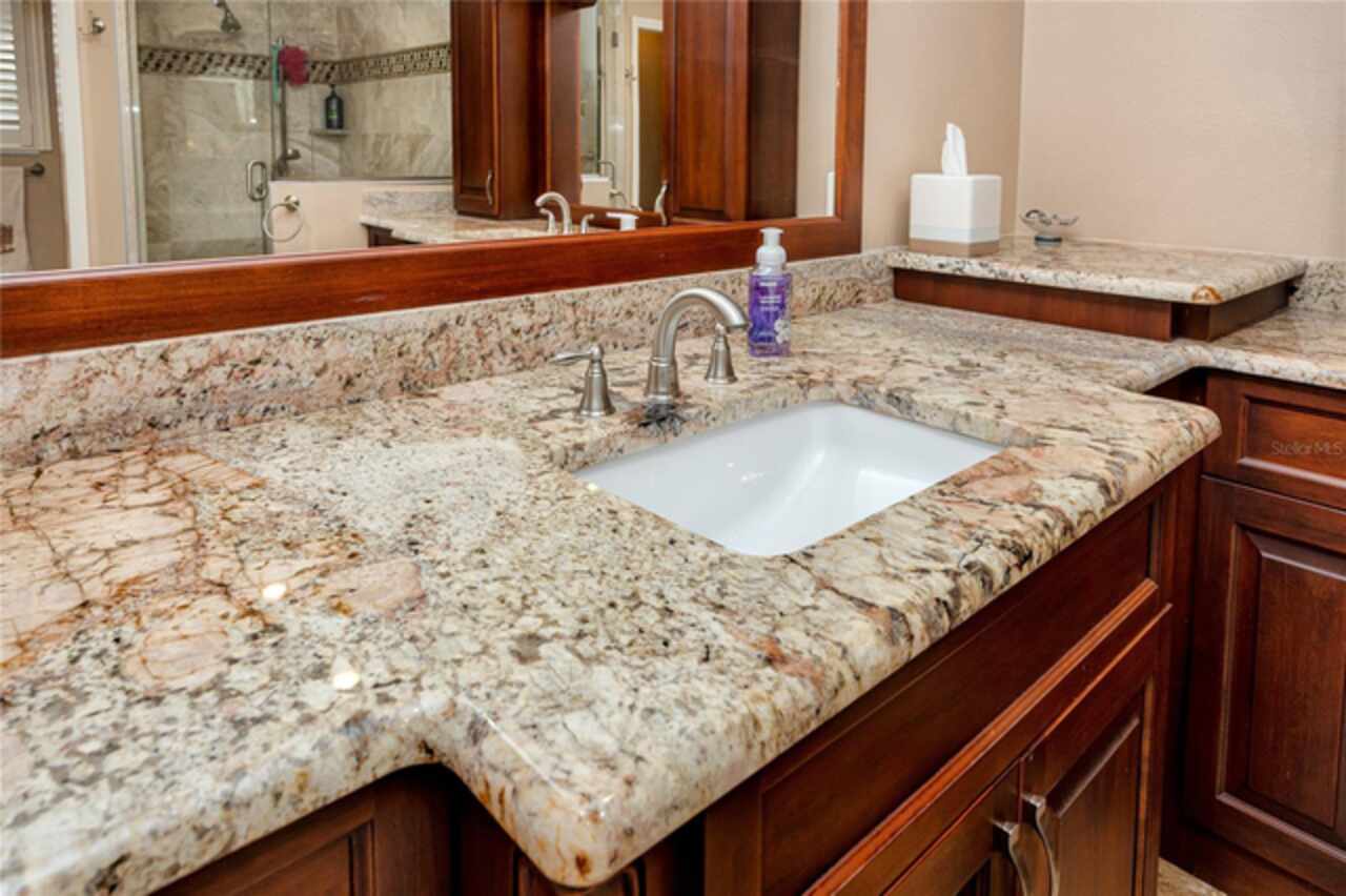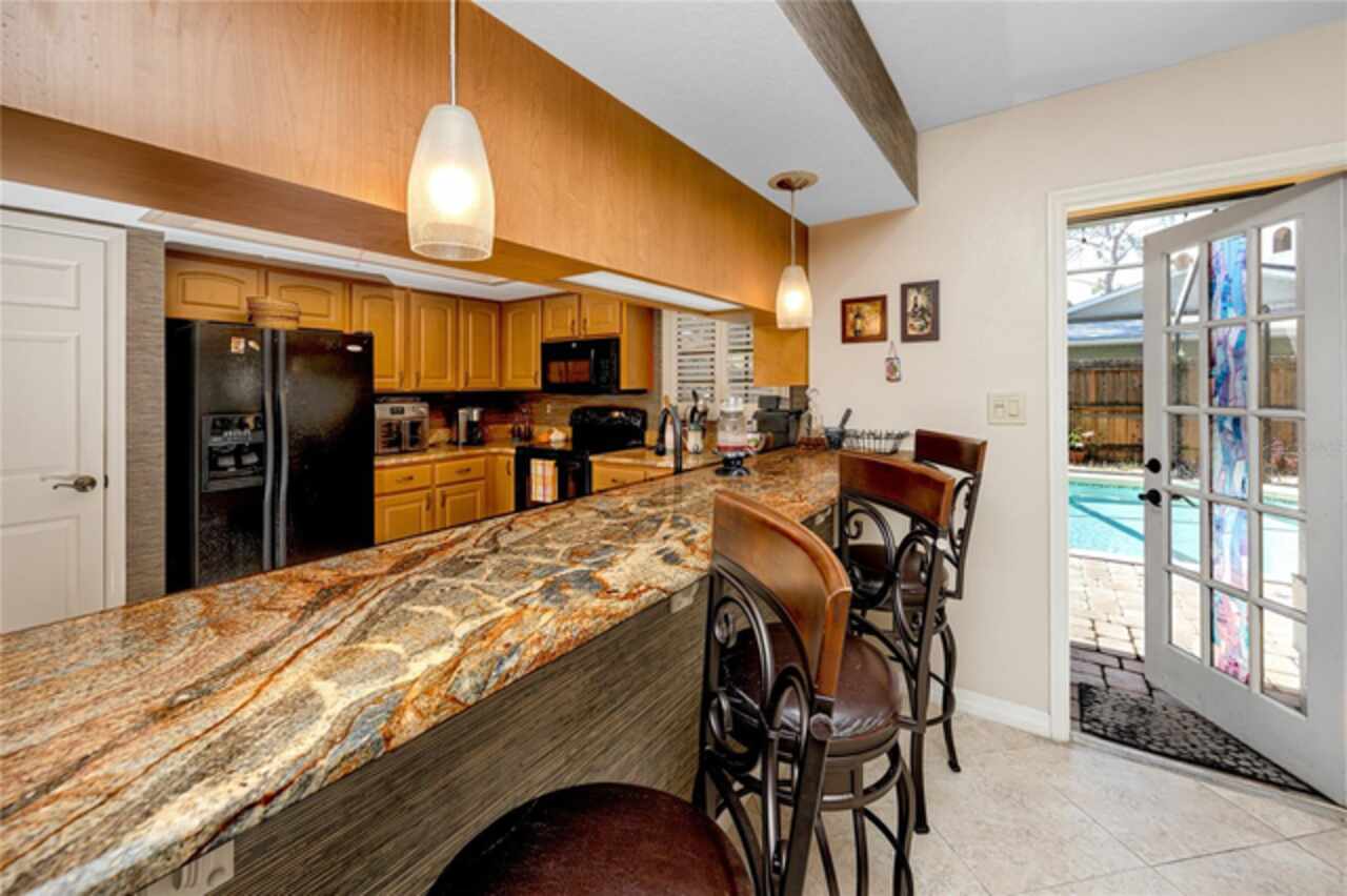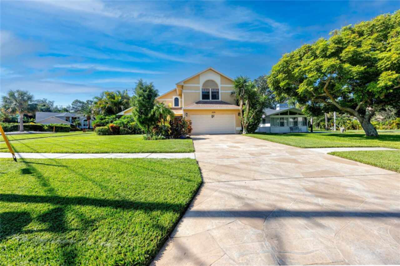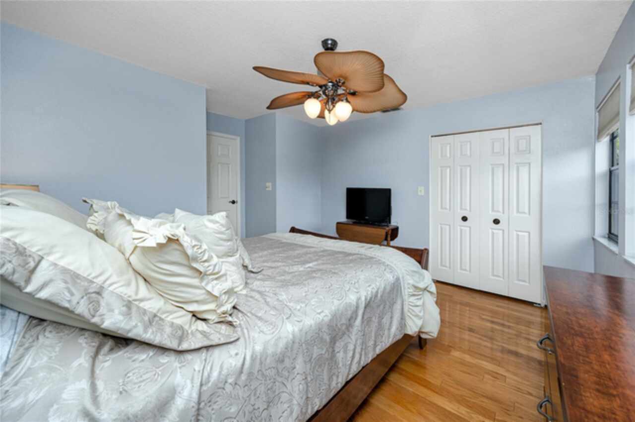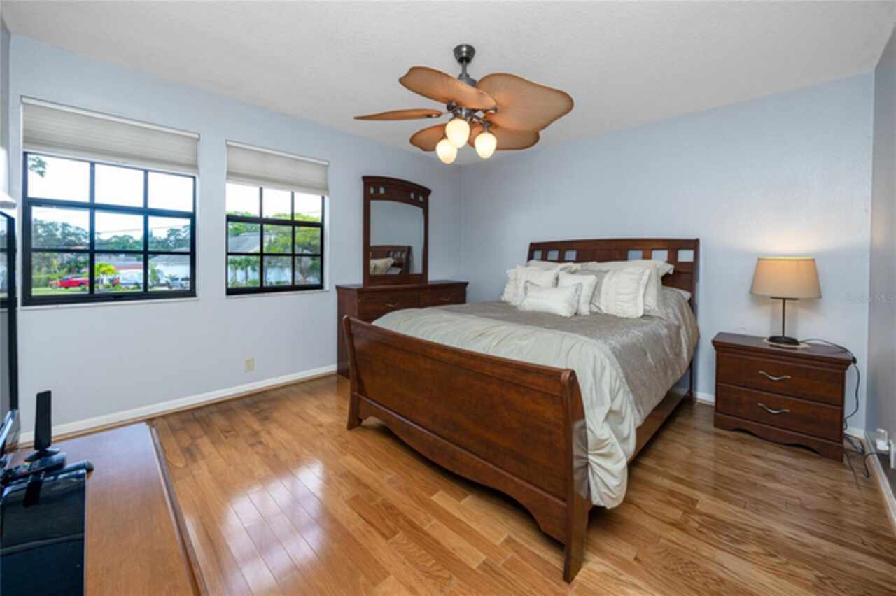 This stunning 3-bedroom, 3-bath pool home in Tarpon Springs sits proudly on an oversized corner lot, surrounded by mature landscaping and designed for both comfort and peace of mind. Meticulously maintained and thoughtfully updated, the home combines timeless style with practical upgrades, making it a rare move-in-ready find with no HOA restrictions. Step inside to soaring vaulted ceilings, rich wood flooring, 20-inch neutral ceramic tile, and an abundance of natural light. The flexible floor plan includes a spacious 18x26’ living room and formal dining area, while the inviting family room centers around a beautiful brick wood-burning fireplace. The kitchen is a chef’s delight, featuring swirled granite countertops, a pull-up island, wood cabinetry, a tray ceiling, closet pantry, breakfast bar with pendant lighting, and a dinette space—perfect for everyday meals or entertaining. Nearly all main-floor windows overlook the pool, keeping the home bright and connected to the outdoors. Upstairs, the expansive primary suite is a private retreat with a massive custom walk-in closet complete with California-style shelving and cedar parquet flooring. The spa-like ensuite bath offers a luminous walk-in shower with seating, his-and-her sinks, an upgraded Toto commode, and abundant cabinetry. Two additional bedrooms each include oversized vented walk-in closets, ensuring exceptional storage throughout. This home has been enhanced with countless extras that elevate everyday living such as a central vacuum system, epoxy-finished garage floors with generous storage, newer lighting and remote-controlled ceiling fans, and updated blinds and shades throughout. For added peace of mind, it features a whole-home reverse osmosis system, and newer solar panels that power the entire home. Outdoor living is equally impressive. The screened pool area includes paver decking, a sparkling pool, and a covered seating area that together create a true tropical oasis. A separate wood-decked space under roof is ideally suited for a future hot tub. The fully fenced yard ensures privacy and plenty of room to enjoy the Florida lifestyle year-round. Located just minutes from Sunset Beach, Fred Howard Park, the historic Sponge Docks, marinas, and downtown Tarpon Springs, this home offers the perfect blend of tranquility and convenience. Zoned to top-rated schools and surrounded by local charm, it’s an ideal setting for both everyday living and memorable gatherings. Beautifully maintained, upgraded with high-quality features, and free of HOA restrictions, this Tarpon Springs home truly has it all. Schedule your private showing today and experience the perfect balance of peace of mind and Florida living.