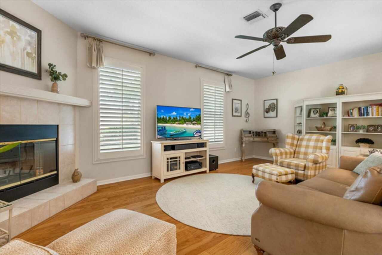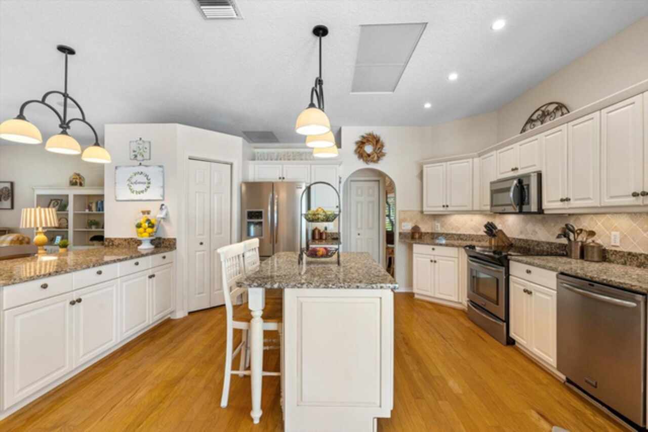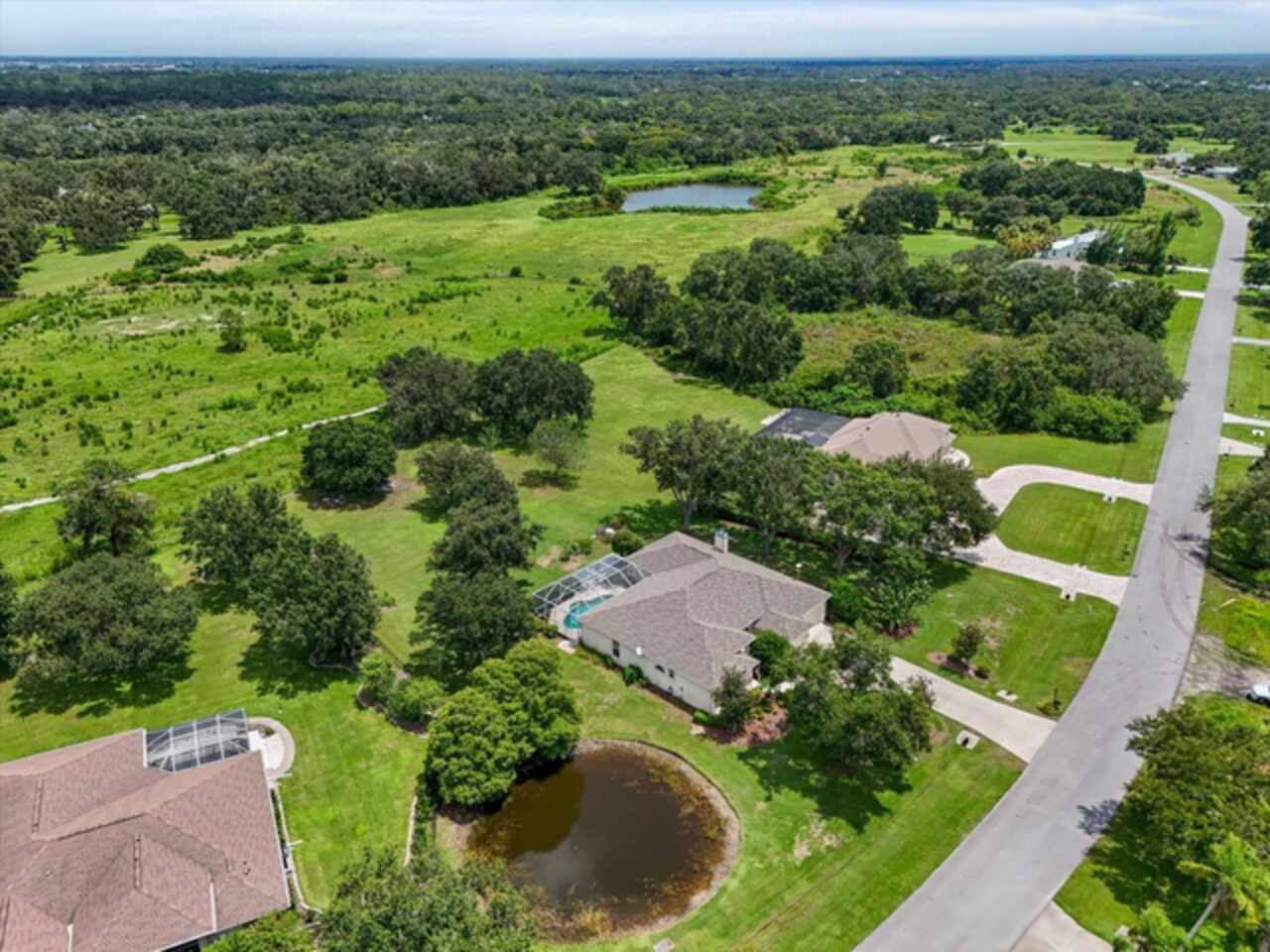 Nestled on over an acre of beautifully manicured and mature landscaping, this custom-built Augusta model, featuring 3 bedrooms, 2 baths, and a den, offers a rare combination of elegance & comfort. The beautiful double glass front entry with matching transom windows sets the tone, opening to soaring 12-foot ceilings, refined crown molding, and an abundance of natural light. The Family room is anchored by a lovely wood-burning fireplace, while the den features Bay Window with custom built-in seating, blending functionality with architectural charm. The gourmet kitchen is the heart of the home, showcasing a granite-topped island, premium finishes, and seamless flow for both intimate gatherings and grand entertaining. The expansive master suite is a private sanctuary, complete with large walk-in closet En-suite bathroom boasting double sink vanity, frameless glass shower, roman tub, and bidet. Sliding doors allow easy access to pool deck and lots of light. Practical touches such as a well-appointed laundry room with cabinetry and a utility tub access the spacious 3 car garage equipped with workbench and extra storage. Outdoors, the property embraces Florida living at its finest. A tranquil pond, shared with a neighboring property, provides the perfect setting for fishing and quiet reflection. At the same time, the surrounding grounds attract deer, turkeys, and other wildlife, not to mention abundant butterflies in the garden, creating a private nature retreat. Golf cart accessibility enhances the lifestyle, and additional features such as New Roof installed (2021), Well Pump (2025), Hot Water Heater (2022), solar film on south facing windows, a water softener all add both efficiency and convenience. Located just 30 min. from downtown Sarasota, 20 min. to Waterside LWR, Only 11 miles from I-75, shopping & Restaurants. Convenient to both Siesta and Lido’s beautiful beaches and 15 min. from the Majestic Myakka State Park. With timeless design and serene surroundings, this home is a refined retreat where luxury meets tranquility. Schedule you showing today!