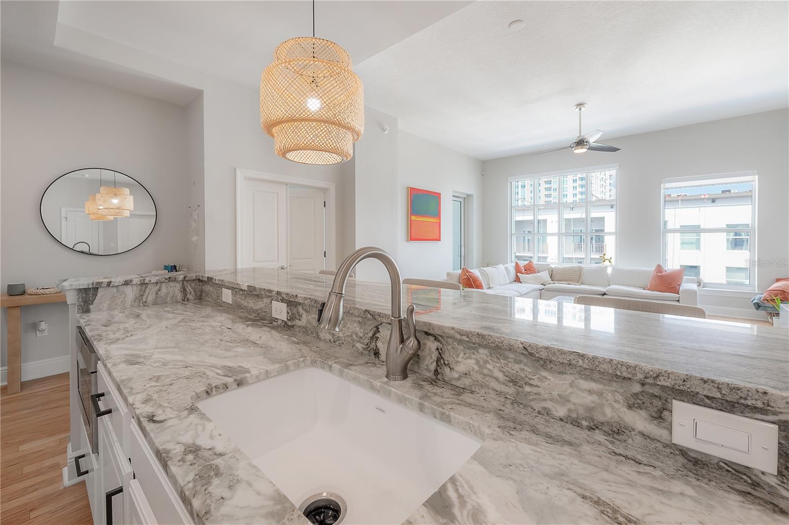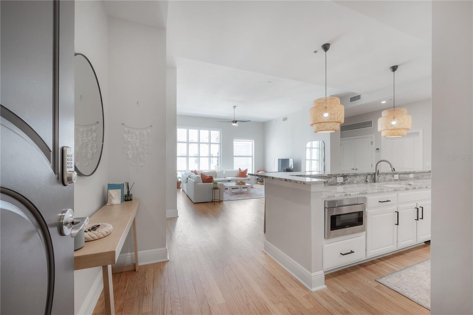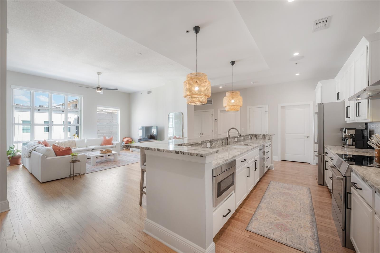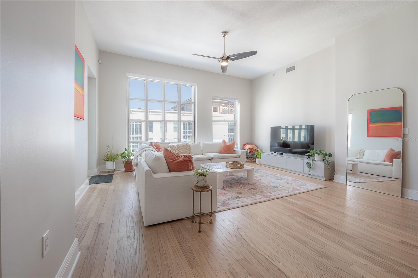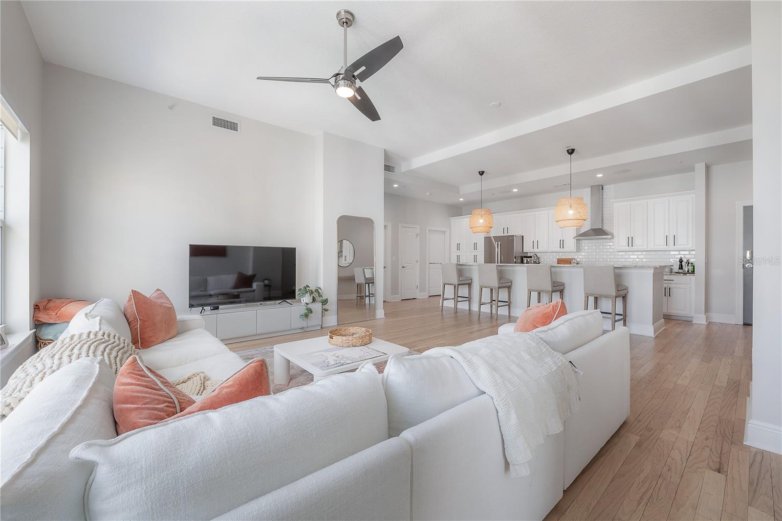 Under contract-accepting backup offers. Welcome to your own slice of paradise in the heart of Channelside! This recently updated 10th-floor residence in Ventana is a rare gem that seamlessly blends luxury, convenience, and style. Step inside this exquisite 2-bedroom, 2-bathroom condo and you’ll immediately notice how bright and airy the space feels. Soaring 12-foot ceilings, an open split floor plan, and neutral tones create a light-filled atmosphere that feels both spacious and inviting. Whether entertaining guests or enjoying quiet time, every room is designed to feel comfortable and up lifting. The refinished hardwood floors add warmth and flow beautifully throughout, while the kitchen is a true showstopper with natural quartzite countertops, solid white wood cabinets, and premium Bosch stainless steel appliances. The bathrooms continue the elevated feel with quartz counters and sleek, modern fixtures. New window shades allow you to control the natural light while maintaining privacy, and a brand-new Trane AC ensures year-round comfort. Step out onto the spacious balcony to soak in views of the Garrison Channel and the fourth-floor pool and spa recreation area, perfect for relaxing with a morning coffee or unwinding at the end of the day. Ventana is a boutique luxury community that feels like a cosmopolitan retreat, offering top-tier amenities such as a pool, spa, sauna, gym, gas grills, outdoor dining spaces, and a dedicated concierge service. The location is unbeatable. Just outside your door you’ll find grocery stores, salons, spas, restaurants, and nightlife. Sparkman Wharf, Water Street, and the cruise terminals are all just moments away, letting you experience the best of Tampa living with ease. Don’t miss this opportunity to own a bright, airy, and luxurious home in Channelside. This condo is the perfect balance of modern design, comfort, and convenience ready for you to call it home.