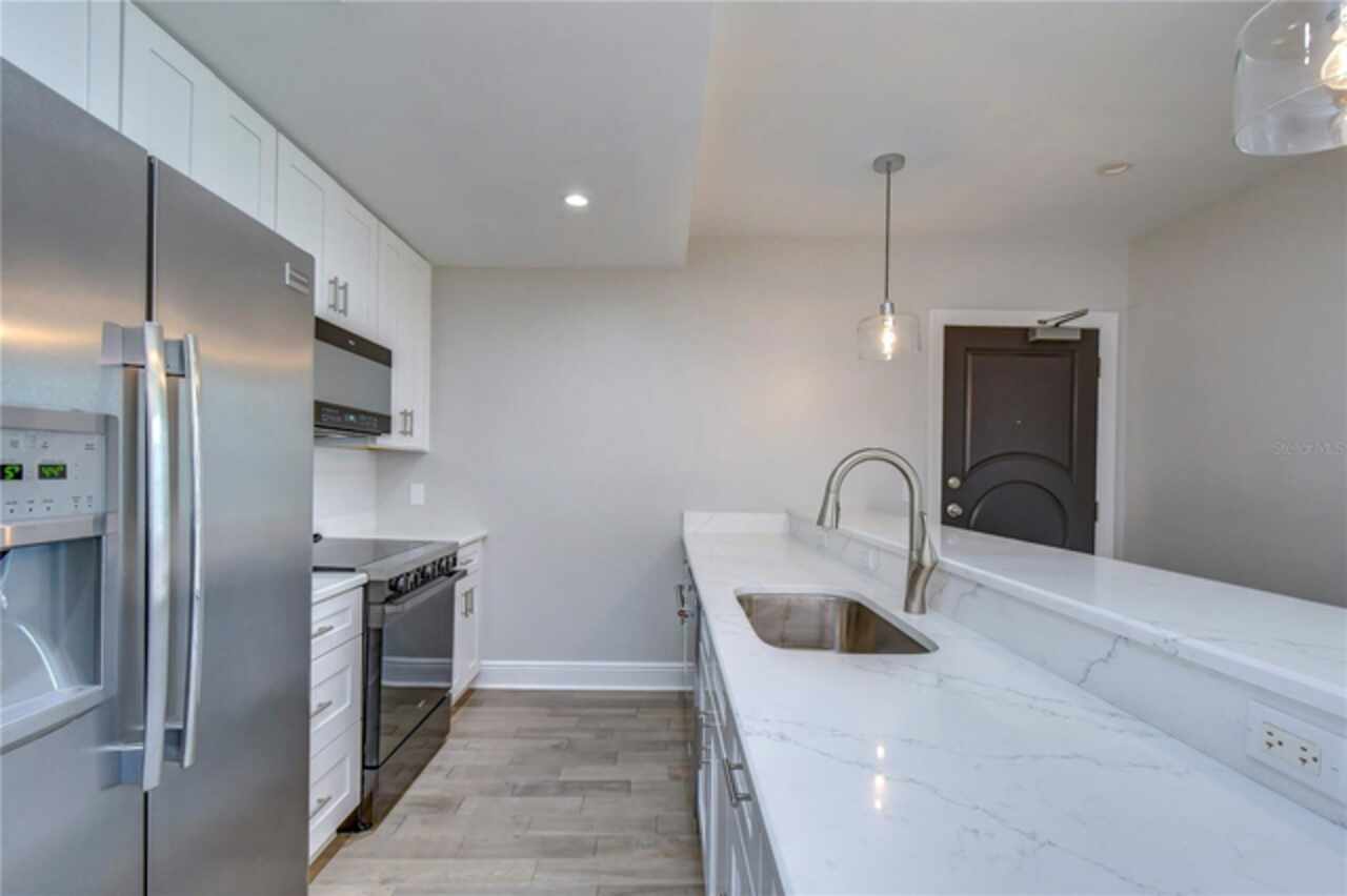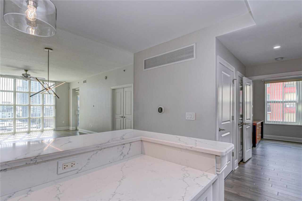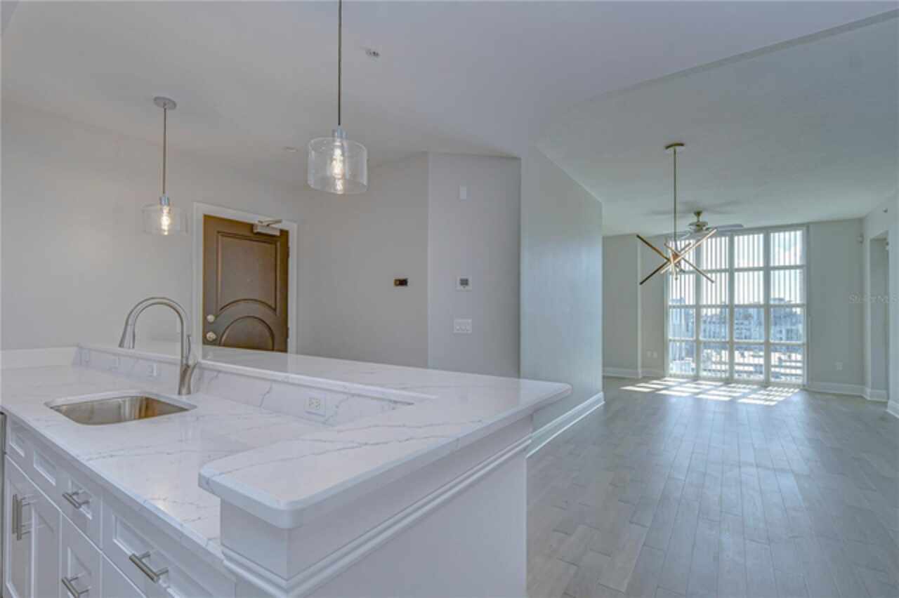 Welcome home! This newly renovated, contemporary 7th floor, 2/2 condo in the desirable Ventana building is located in the heart of Channelside, offering the ultimate city living experience. As you step inside, you'll immediately notice the thoughtful design of the open floor plan and the Chef's kitchen with a large bar for casual meals or entertaining guests. The kitchen blends seamlessly with the dining and family room area with floor to ceiling windows serving as the backdrop. The unit has been freshly painted throughout, with new quartz countertops in the kitchen and bathrooms, updated cabinets in the kitchen and bathrooms, upgraded kitchen appliances and new luxury vinyl plank flooring. The floor to ceiling windows offer beautiful city views and an abundance of natural light. The master suite is well appointed and spacious, with a luxury bath complete with dual sinks, walk in shower and quartz countertops. The second bedroom can easily function as an office for those who work from home or a guest bedroom with access to the private bathroom. The oversized balcony offers a great spot for your morning cup of coffee or for entertaining friends. Ventana is conveniently located close to the vibrant and popular destinations of Riverwalk, Sparkman Wharf, Water Street, Amalie Arena with shopping and dining conveniently located nearby. Ventana offers first class amenities including an onsite concierge, resort style pool/spa, fitness center, sauna, cabana with outdoor grills and a spacious clubhouse area. Enjoy Channelside living at its best at Ventana and make this your new home. The unit comes with two assigned garage parking spaces as well as a climate-controlled storage unit. Schedule your private showing today!