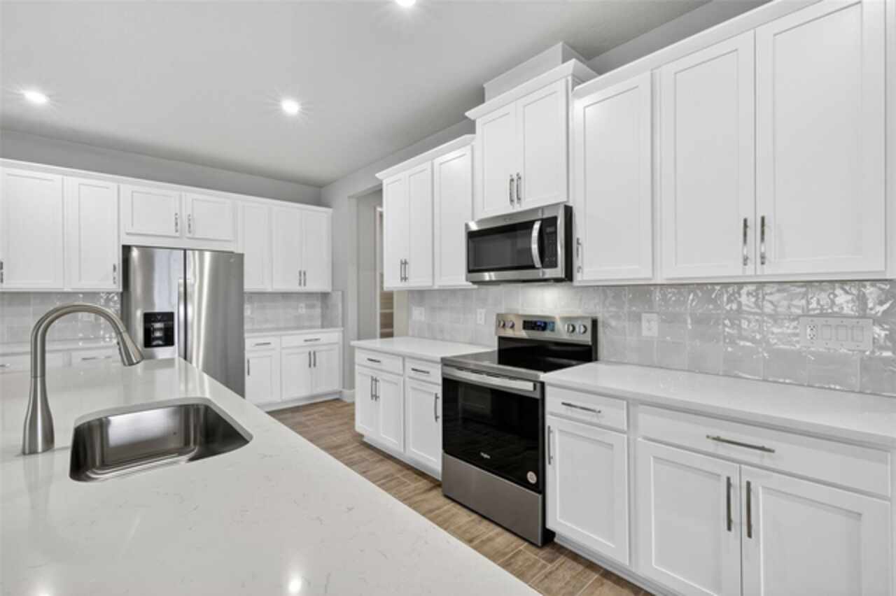 Under Construction. Welcome to the Mesa Verde Craftsman style Elevation Elevation, a stunning and spacious home located in the gated community of Windwater in Parrish, FL. This exquisite property offers 2, 600 square feet of beautifully designed living space, featuring 4 bedrooms, 3 bathrooms, a study, and a 3-car garage. This home combines elegance and comfort, making it perfect for families seeking a luxurious lifestyle. As you step inside, you'll be captivated by the open floor plan and design elements. The main living areas and study feature Debary 7x22 wood-look tile flooring, adding both warmth and durability. The kitchen is a chef's dream, boasting 42" Barnett Painted Linen cabinets and sleek Carrara Breve quartz countertops, perfect for culinary adventures and entertaining guests. The 8-foot doors throughout the home add to the sense of grandeur and spaciousness. The master suite is a true sanctuary, offering a spacious bedroom and a luxurious en-suite bathroom with dual vanities, and a separate shower. The additional bedrooms are generously sized, providing comfort and privacy for family members or guests. Outdoor living is a delight with the screened in covered lanai, perfect for hosting gatherings or simply relaxing while enjoying the beautiful Florida weather. The oversized corner lot provides ample space for outdoor activities and the potential to add a pool, creating your own private retreat. Windwater is renowned for its serene ambiance and prime location. Residents enjoy close proximity to schools, scenic parks, and a variety of shopping and dining options. With convenient access to both Tampa and Sarasota, you can enjoy the best of urban amenities while residing in a peaceful suburban setting. Move in ready, April/May 2025.Photos, renderings and plans are for illustrative purposes only and should never be relied upon and may vary from the actual home. Pricing, dimensions and features can change at any time without notice or obligation.