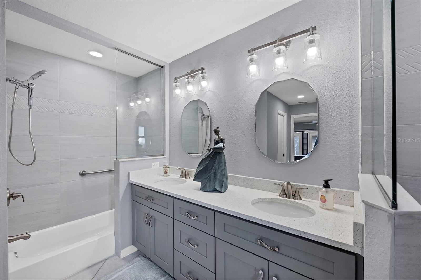 Discover your Florida waterfront dream home in the desirable Gulf Cove community! This beautifully remodeled 3-bedroom, 2-bath, 2-car garage pool home is perfectly situated on a quiet cul-de-sac with direct access to the Myakka River and Charlotte Harbor—ideal for boating and fishing enthusiasts. The interior was completely remodeled in 2023, featuring a stunning new kitchen with quartz countertops, tile backsplash, breakfast bar and nook, and stylish new lighting and ceiling fans throughout. The split floor plan offers privacy, with a spacious primary suite boasting dual closets and a luxurious new bathroom with dual vanities, a walk-in tile shower, and a separate tub/shower combo. The second bath conveniently opens to the pool lanai. Enjoy Florida living year-round in the large enclosed Florida room with new vinyl flooring, or relax by the heated pool surrounded by lush waterfront views. Additional upgrades include a 2023 A/C, 2022 roof with solar panels, whole-house generator, tankless water heater, and hurricane shutters. Gulf Cove residents can join the optional HOA for access to the community boat ramp, with no deed restrictions. Conveniently located near shopping, dining, world-class fishing, beautiful Gulf beaches, and two MLB Spring Training parks for the Atlanta Braves and Tampa Bay Rays—this home offers the best of the Southwest Florida lifestyle!