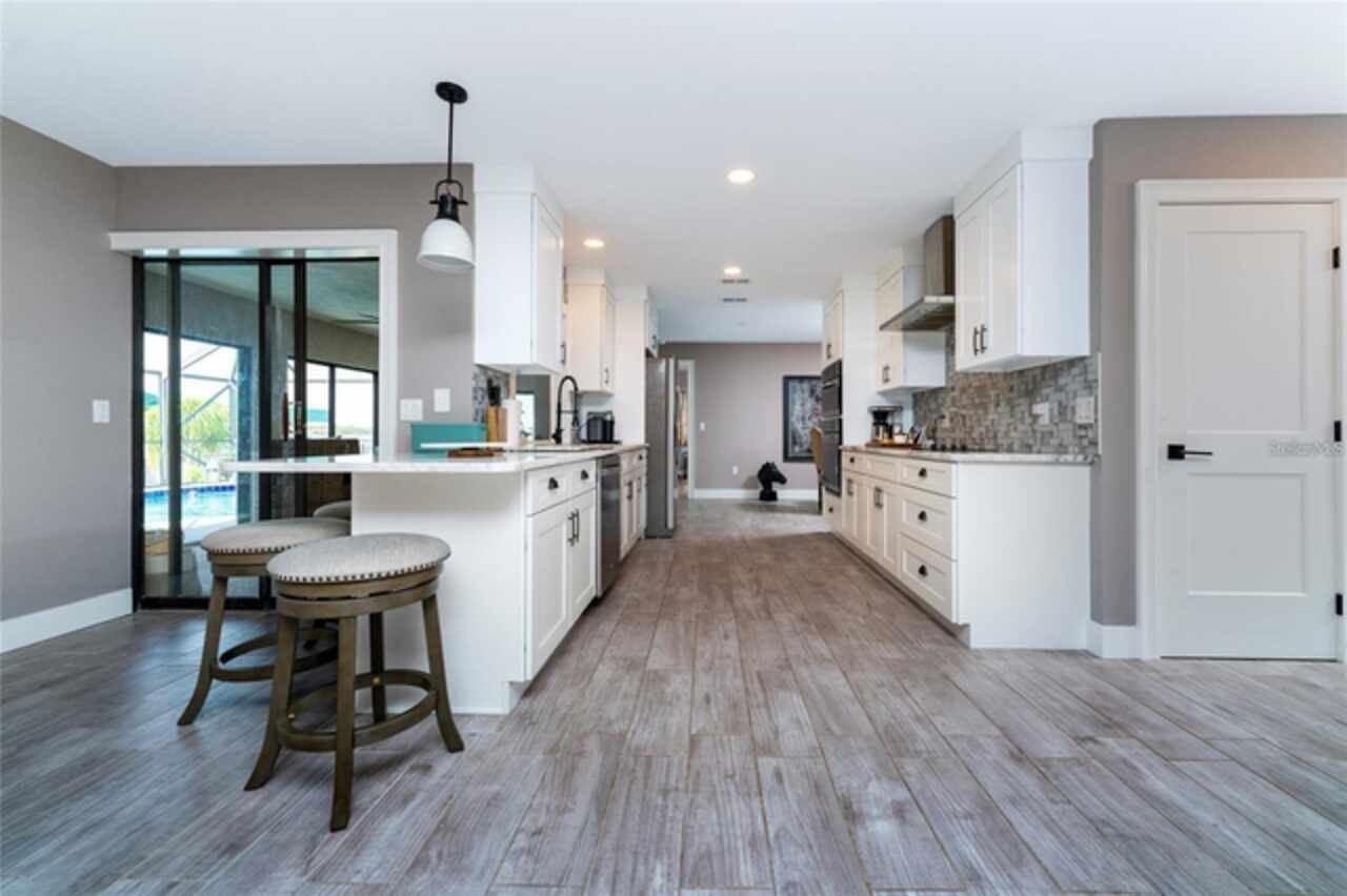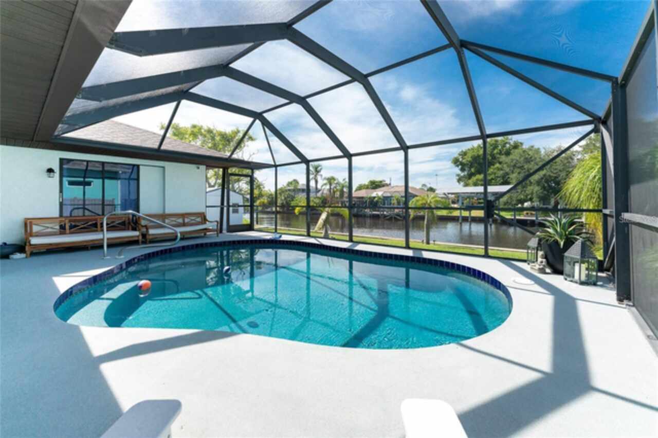 Welcome to your piece of Florida paradise! Located in the highly sought-after community of Gulf Cove. This property is a boater's dream! Open water access in a matter of minutes and with TENANTS already in place, this property offers immediate rental income potential. The home is centrally located near dining, shopping, and entertainment while also granting short access by boat or car to nearby beaches. Plus, no deed restrictions! This beautifully updated 3-bedroom, 2-bath pool home offers 2, 275 square feet of luxury living with an open, airy layout and top-tier finishes throughout. From the moment you step inside, you’ll notice the sleek, staggered modern tile flooring that flows seamlessly through the home. The chef’s kitchen is truly a focal point, featuring soft-close cabinetry, granite countertops with an under-mount sink, breakfast bar, matching tile backsplash, and top-of-the-line built-in Whirlpool and Frigidaire stainless steel appliances—all designed to inspire both everyday meals and elegant entertaining. The kitchen is open to the Family Room on one side and the Living/Dining room on the other. Natural light fills the home through eight sliding glass doors, including four pocket sliders that create a seamless transition to the outdoors. Each bedroom offers generous space and walk-in closets, while the primary suite stands out with marble tile floors, dual vanities, a custom euro-glass shower, and spacious his-and-hers walk-in closets. Recent upgrades completed in 2019 and 2020 include a new roof, A/C system, updated electrical panel, all new interior doors and flooring, custom kitchen and bathroom cabinetry, granite countertops throughout, fresh baseboard trim, updated lighting, ceiling fans, faucets, and hardware. No detail was overlooked in bringing this home to life. The private pool area features a wet pebble edge finish, a resurfaced crushed quartz deck, and a screened lanai with a convenient pool bath. Step outside to a generous patio area, perfect for outdoor dining or relaxing in the Florida sunshine. With 84 feet of concrete seawall, there’s ample space to install your own dock and boat lift. Enjoy direct access to Charlotte Harbor—you're just minutes away from open water adventures! This location is as convenient as it is beautiful, with five regional airports within an hour’s drive—ideal for travel or hosting guests. Whether you're enjoying a quiet sunrise, a lively sunset gathering, or anything in between, this waterfront home offers the very best of Florida living.
