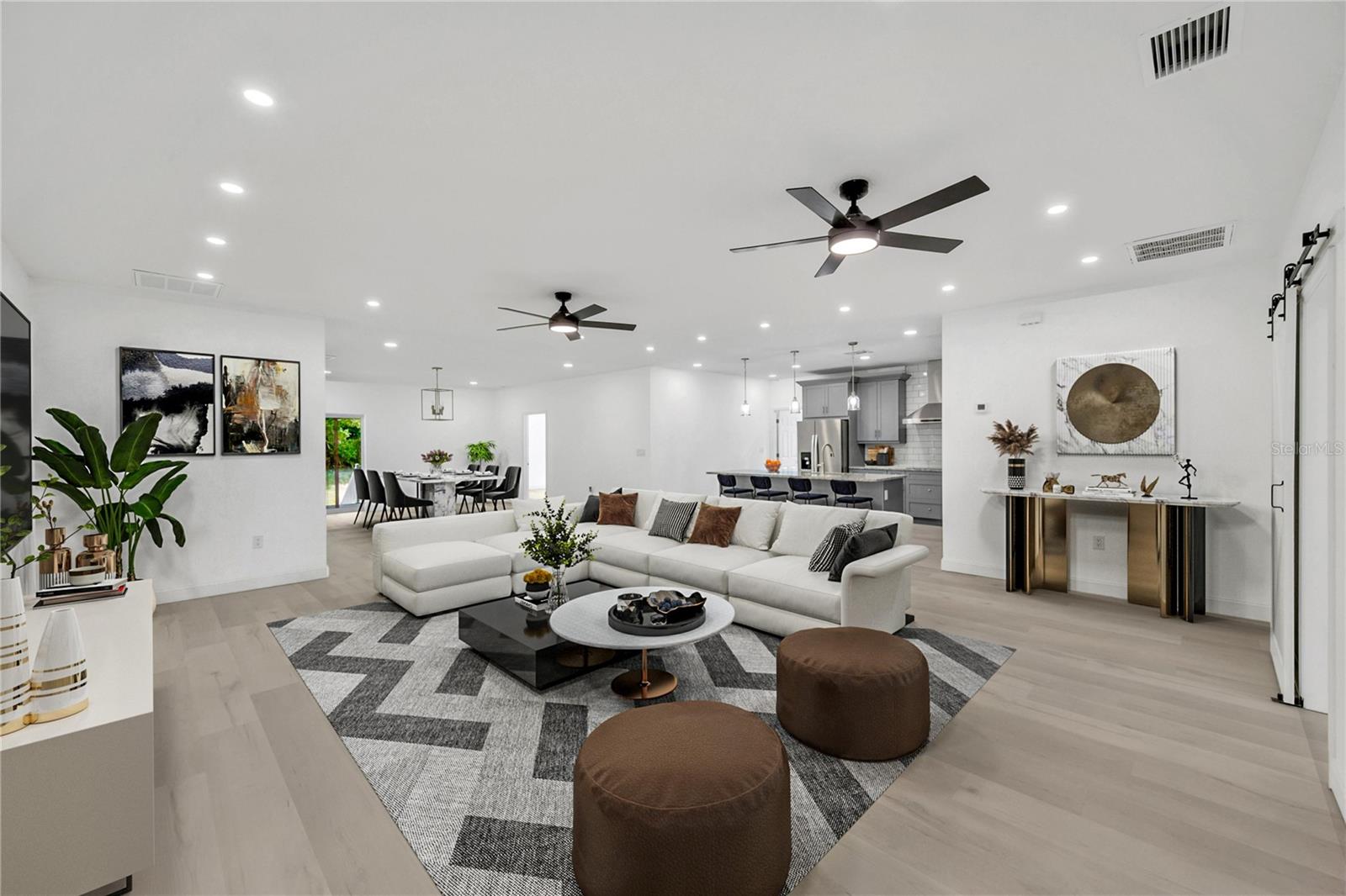One or more photo(s) has been virtually staged. BRAND NEW CONSTRUCTION – 2, 815 SQ FT • DOUBLE PRIMARY SUITES • OVERSIZED ISLAND • WET ROOM SPA BATH • BONUS FLEX ROOM • NO HOA OR CDD • LARGE FRONT PORCH • EXPANSIVE COVERED LANAI • TREE-LINED NEIGHBORHOOD Experience luxury living without limits in this brand-new 4-bedroom, 3-bath custom home tucked among Dade City’s rolling oaks. Designed for modern country living, this 2, 800+ sq ft residence includes a flexible bonus room ideal for a home office, gym, playroom, or creative studio—blending craftsmanship, space, and privacy with timeless style. At the heart of the home, an oversized island anchors a chef’s kitchen with stone countertops, custom cabinetry, and premium appliances, opening to a bright, spacious great room filled with natural light. The seamless design extends to an expansive covered lanai with a full outdoor kitchen and no rear neighbors—your private retreat for gatherings or quiet evenings under the stars The primary suite offers a spa-style wet room with soaking tub, walk-in shower, and dual vanities, while a second suite adds flexibility for guests or multi-generational living. A large front porch, expansive covered lanai, and an oversized lot provide the freedom to live beautifully without restrictions. Built with exceptional attention to detail, this home rests on elevated stem walls for lasting stability and peace of mind. Bedrooms three and four form a private family or guest wing joined by a Jack-and-Jill bath. A spacious laundry and mudroom off the garage add convenience and storage, while the garage itself features epoxy flooring and impressive ceiling height, designed to accommodate a vehicle lift or extra storage for hobbyists and collectors. Every element reflects superior craftsmanship—from premium flooring and recessed lighting to energy-efficient windows and thoughtful smart-home design. The oversized lot offers room for a pool, garden, or future expansion, framed by mature oaks and natural beauty. Just minutes from historic downtown Dade City, you’ll enjoy boutique shopping, cafés, golf, the Kumquat Festival, and local landmarks like Withlacoochee River Park and Scotland Yards Golf Club. Every day here feels like a weekend retreat—crafted for comfort, connection, and calm. For those seeking a multi-generational or side-by-side lifestyle, a similar 2, 815 sq ft new home by the same builder is available next door at 12500 Green Oak Ln (TB8434698)—perfect for family or friends who want to share in this peaceful, elevated setting.