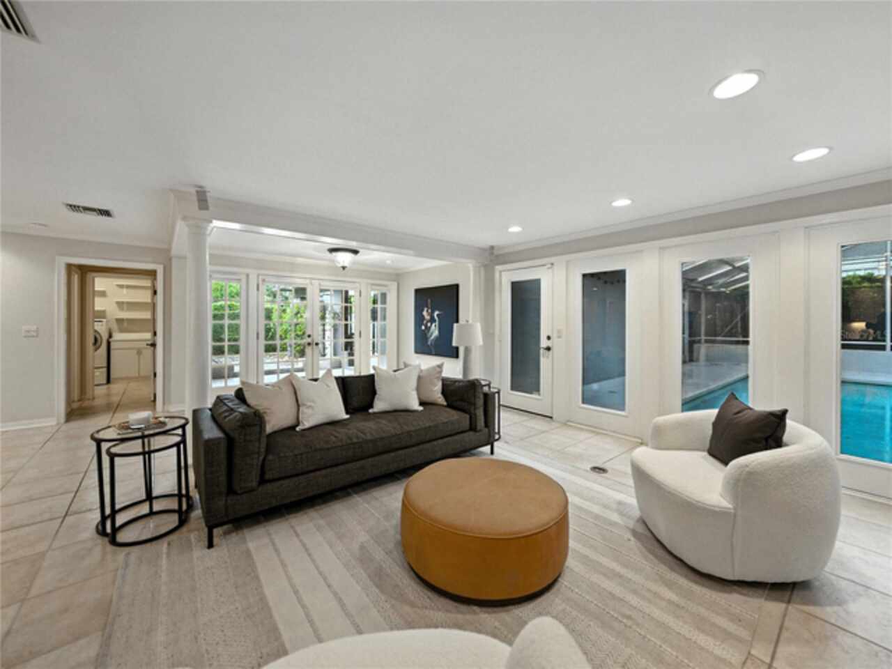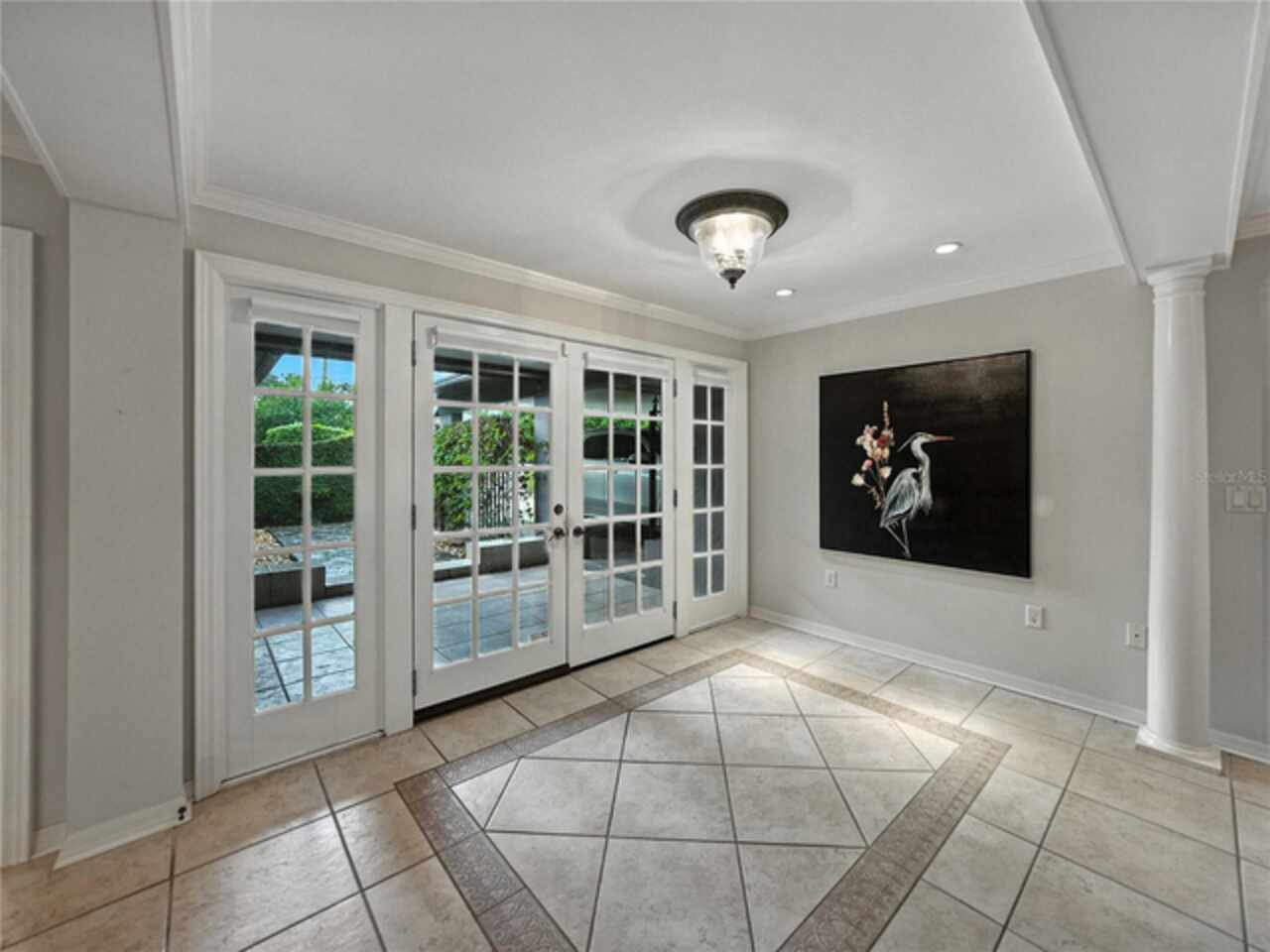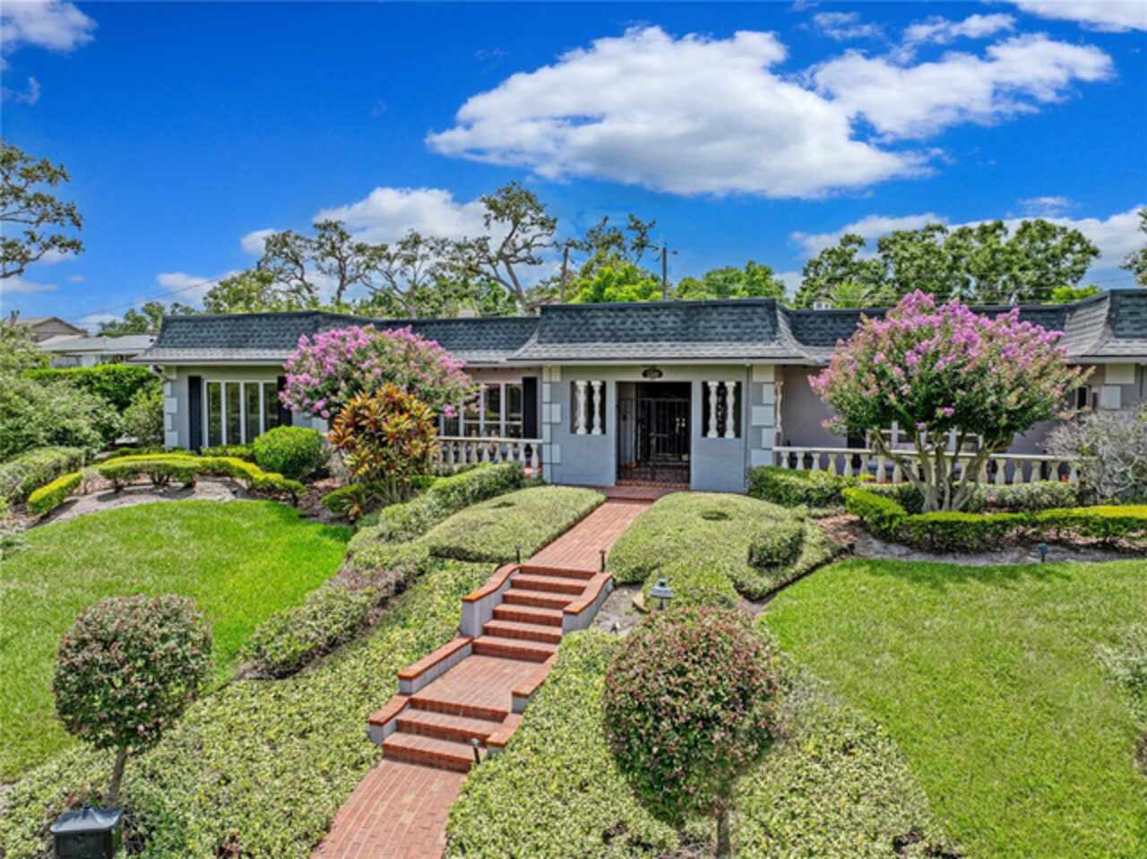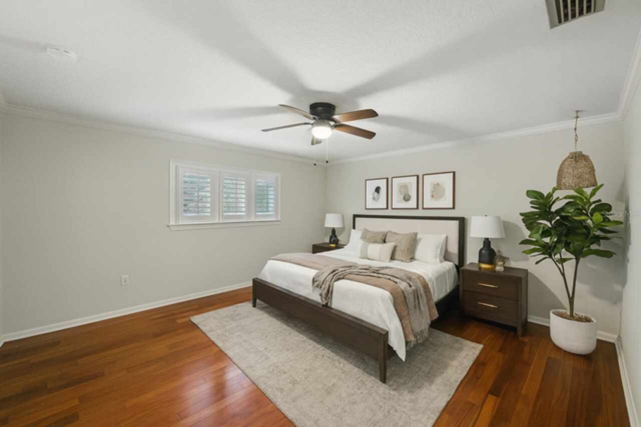 Discover the epitome of French-inspired elegance with this extraordinary architectural gem located in the highly desirable Scott Lake area. This home is situated on a tranquil cul-de-sac, offering stunning views and deeded access to the lake. As you approach via the impressive brick walkway, you'll be captivated by the lush landscaping and timeless brick terraces that enhance the home's allure. Enter through the grand double doors into a space where elegance meets craftsmanship. This exceptional 4-bedroom, 3.5-bathroom residence boasts exquisite architectural details, plantation shutters, and showcases luxury and attention to detail at every turn. The foyer greets you with elegant marble tile and authentic grasscloth wallpaper, setting a tone of richness throughout. Leaded-glass decorative windows introduce you to a charming step-down entertaining room, seamlessly flowing into the formal dining room. With Brazilian cherry hardwood floors and neutral tones adorned with crown molding, the open-concept living area is a masterpiece of design, centered around a gourmet chef’s kitchen. This kitchen is both elegant and functional, featuring an oversized quartz waterfall island, two-tone custom cabinetry, a hidden custom pantry, and top-tier stainless steel appliances, including a Sub-Zero refrigerator. The butler’s pantry, equipped with a second Sub-Zero refrigerator, enhances the home’s entertaining capabilities. Retreat to the master suite, offering serene lake views, a spacious walk-in closet, and a beautifully updated en-suite bath. Additional bedrooms feature their own en-suite bathrooms, with a fourth bedroom perfect for guests or as a home office. The screened-in lanai is an entertainer’s paradise, with floor-to-ceiling windows offering uninterrupted views of the sparkling, saltwater heated pool. This home is equipped with 2 new A/C units and a whole-home generator, ensuring year-round comfort and security. With its thoughtful design, timeless upgrades, and elegant lakeside setting, this home is a must-see. Schedule a private showing to experience its unmatched beauty and charm firsthand.