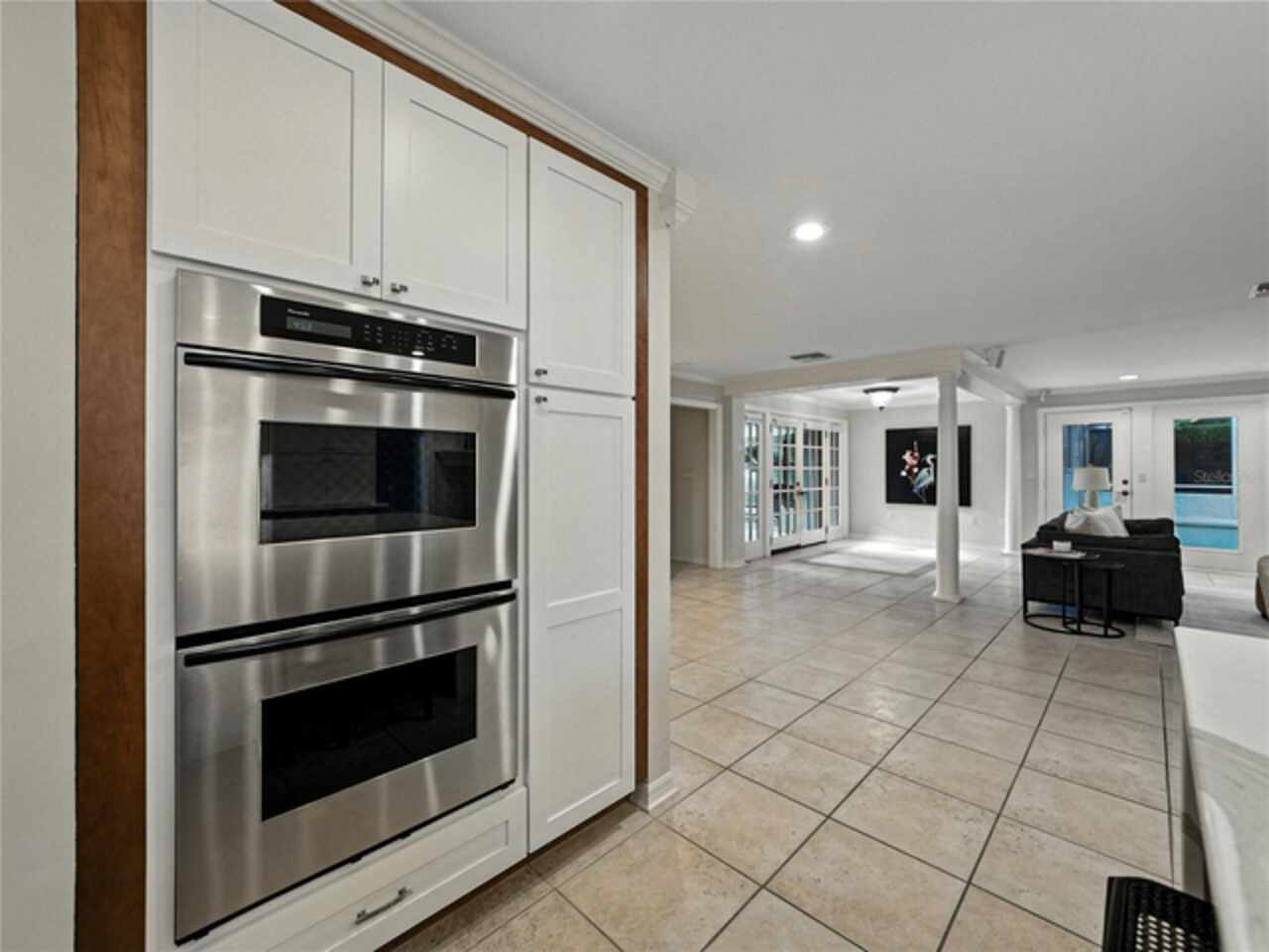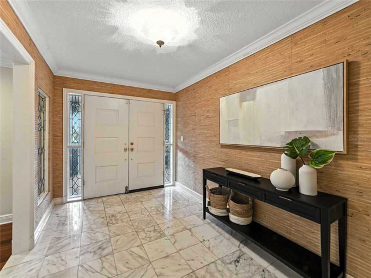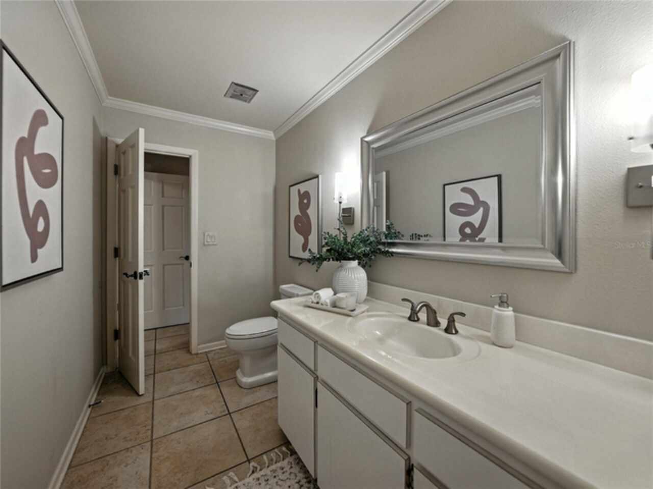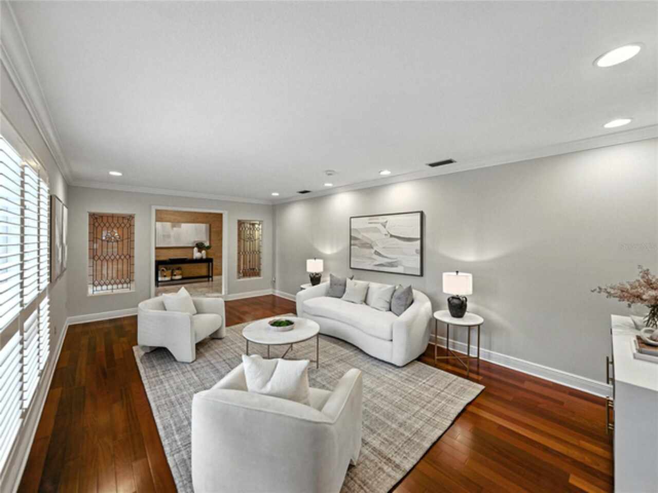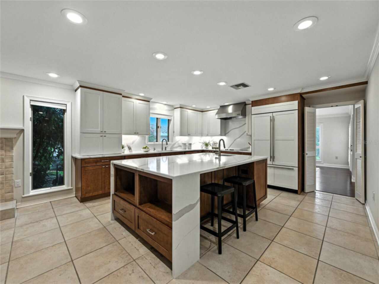 Discover the epitome of French-inspired elegance with this extraordinary architectural gem located in the highly desirable Scott Lake area. This home is situated on a tranquil cul-de-sac, offering stunning views and deeded access to the lake. As you approach via the impressive brick walkway, you'll be captivated by the lush landscaping and timeless brick terraces that enhance the home's allure. Enter through the grand double doors into a space where elegance meets craftsmanship. This exceptional 4-bedroom, 3.5-bathroom residence boasts exquisite architectural details, plantation shutters, and showcases luxury and attention to detail at every turn. The foyer greets you with elegant marble tile and authentic grasscloth wallpaper, setting a tone of richness throughout. Leaded-glass decorative windows introduce you to a charming step-down entertaining room, seamlessly flowing into the formal dining room. With Brazilian cherry hardwood floors and neutral tones adorned with crown molding, the open-concept living area is a masterpiece of design, centered around a gourmet chef’s kitchen. This kitchen is both elegant and functional, featuring an oversized quartz waterfall island, two-tone custom cabinetry, a hidden custom pantry, and top-tier stainless steel appliances, including a Sub-Zero refrigerator. The butler’s pantry, equipped with a second Sub-Zero refrigerator, enhances the home’s entertaining capabilities. Retreat to the master suite, offering serene lake views, a spacious walk-in closet, and a beautifully updated en-suite bath. Additional bedrooms feature their own en-suite bathrooms, with a fourth bedroom perfect for guests or as a home office. The screened-in lanai is an entertainer’s paradise, with floor-to-ceiling windows offering uninterrupted views of the sparkling, saltwater heated pool. This home is equipped with 2 new A/C units and a whole-home generator, ensuring year-round comfort and security. With its thoughtful design, timeless upgrades, and elegant lakeside setting, this home is a must-see. Schedule a private showing to experience its unmatched beauty and charm firsthand.