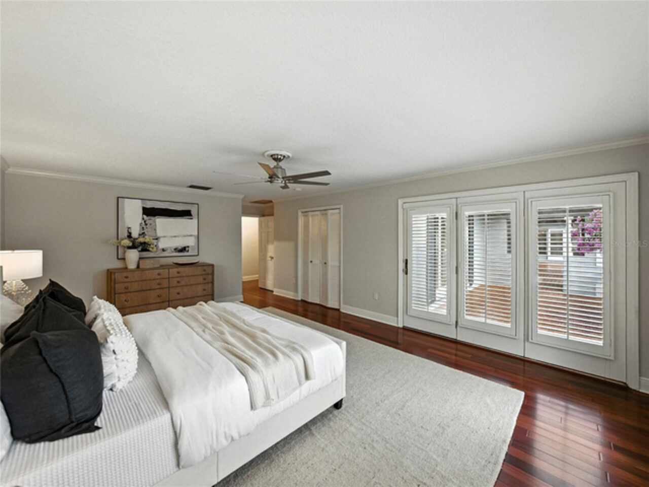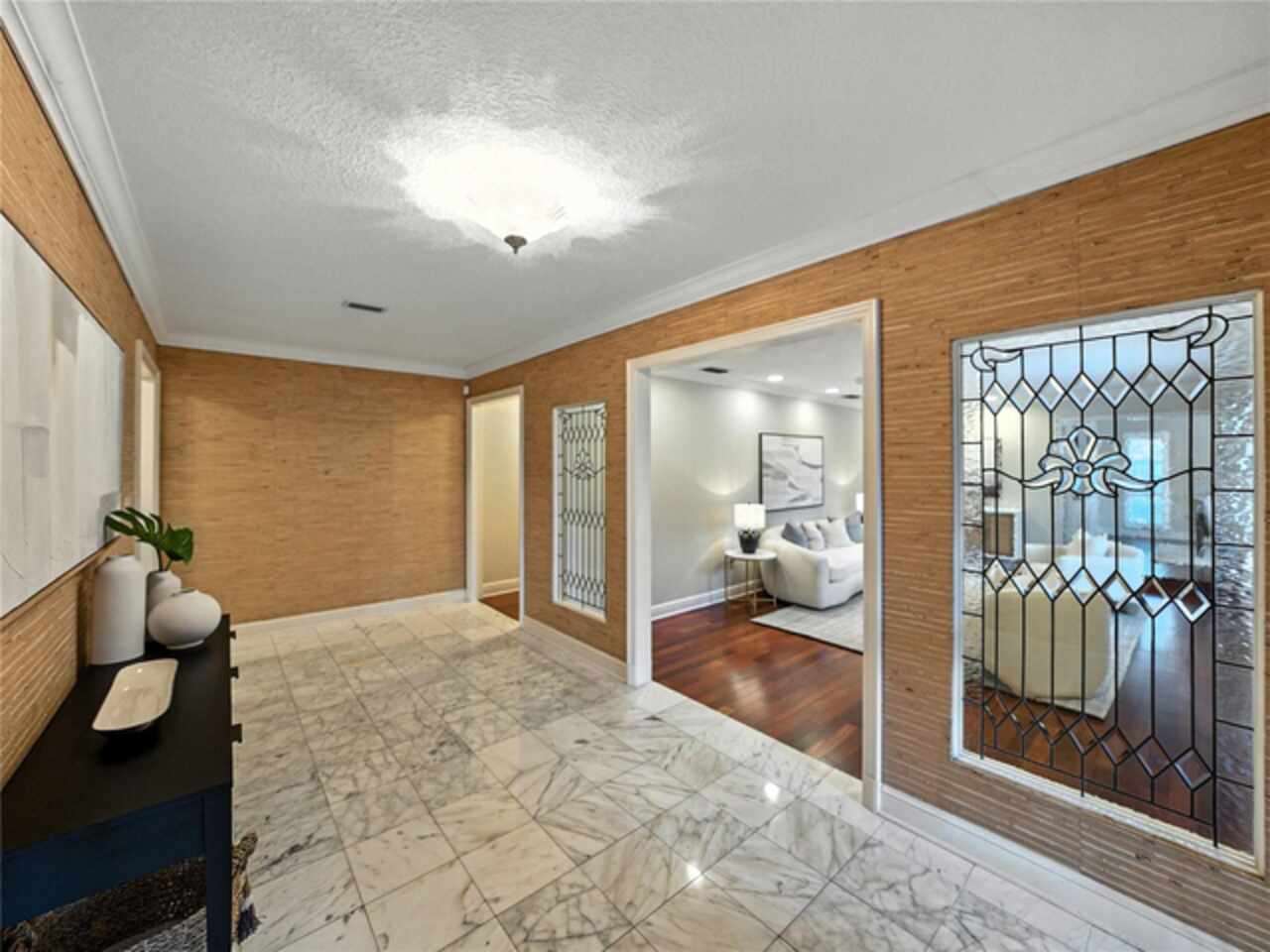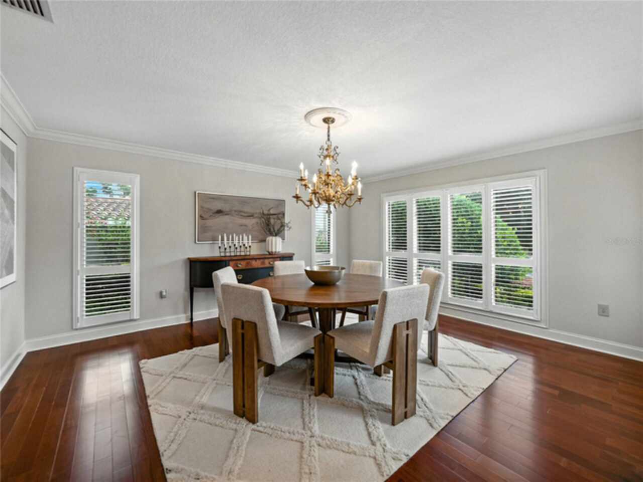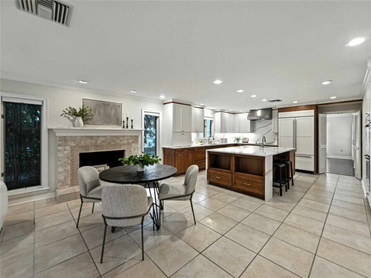 Discover the epitome of French-inspired elegance with this extraordinary architectural gem located in the highly desirable Scott Lake area. This home is situated on a tranquil cul-de-sac, offering stunning views and deeded access to the lake. As you approach via the impressive brick walkway, you'll be captivated by the lush landscaping and timeless brick terraces that enhance the home's allure. Enter through the grand double doors into a space where elegance meets craftsmanship. This exceptional 4-bedroom, 3.5-bathroom residence boasts exquisite architectural details, plantation shutters, and showcases luxury and attention to detail at every turn. The foyer greets you with elegant marble tile and authentic grasscloth wallpaper, setting a tone of richness throughout. Leaded-glass decorative windows introduce you to a charming step-down entertaining room, seamlessly flowing into the formal dining room. With Brazilian cherry hardwood floors and neutral tones adorned with crown molding, the open-concept living area is a masterpiece of design, centered around a gourmet chef’s kitchen. This kitchen is both elegant and functional, featuring an oversized quartz waterfall island, two-tone custom cabinetry, a hidden custom pantry, and top-tier stainless steel appliances, including a Sub-Zero refrigerator. The butler’s pantry, equipped with a second Sub-Zero refrigerator, enhances the home’s entertaining capabilities. Retreat to the master suite, offering serene lake views, a spacious walk-in closet, and a beautifully updated en-suite bath. Additional bedrooms feature their own en-suite bathrooms, with a fourth bedroom perfect for guests or as a home office. The screened-in lanai is an entertainer’s paradise, with floor-to-ceiling windows offering uninterrupted views of the sparkling, saltwater heated pool. This home is equipped with 2 new A/C units and a whole-home generator, ensuring year-round comfort and security. With its thoughtful design, timeless upgrades, and elegant lakeside setting, this home is a must-see. Schedule a private showing to experience its unmatched beauty and charm firsthand.