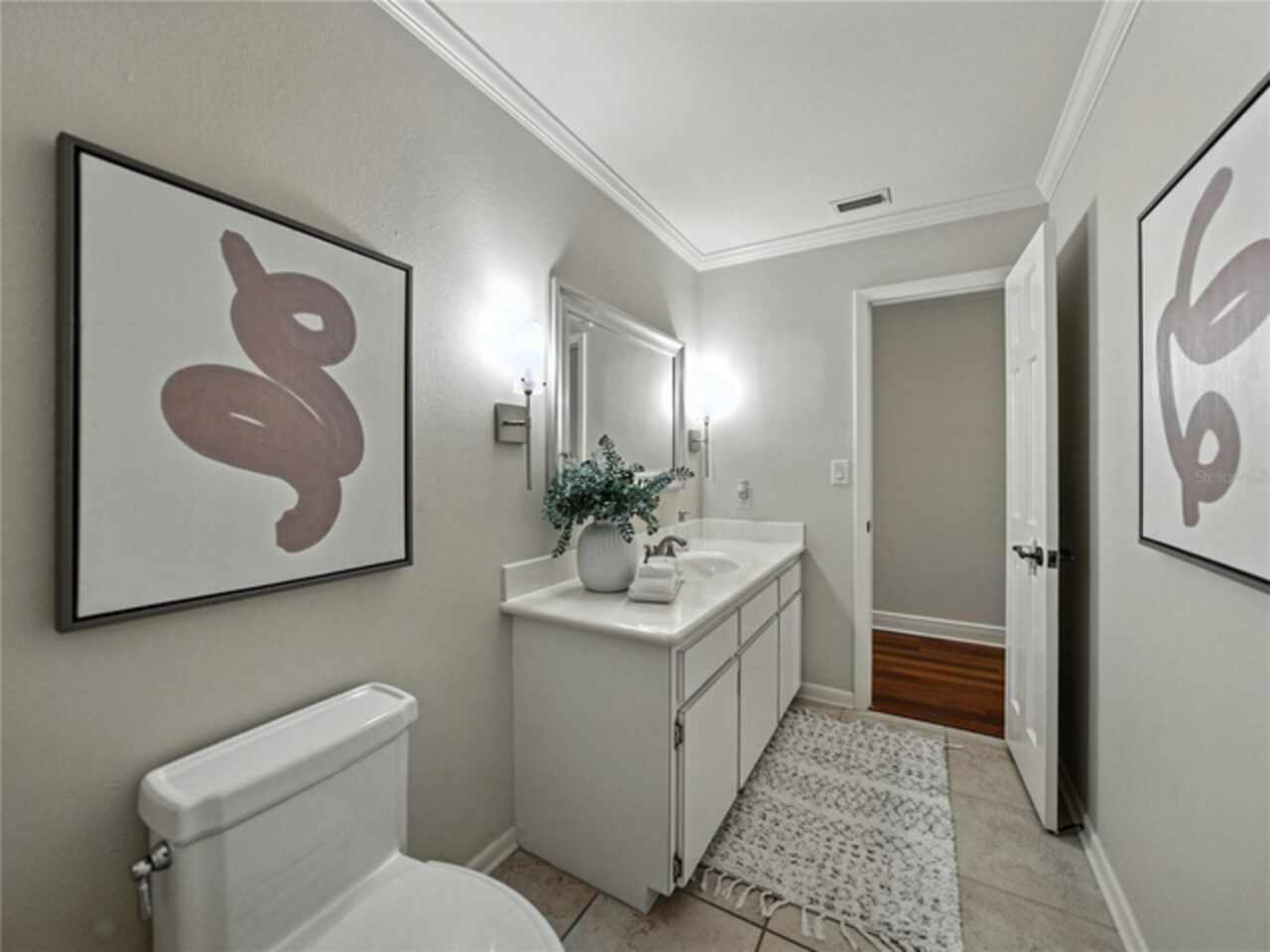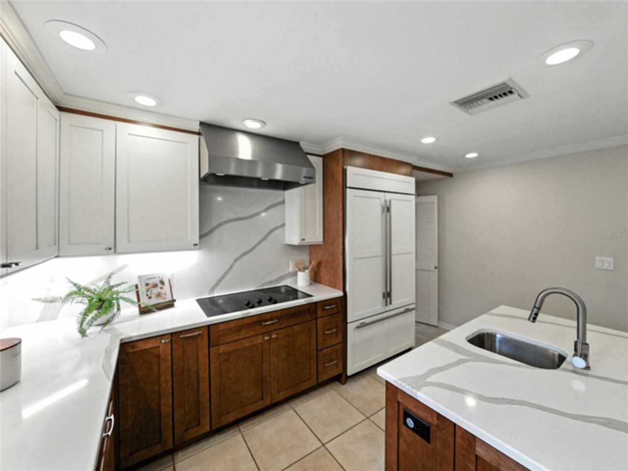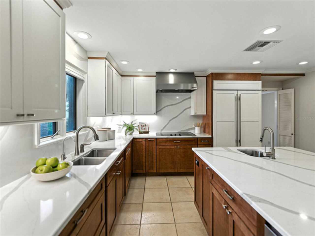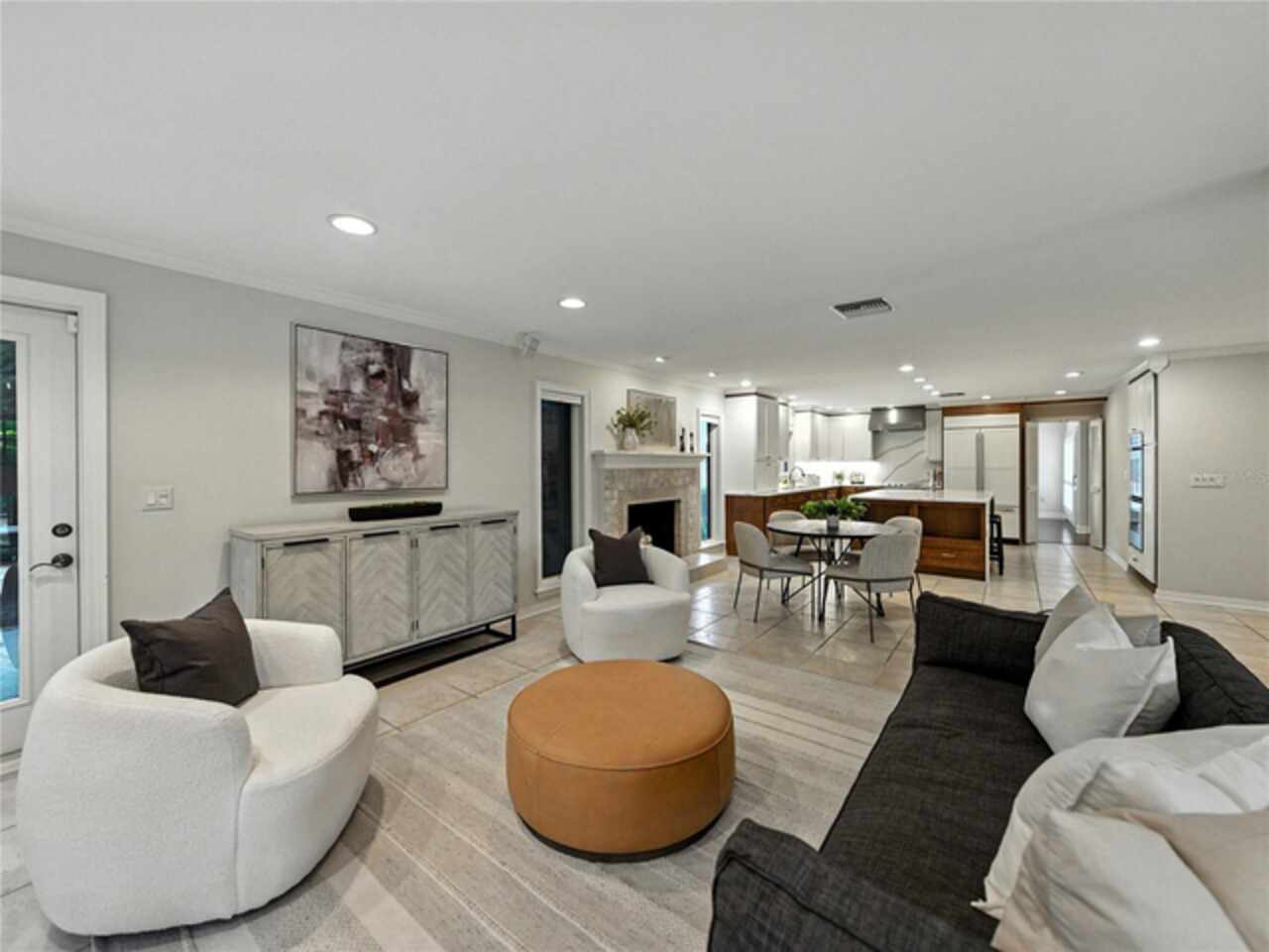 Discover the epitome of French-inspired elegance with this extraordinary architectural gem located in the highly desirable Scott Lake area. This home is situated on a tranquil cul-de-sac, offering stunning views and deeded access to the lake. As you approach via the impressive brick walkway, you'll be captivated by the lush landscaping and timeless brick terraces that enhance the home's allure. Enter through the grand double doors into a space where elegance meets craftsmanship. This exceptional 4-bedroom, 3.5-bathroom residence boasts exquisite architectural details, plantation shutters, and showcases luxury and attention to detail at every turn. The foyer greets you with elegant marble tile and authentic grasscloth wallpaper, setting a tone of richness throughout. Leaded-glass decorative windows introduce you to a charming step-down entertaining room, seamlessly flowing into the formal dining room. With Brazilian cherry hardwood floors and neutral tones adorned with crown molding, the open-concept living area is a masterpiece of design, centered around a gourmet chef’s kitchen. This kitchen is both elegant and functional, featuring an oversized quartz waterfall island, two-tone custom cabinetry, a hidden custom pantry, and top-tier stainless steel appliances, including a Sub-Zero refrigerator. The butler’s pantry, equipped with a second Sub-Zero refrigerator, enhances the home’s entertaining capabilities. Retreat to the master suite, offering serene lake views, a spacious walk-in closet, and a beautifully updated en-suite bath. Additional bedrooms feature their own en-suite bathrooms, with a fourth bedroom perfect for guests or as a home office. The screened-in lanai is an entertainer’s paradise, with floor-to-ceiling windows offering uninterrupted views of the sparkling, saltwater heated pool. This home is equipped with 2 new A/C units and a whole-home generator, ensuring year-round comfort and security. With its thoughtful design, timeless upgrades, and elegant lakeside setting, this home is a must-see. Schedule a private showing to experience its unmatched beauty and charm firsthand.