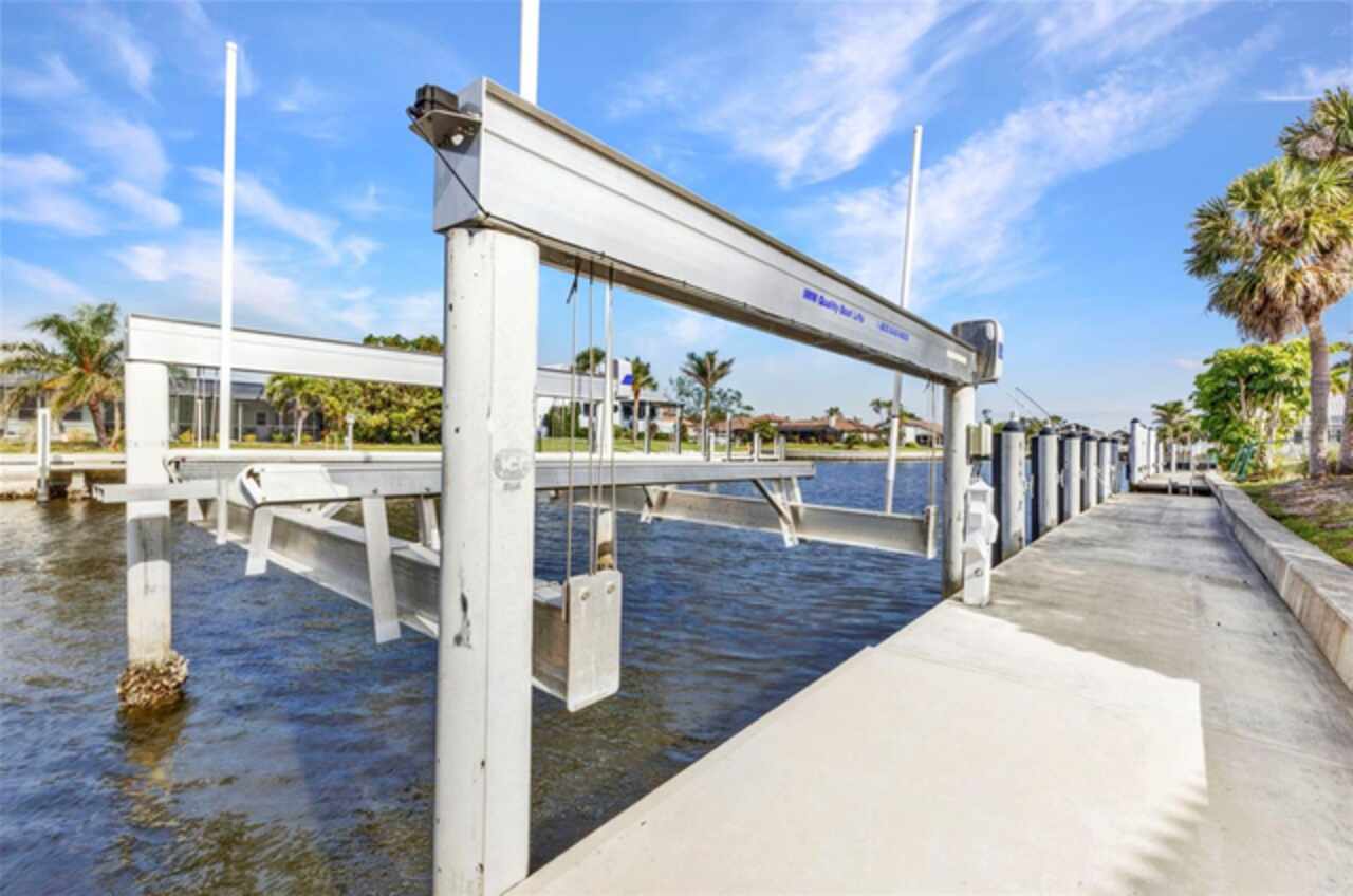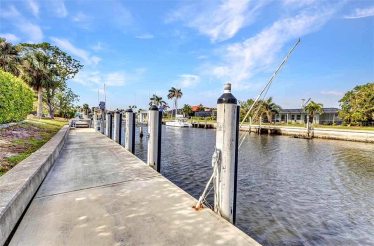 Welcome to 125 Donna Ct., a charming waterfront Pool home in Punta Gorda Isles offering quick, deep-water sailboat access to Charlotte Harbor with No Bridges—perfect for avid boaters! New dock with 27, 000Lb boat lift and seawall (Seawalls are maintained by the City of Punta Gorda!) With 3 bedrooms and 2 bathrooms, this home provides the ideal balance of comfort and convenience. The thoughtfully designed interior features an L-shaped spacious formal living and dining area. The kitchen includes ample countertop space and stainless-steel appliances right off the dining area and lanai, making entertaining a breeze. The split bedroom layout offers privacy, with a large master suite that boasts lanai access and a private updated bath. The outdoor space is perfect for enjoying Florida living, with a spacious newly tiled and screened lanai, an inviting in-ground pool Beautifully re-surfaced and New Paver decking installed) The new dock and seawall make it easy to explore open waters within minutes, straight from your backyard! Newer luxury vinyl flooring, interior and exterior paint, HVAC (2022), Hot water heater (2022) and electrical panel (2022). This home offers not only prime sailboat access but also an unbeatable location. You’ll be just minutes from downtown Punta Gorda, Fishermen’s Village, and waterfront restaurants. Enjoy world-class tarpon fishing or cruise to local dining favorites like Riviera Grill and The Pink Elephant on Boca Grande. Spend your weekends exploring nearby islands, including Cabbage Key and Cayo Costa. Traveling is a breeze with Punta Gorda Airport just 10 minutes away and Southwest Florida International Airport (RSW) only 40 minutes away. Don’t miss the chance to own this exceptional property—schedule your private tour today and experience the best of waterfront living in Punta Gorda Isles!