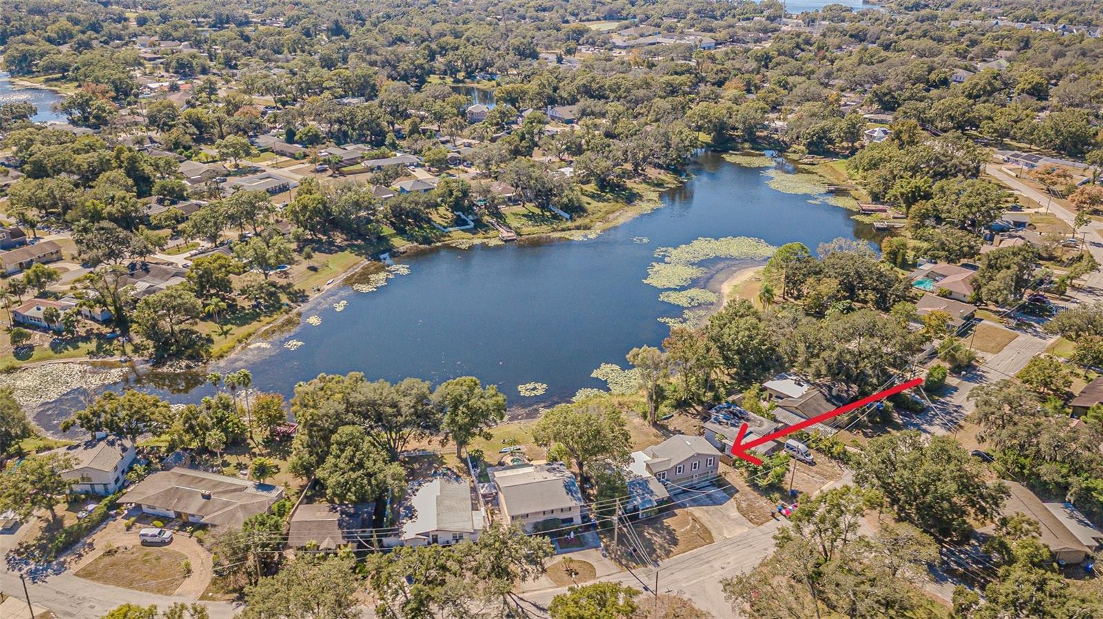 LAKEFRONT LIVING on beautiful Pine Lake! This spacious 4-bedroom, 3-bath home with over 2, 900 sq.ft. offers big water views, incredible outdoor living, and a unique blend of original 1940s charm with a major modern addition completed around 2005. Step inside and enjoy wide-open lake views the moment you enter the large living room—complete with exposed wood beams, a wood-burning fireplace, and three sets of sliders that fill the home with natural light and lead out to a screened porch and wood deck overlooking the lake. If you love time on the water, Pine Lake is perfect for fishing, kayaking, canoeing, and relaxing sunsets right from your own backyard. The kitchen is equipped with both gas and electric ranges, a large prep area, a dishwasher, and stainless-steel refrigerator—ideal for cooking and hosting. The dining room features beautiful wood floors and flows easily to the kitchen, breakfast nook, and living room for a warm and inviting layout. This home offers excellent flexibility with three A/C systems (including two mini-splits) to help manage comfort throughout the year. The upstairs primary suite is a true retreat, featuring cathedral ceilings, big windows that bring the outdoors in, spa tub, and a private screened balcony—a perfect spot for morning coffee with a peaceful lake view. Storage is never an issue here! You’ll find a large three-car garage, plus extra yard space for your trailers, small boat, or toys. Enjoy a fantastic central location near Babe Zaharias Golf Course, local lakes, parks, and easy access to Dale Mabry Highway and I-275 for quick trips to major employment hubs, shopping, dining, and everyday conveniences. This is your chance to make lakefront living a part of your daily life. Bring your personal finishing touches and make this Tampa lakefront paradise your own! Drone video link.