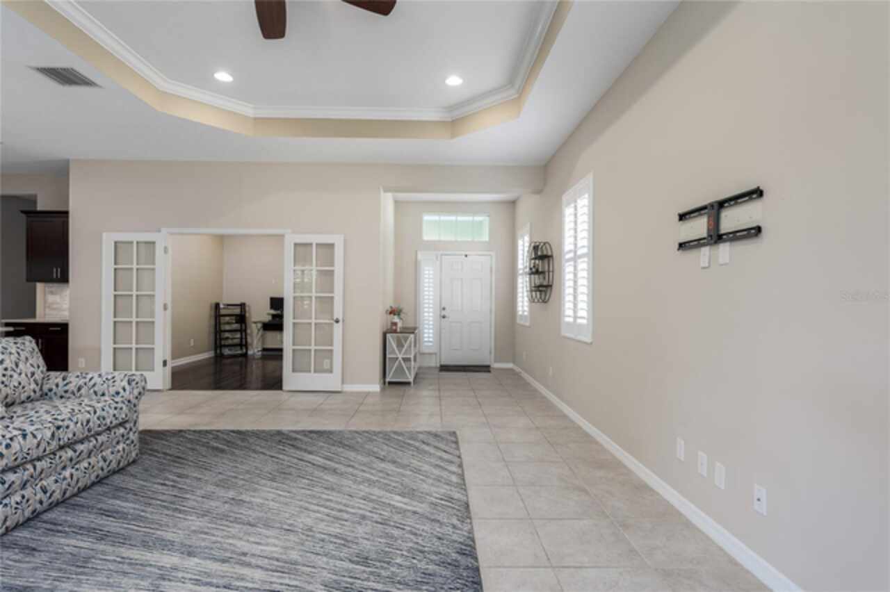 Resort-style living meets everyday comfort in this beautifully maintained 3-bedroom, 2-bath home by Neal Communities, located in the gated community of Eagle Trace. Set on a preserve lot for added privacy, this home features no CDD fees, no flood insurance required, and maintenance-free lawn care—front and back, and A BRAND-NEW ROOF!! Inside, you’ll find a much-desired 3-car garage, an expansive open-concept great room with tray ceilings, and a well-appointed kitchen with a breakfast bar, walk-in pantry, and dining area. Triple sliders lead to a 27x9 screened lanai, creating seamless indoor-outdoor living for entertaining or relaxing. The split-bedroom layout includes walk-in closets in all bedrooms plus a flexible 13x13 office that could easily serve as a music room, playroom, or guest space. Eagle Trace offers a gated, amenity-rich lifestyle with a resort-style pool and spa, tennis and pickleball courts, dog parks, playground, clubhouse, and walking trails. Ideally located just minutes to I-75, shopping, dining, and newer schools—this home delivers privacy, flexibility, and low-maintenance living in one of Bradenton’s most sought-after communities.