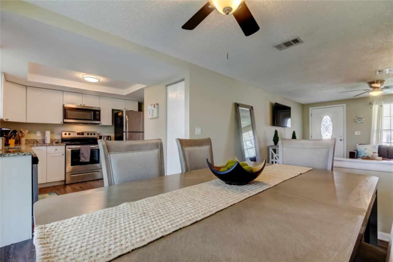 Ceiling Fans(s), Open Floorplan, Primary Bedroom Main Floor, Solid Surface Counters, Stone Counters, Thermostat